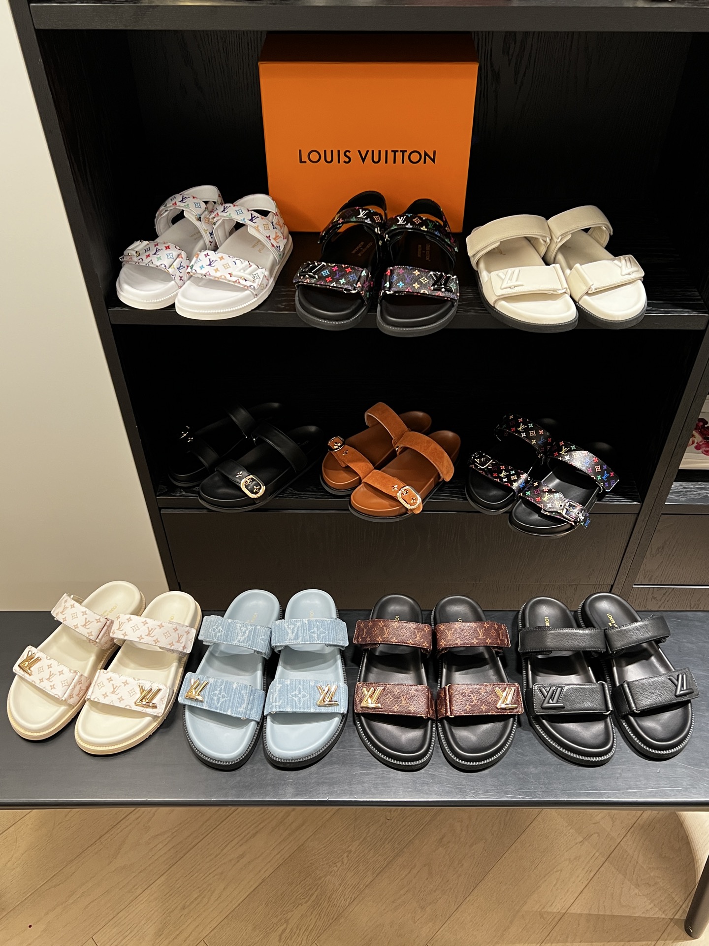 Louis Vuitton Men’s Blue Denim Sandals Cherry Monogram Pattern Adjustable Straps Rubber Sole