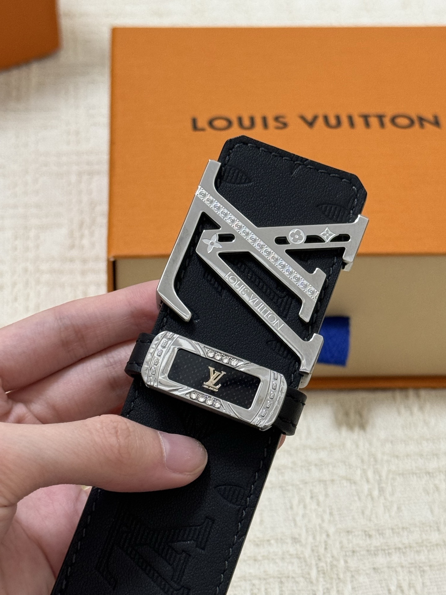 • Iconic LV Buckle: A striking silver-tone LV Initial buckle, enhanced with intricate engravings and signature branding for a unique touch.