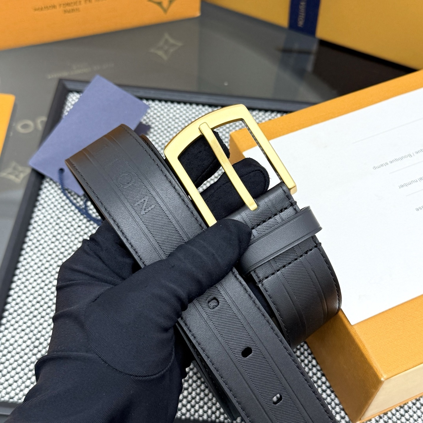 Gucci NWT Auth Women 95 cm 38 in Black Suede Leather Square G Gold Tone Belt Bag My Fashion Butler My Fashion Butler (11647)
