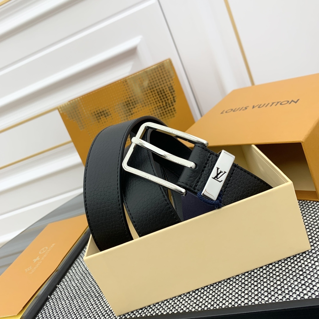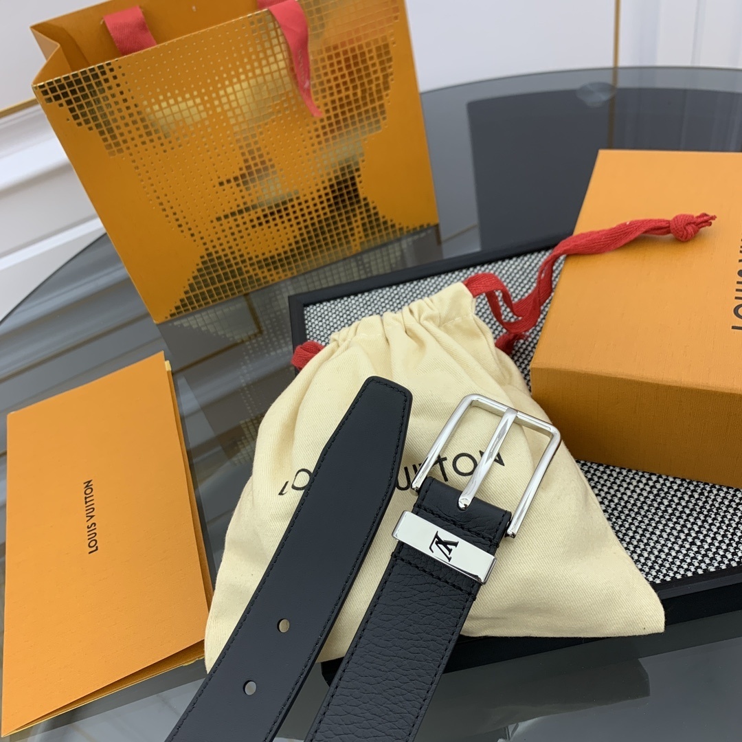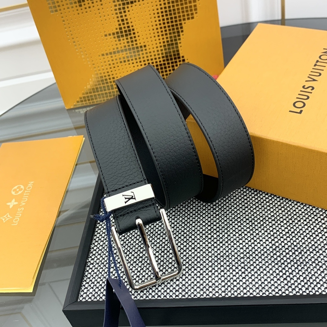 Elevate your wardrobe with this exquisite Louis Vuitton Men's Belt. Crafted from premium black leather with a sophisticated pebble-grain texture, this accessory exudes luxury and durability. It is the perfect blend of timeless design and contemporary style for the modern gentleman.