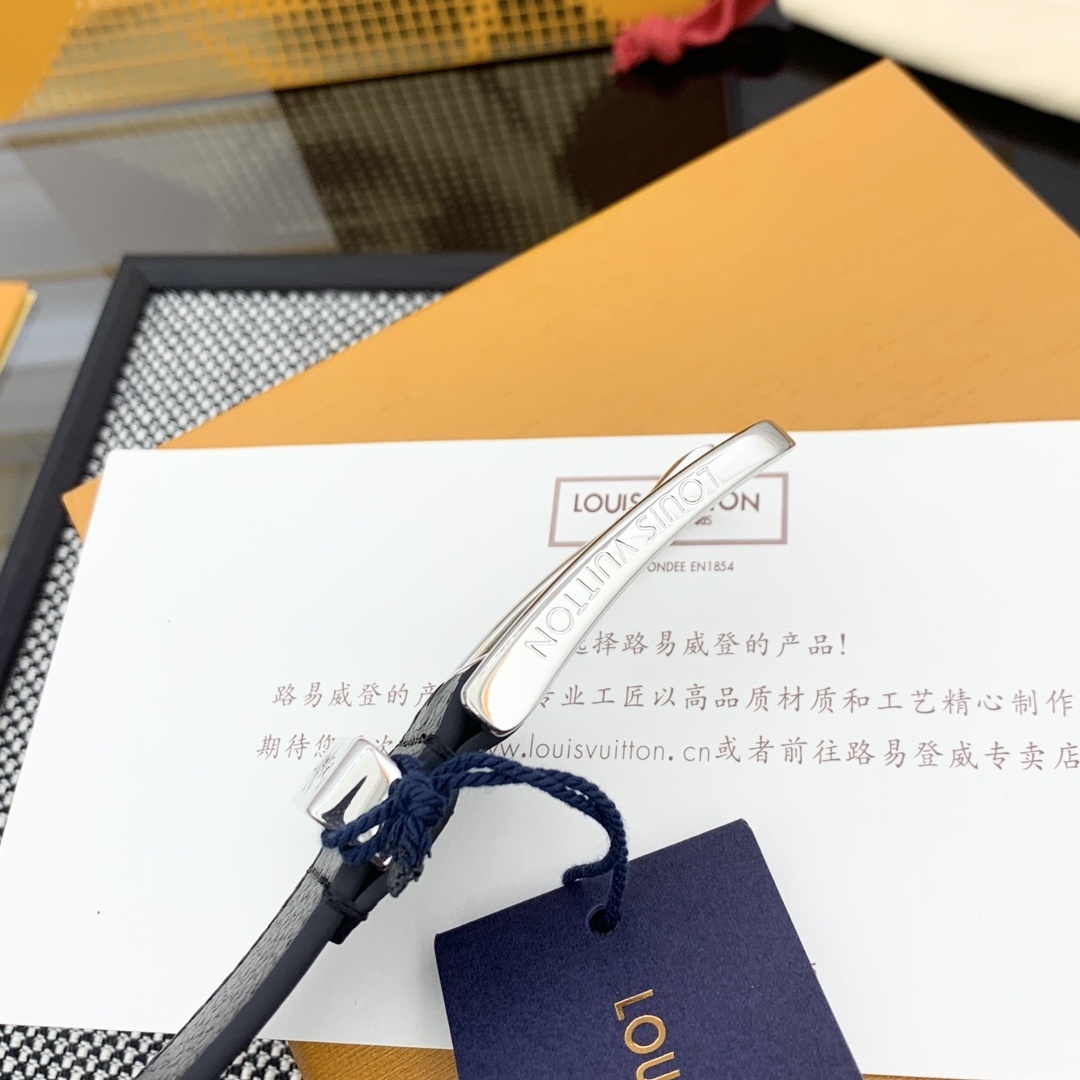• Sleek Hardware: Features a polished silver-tone buckle and a distinctive metal loop adorned with the iconic LV signature logo.