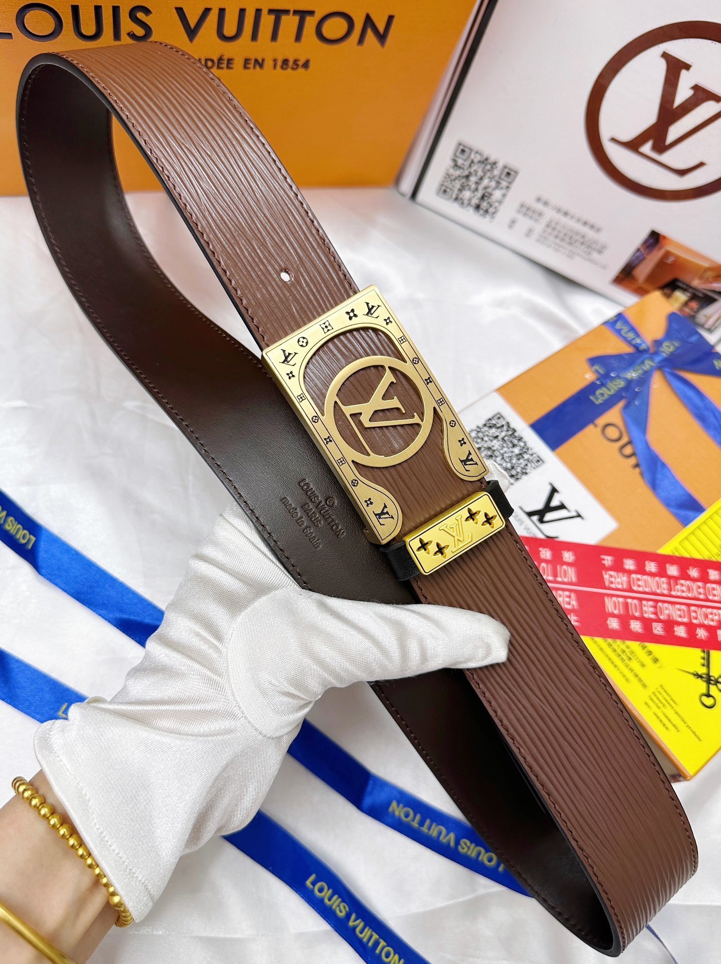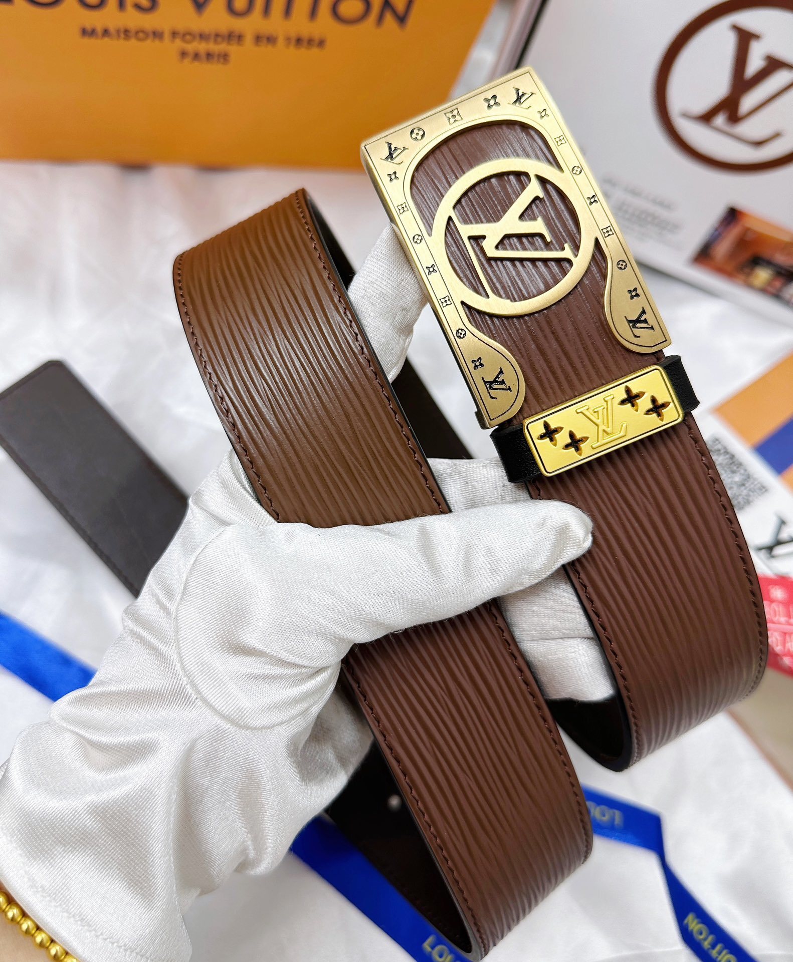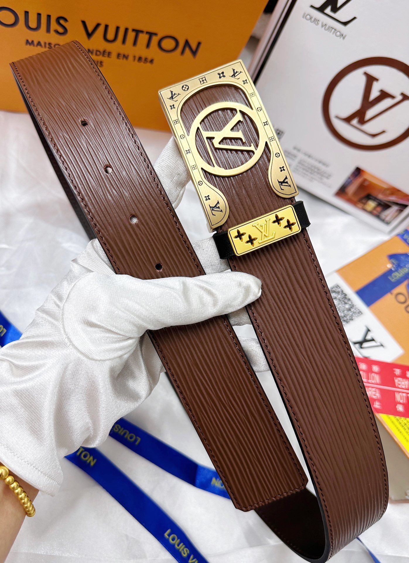 MIU MIU Brown Leather Belt Gold Buckle