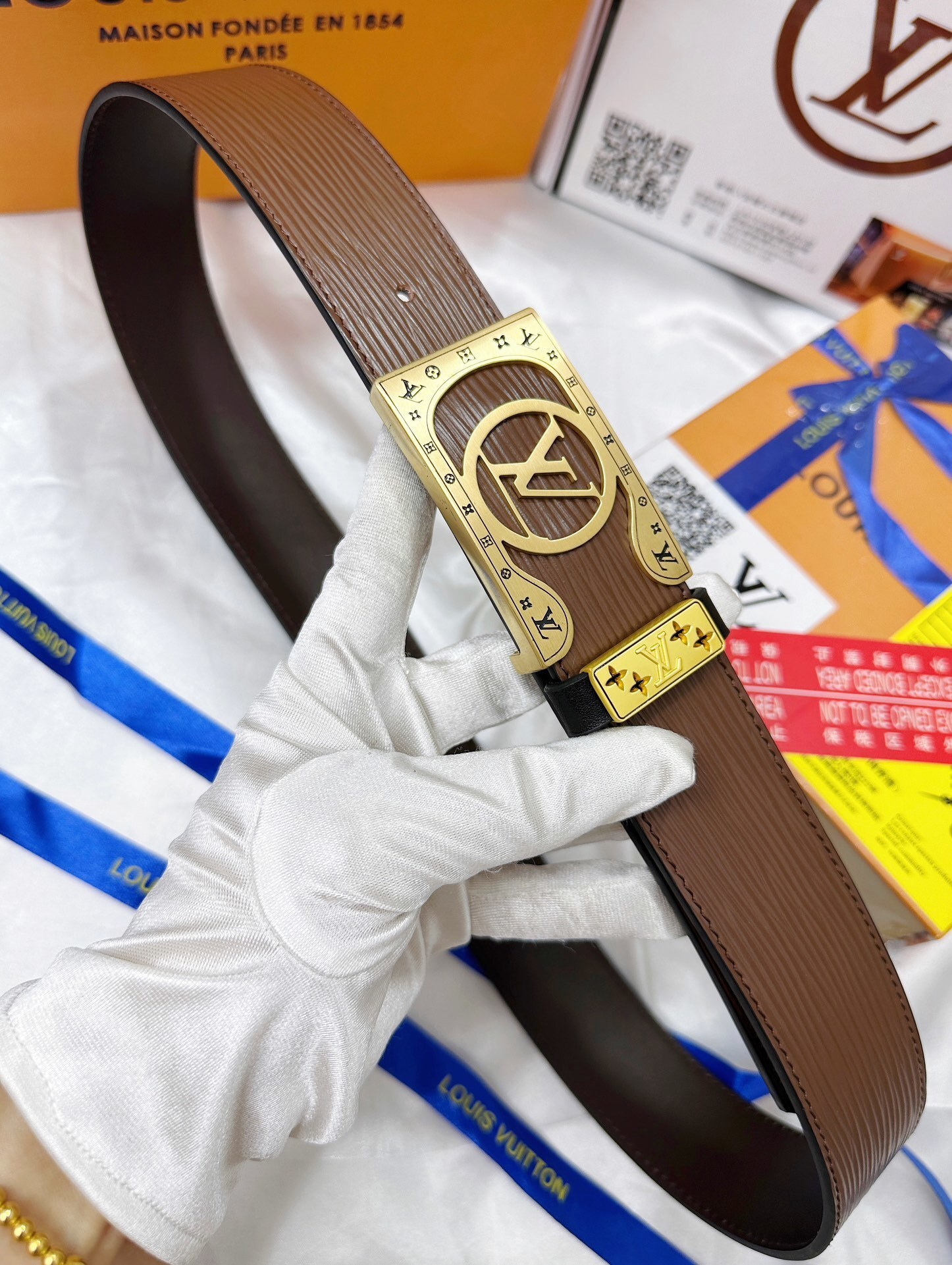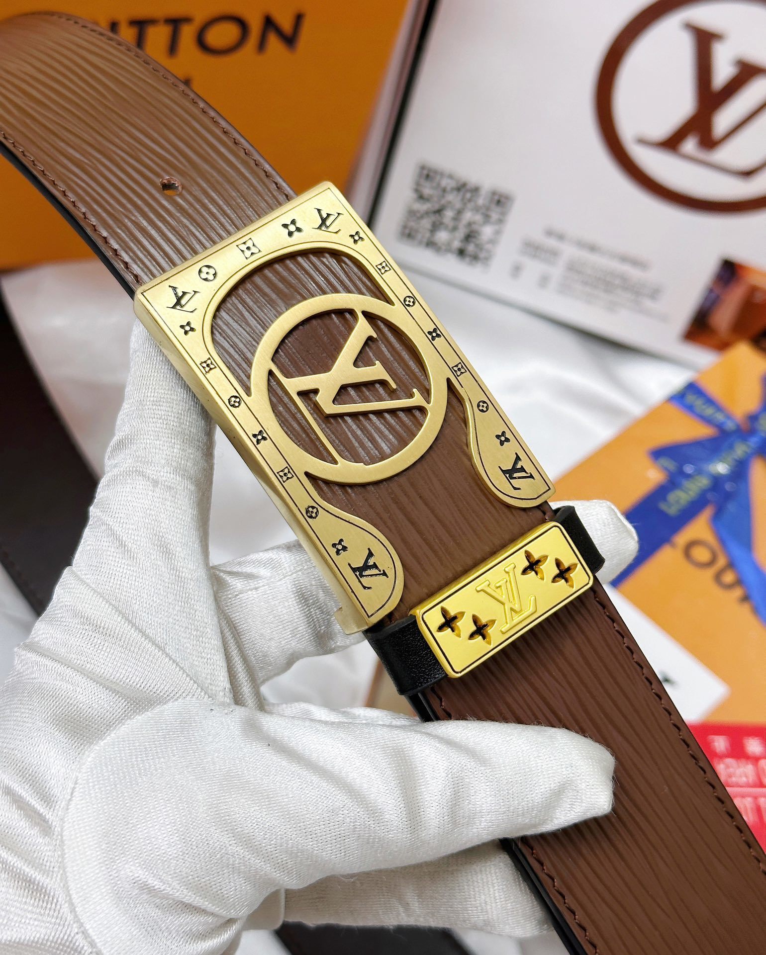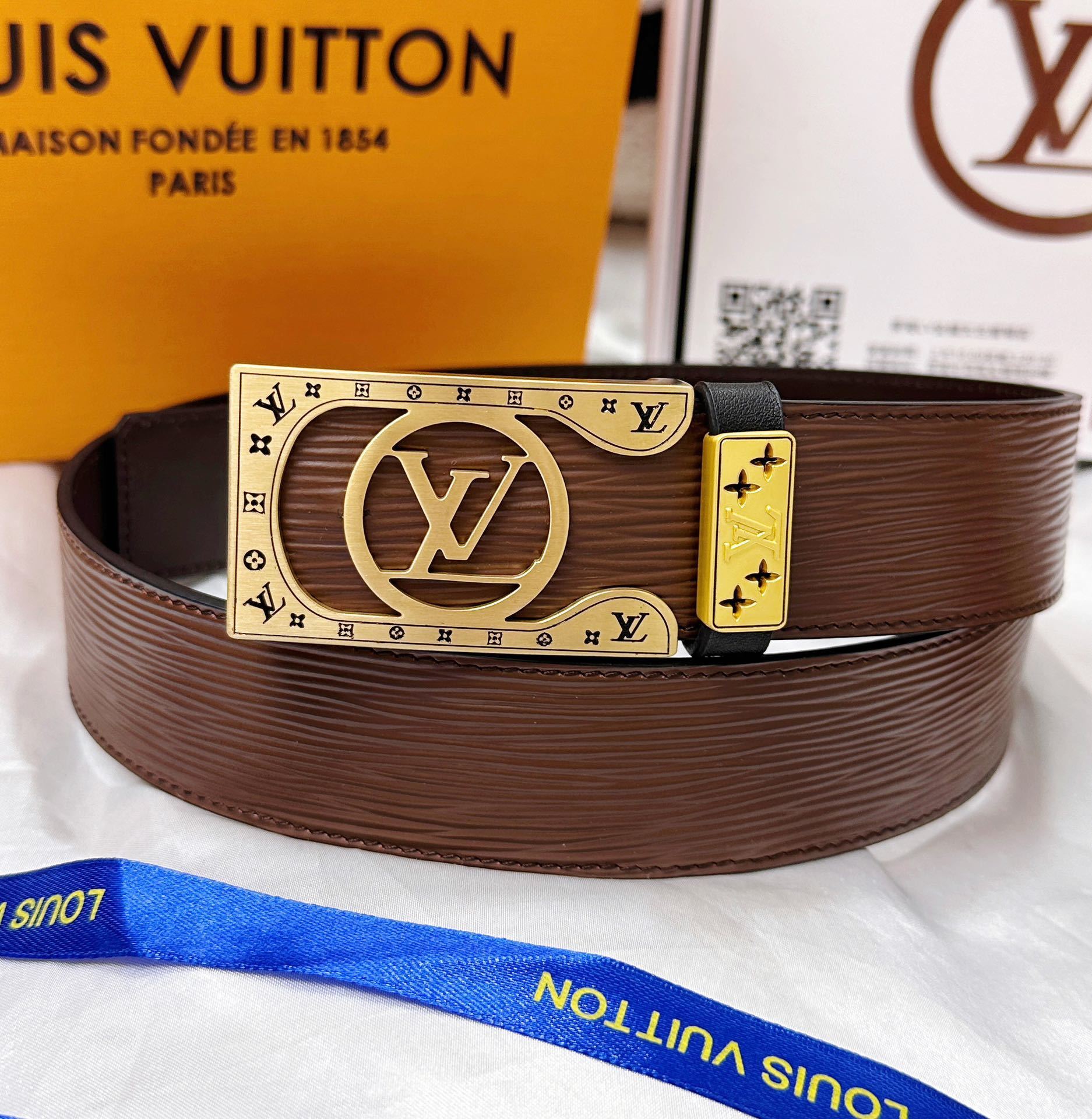 MIU MIU Brown Leather Belt Gold Buckle
