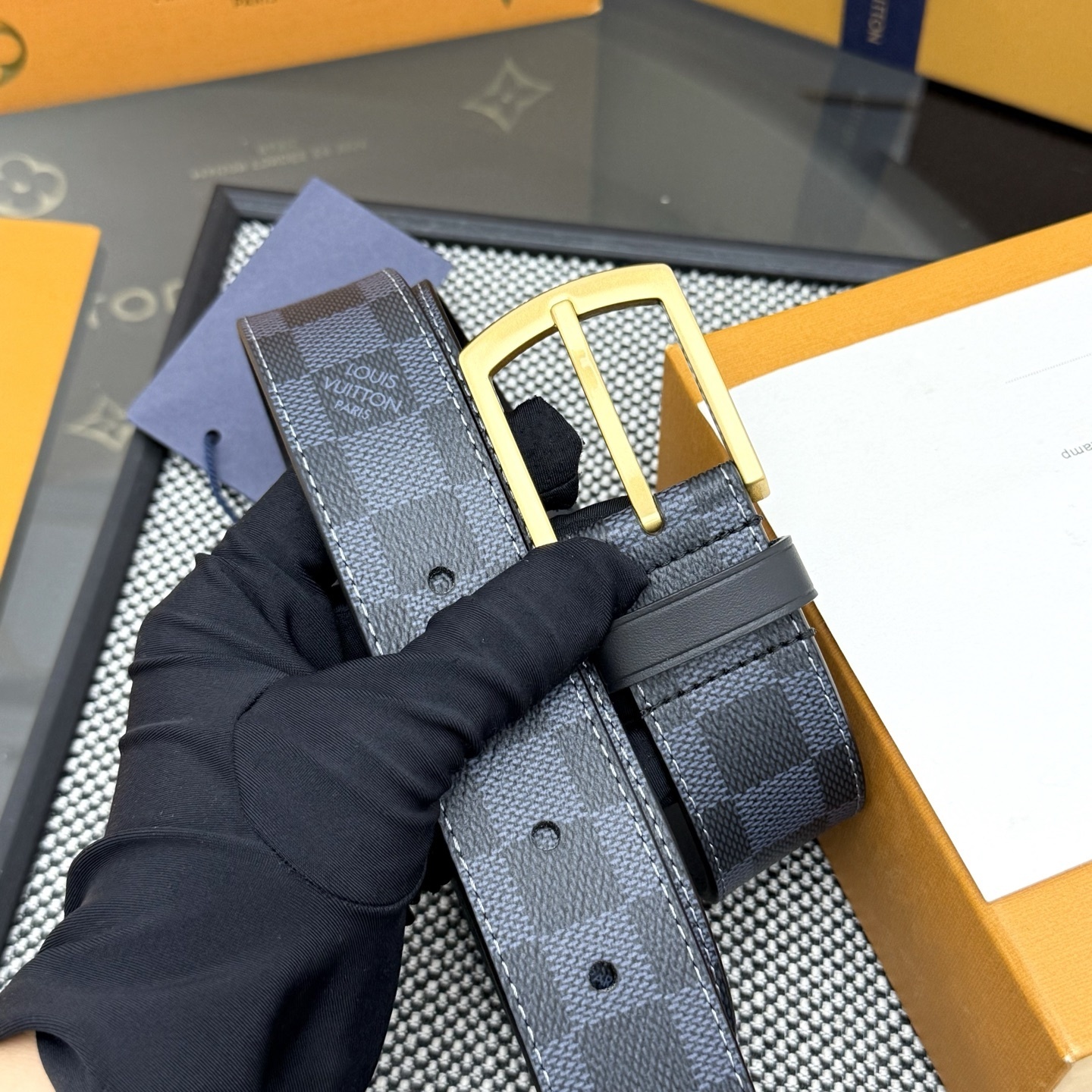 Gucci NWT Auth Women 95 cm 38 in Black Suede Leather Square G Gold Tone Belt Bag My Fashion Butler My Fashion Butler (11647)