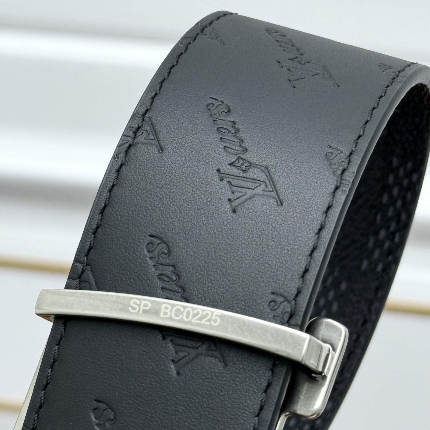 • Signature LV Buckle: Features a striking silver-tone metal buckle with the stylized LV initials and a unique Monogram flower detail, adding a contemporary edge to a classic design.