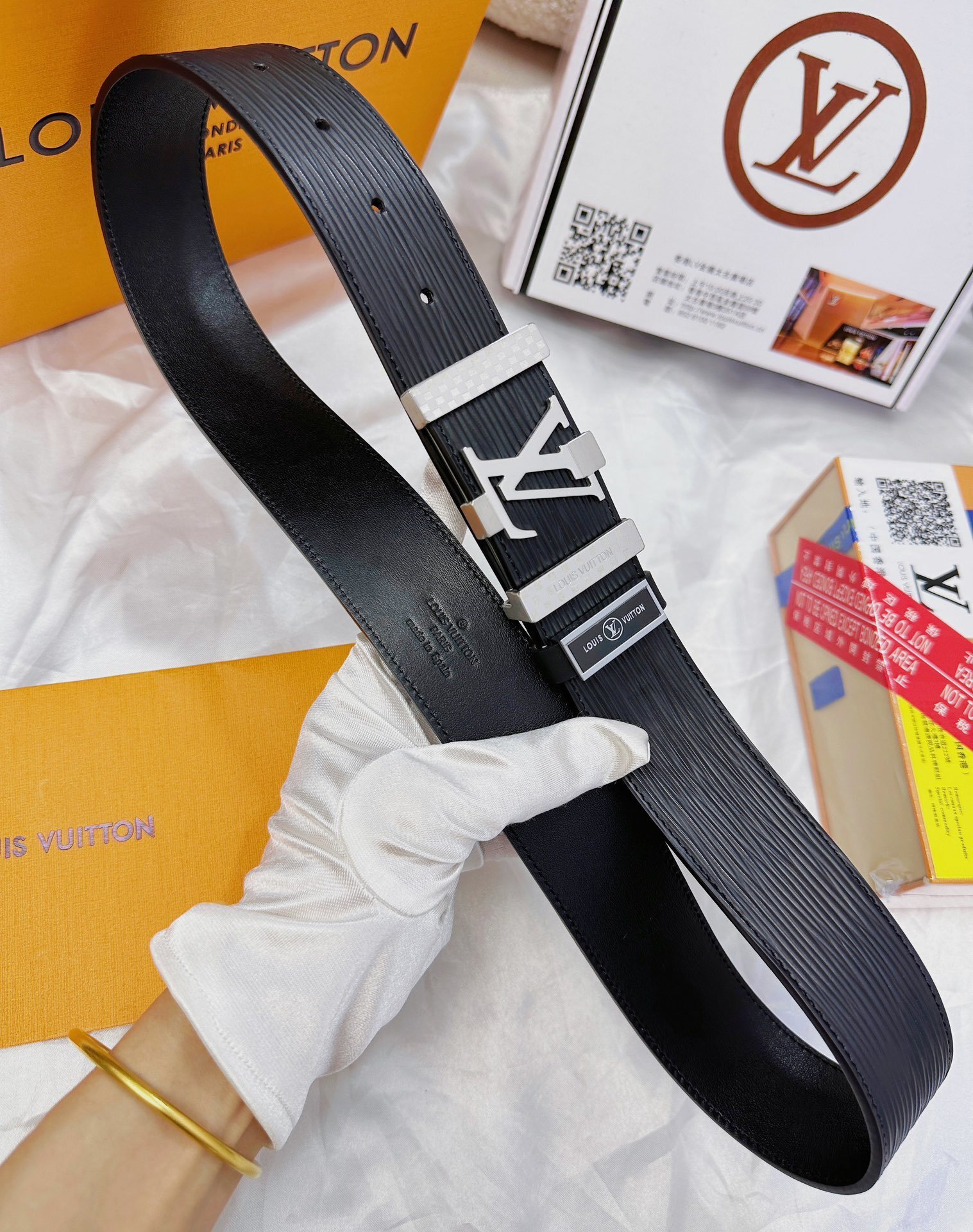 • Iconic LV Buckle: A stunning silver or gold-tone LV buckle accented with a sophisticated checkered pattern for a modern touch.