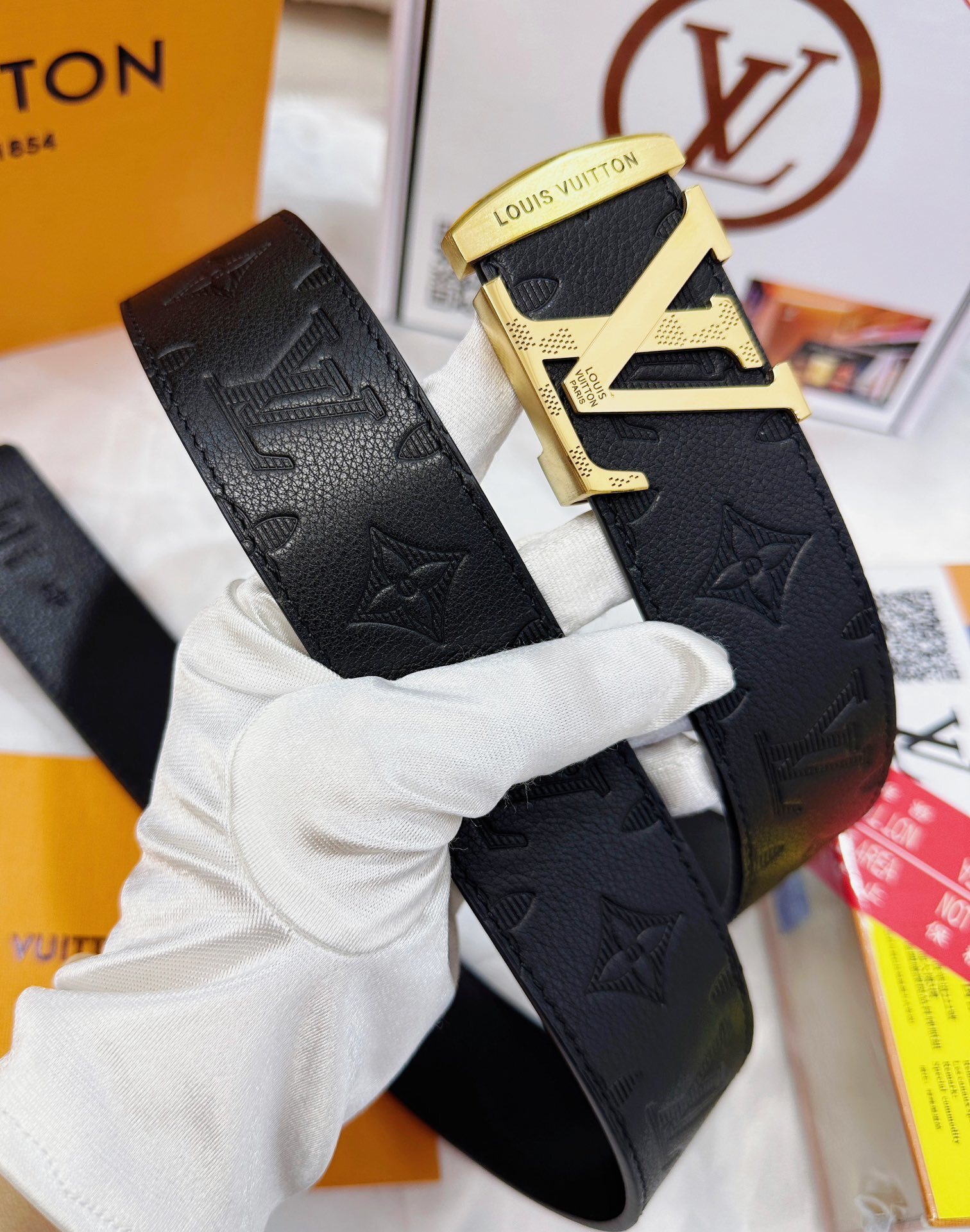 Gucci Black Smooth Calfskin Leather Gold Double G Buckle Belt 90/36
