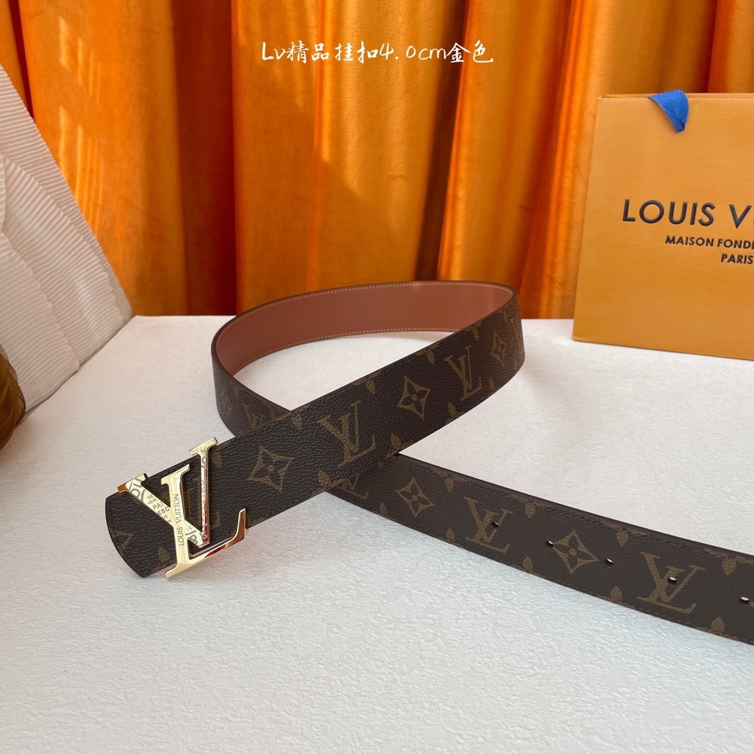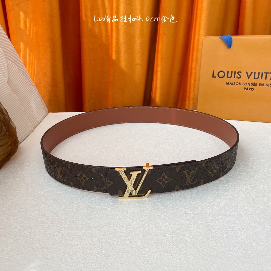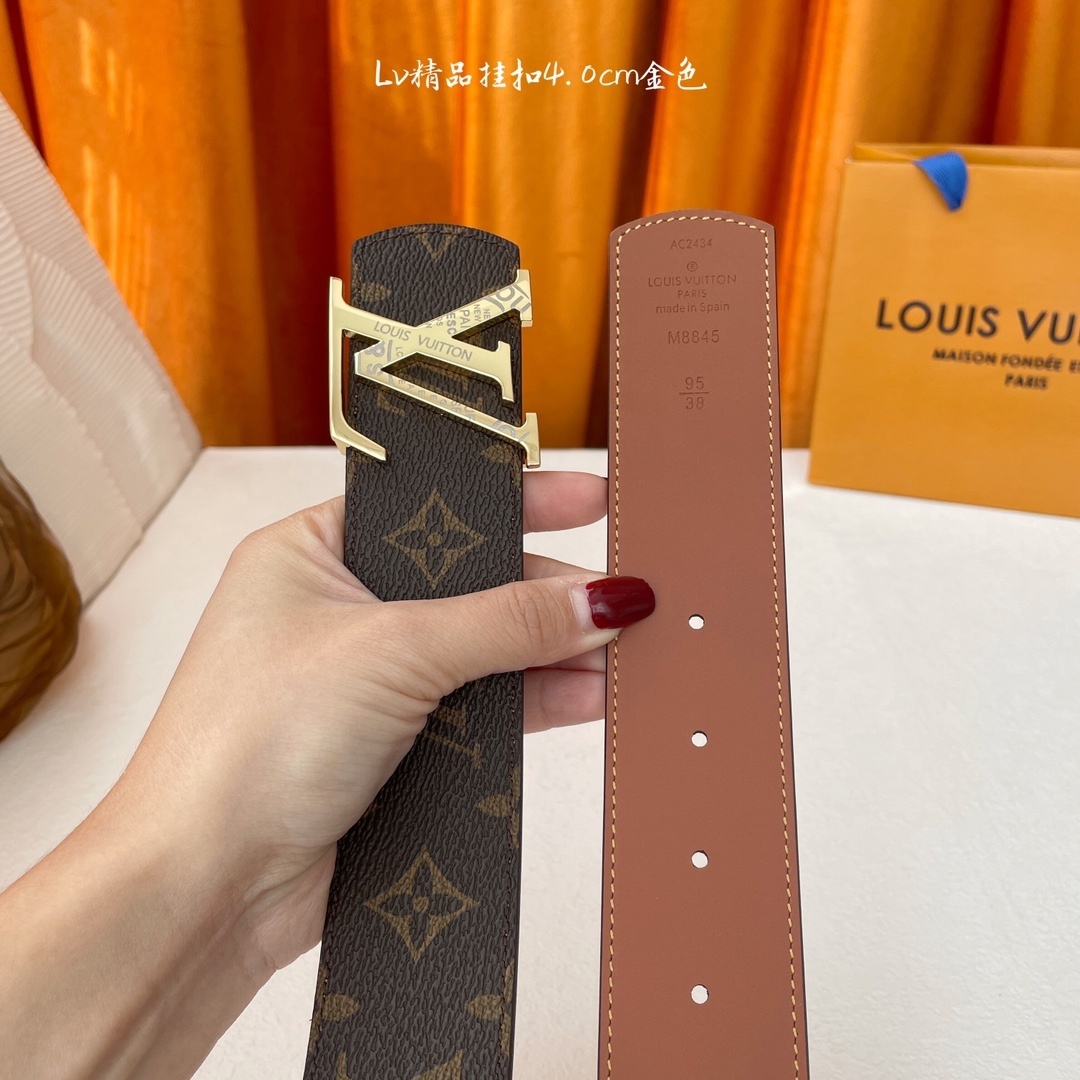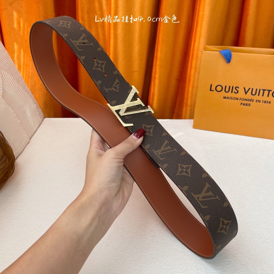 Brown leather belt with gold metal buckle engraved with Miu Miu