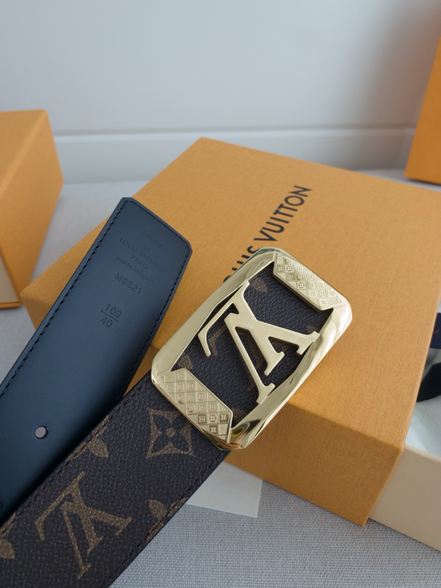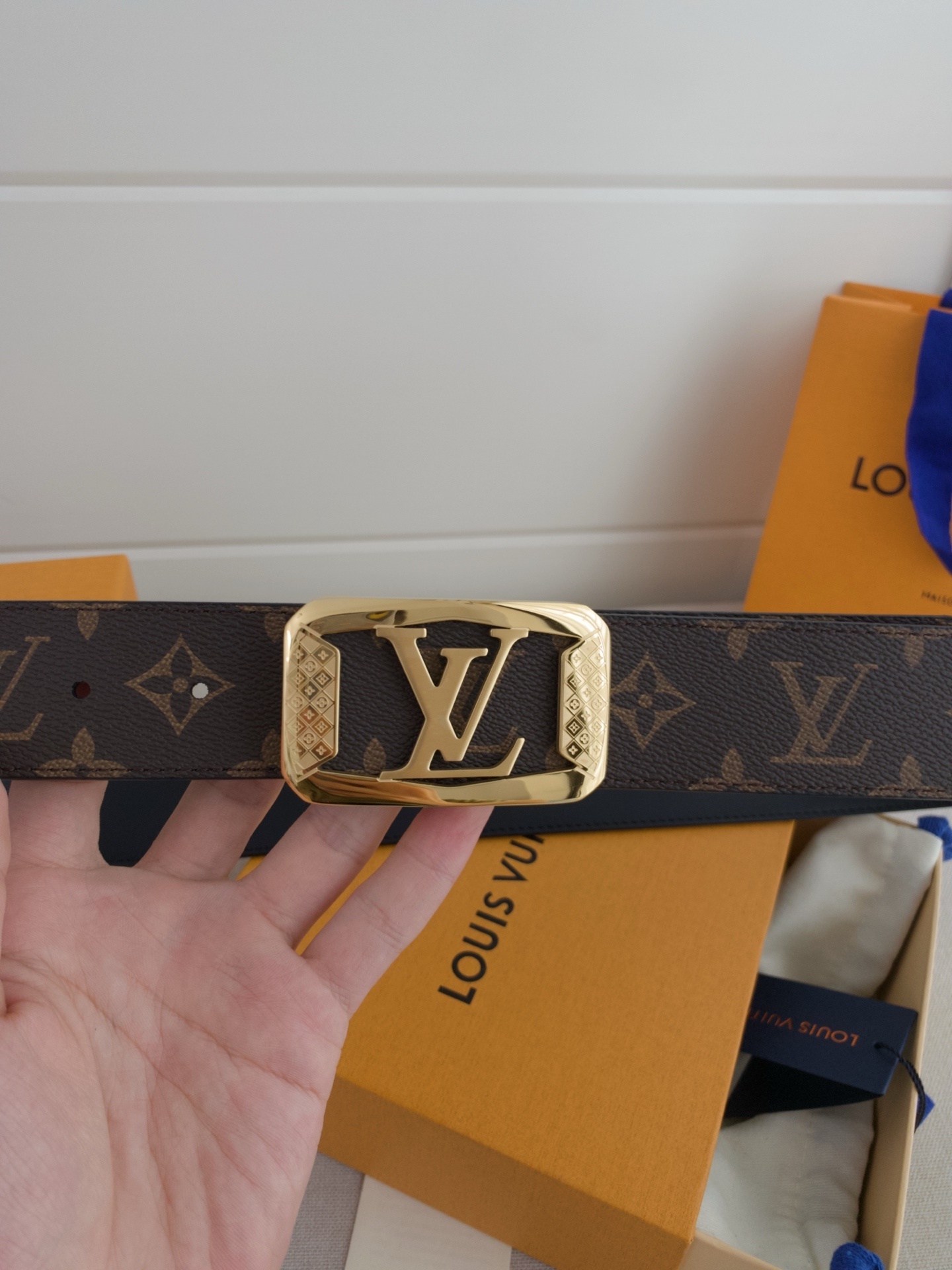 • Exquisite Hardware: Features a striking gold-tone buckle with the legendary LV initials, enhanced by intricate engraved side panels for added sophistication.