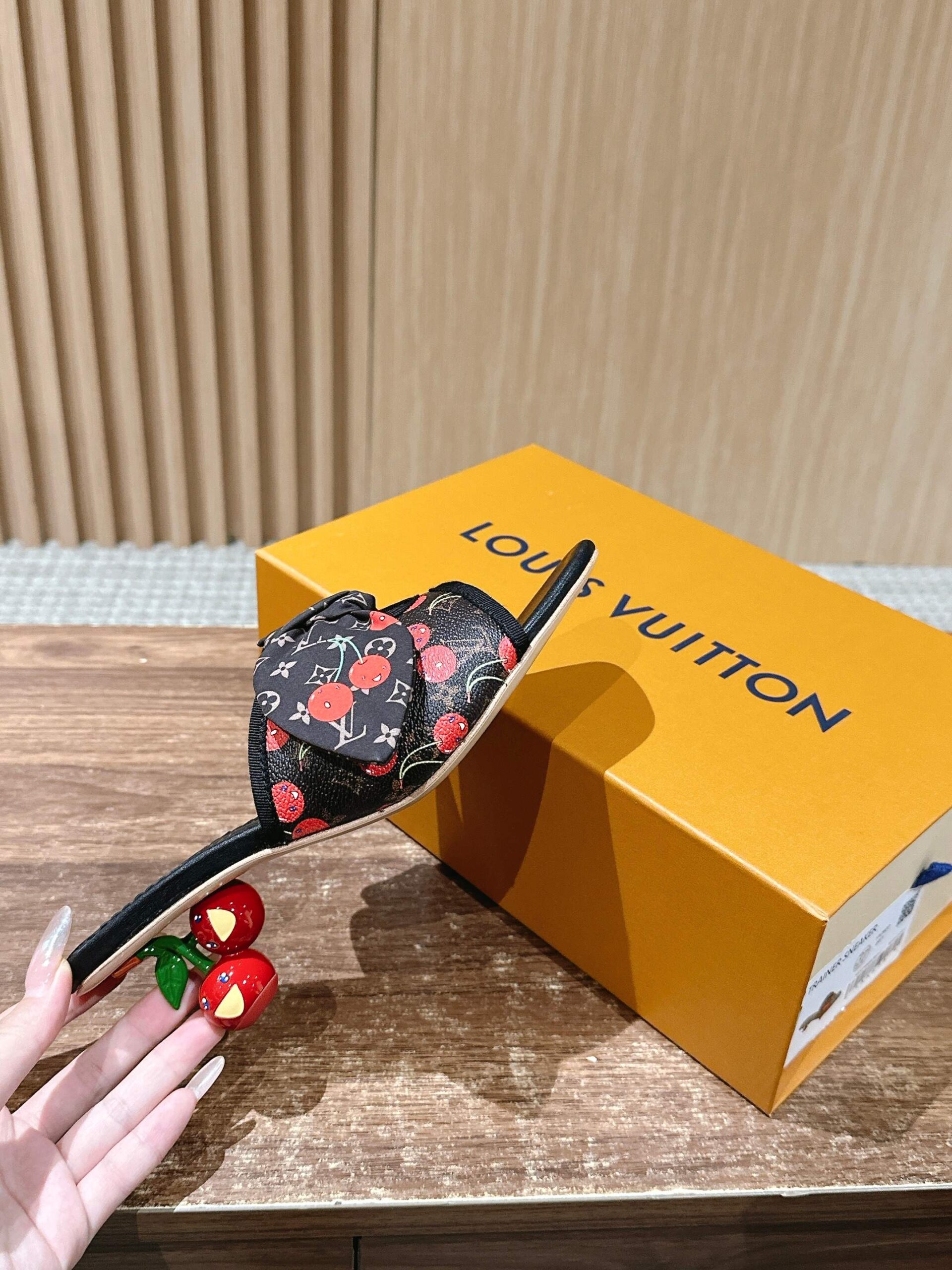 Louis Vuitton Cherry Print Slingback Heels Women’s Designer Pointed Toe Shoes