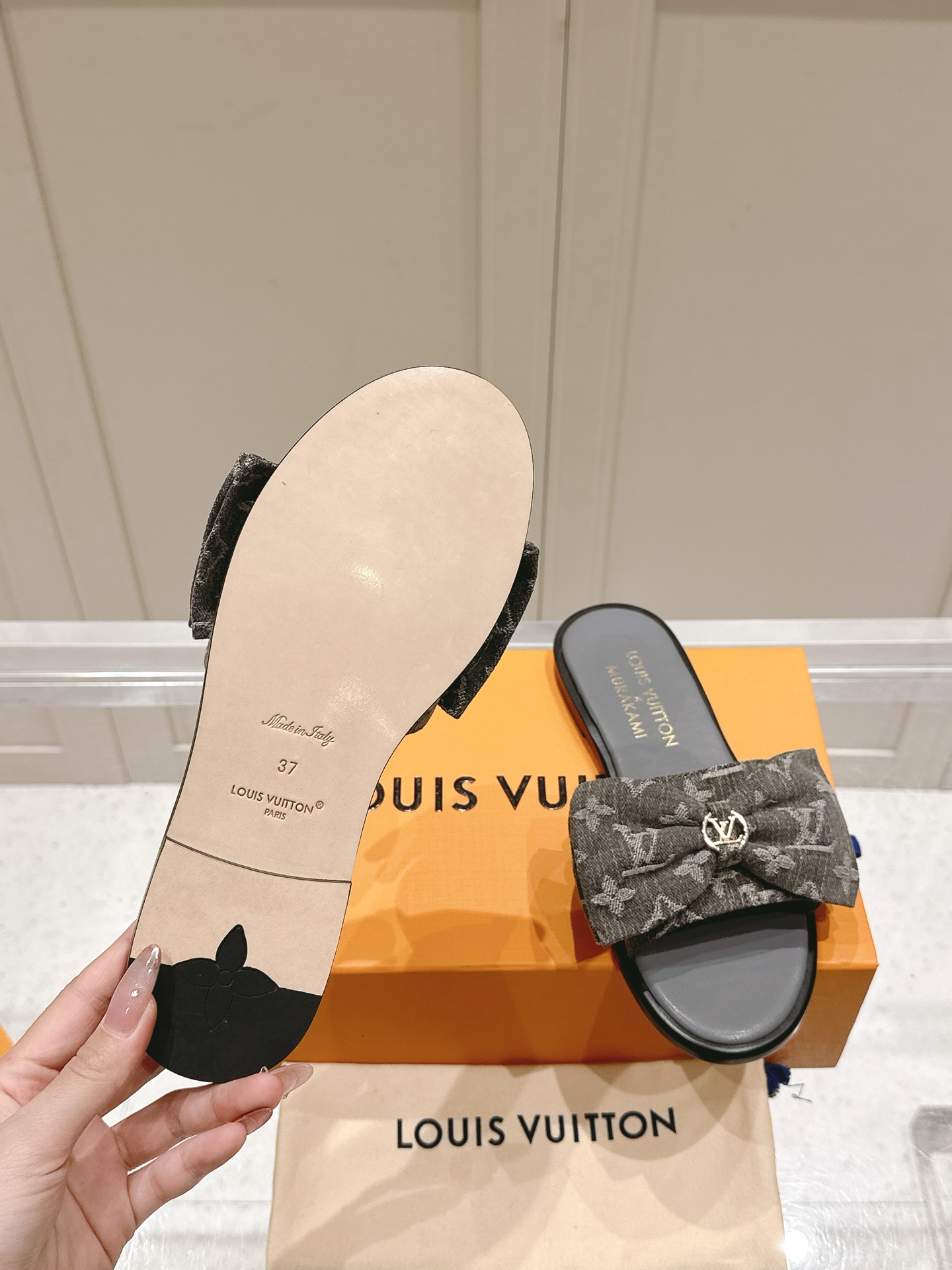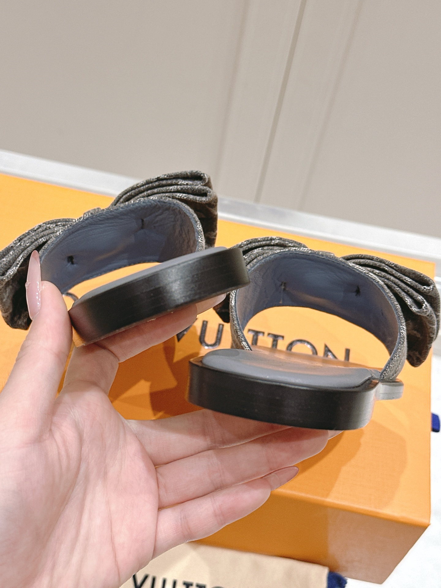 Louis Vuitton Black Leather Knot Flat Sandals