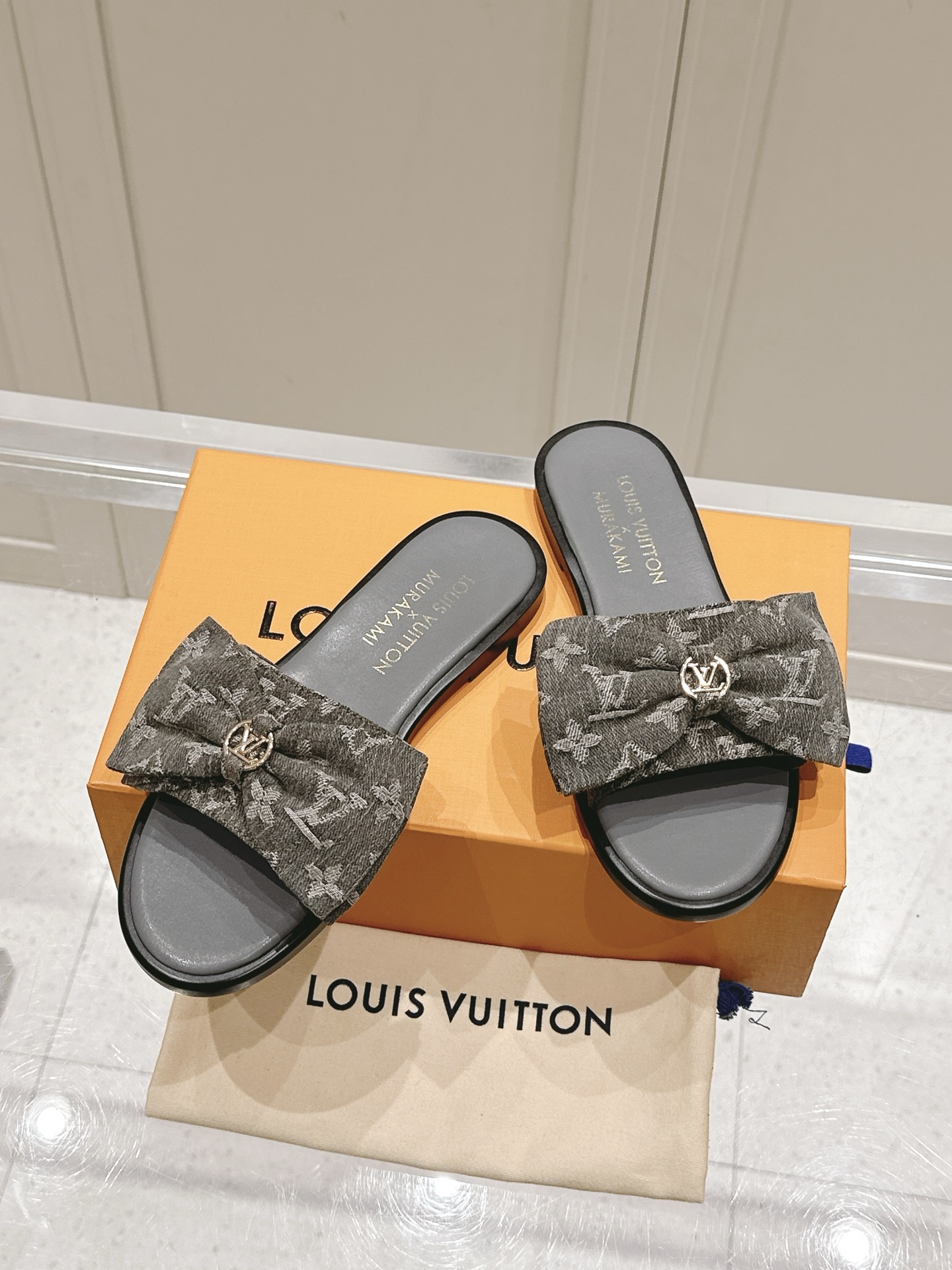 Louis Vuitton Black Monogram Canvas Flat Slide Sandals