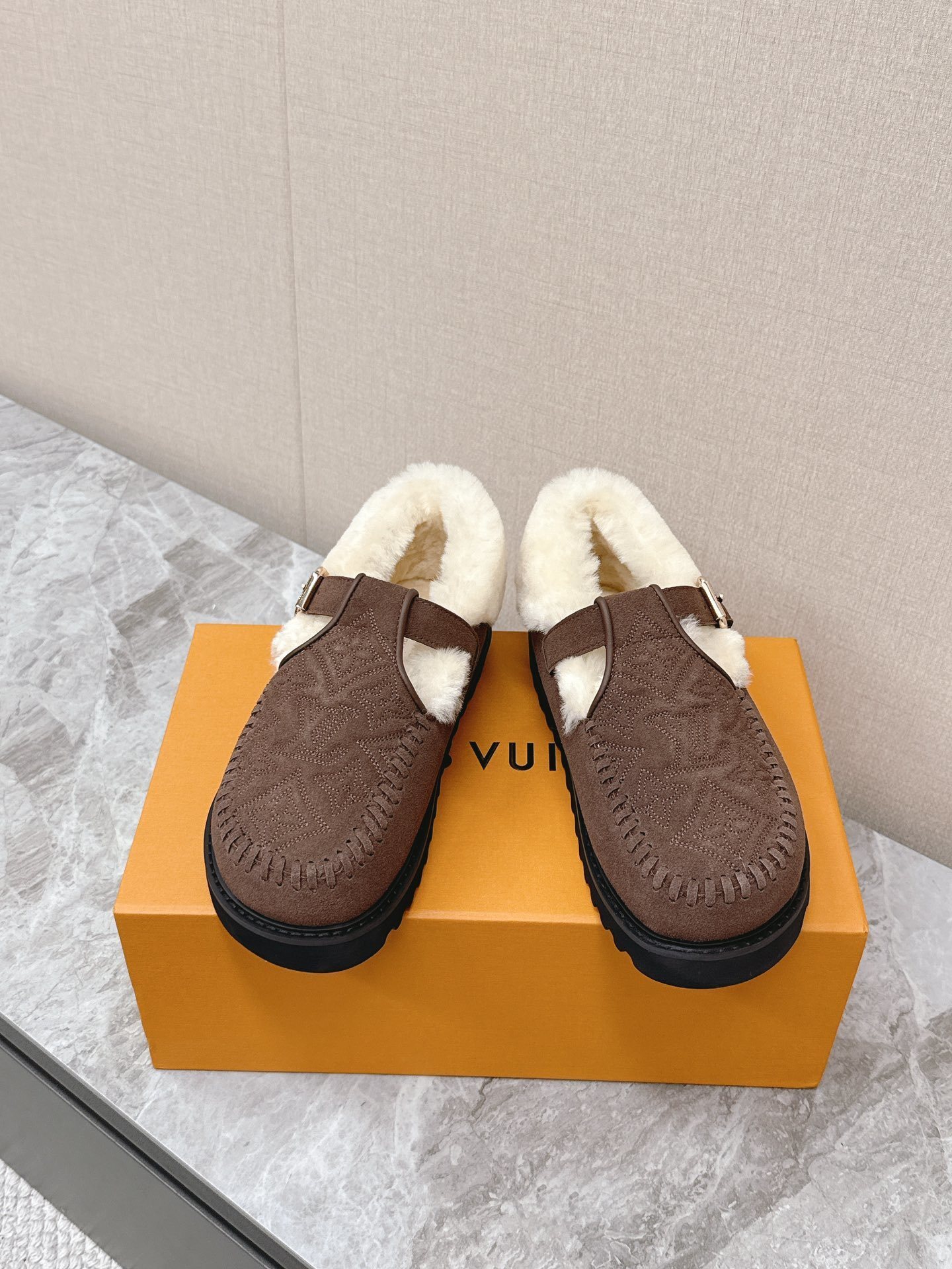 Louis Vuitton Monogram Brown Suede Shearling-Lined Loafers