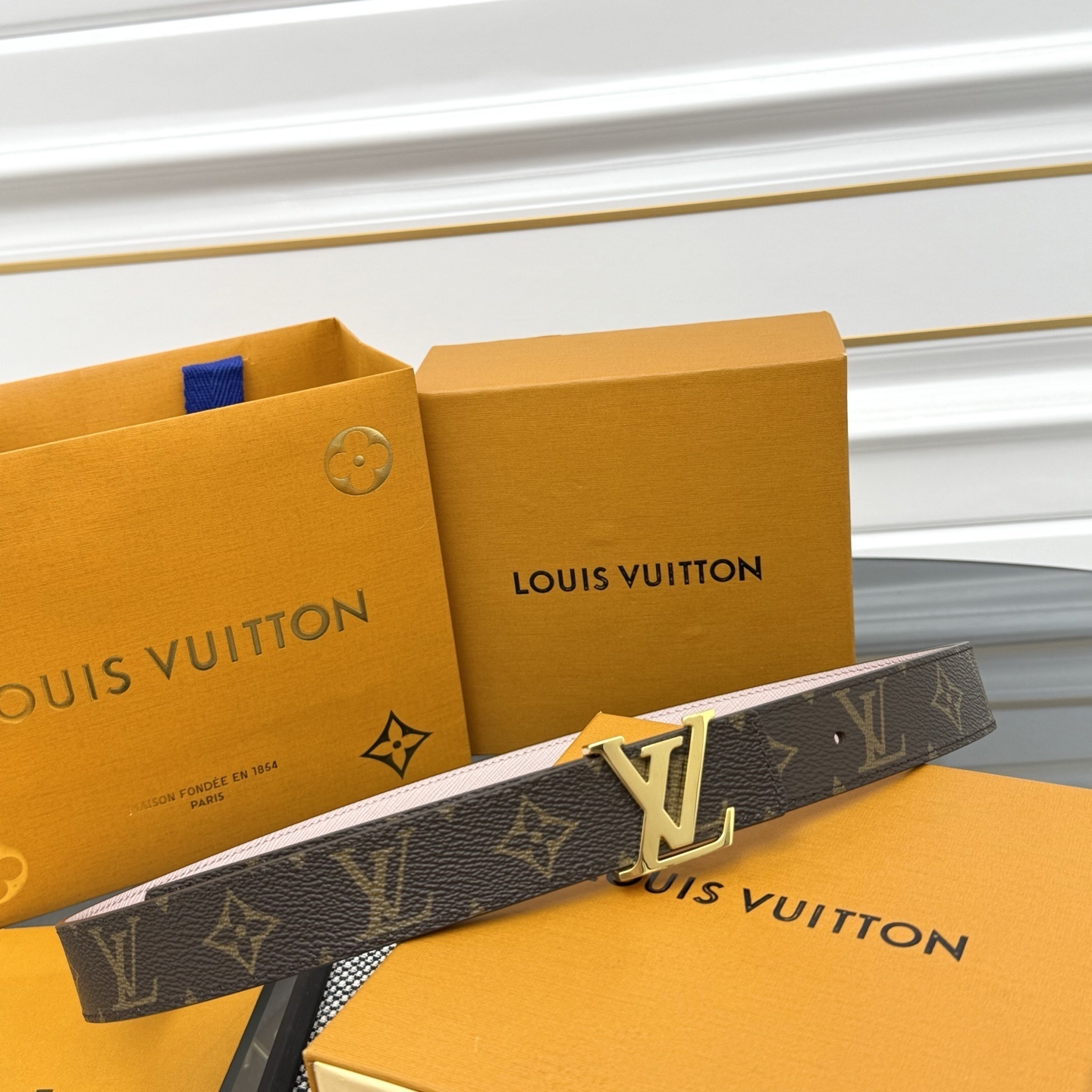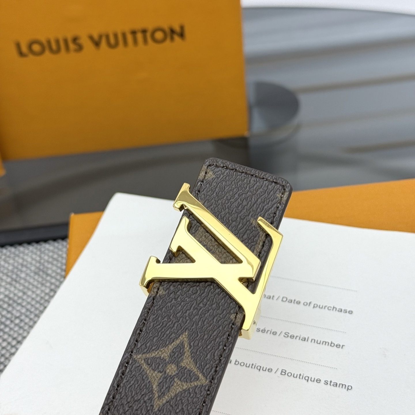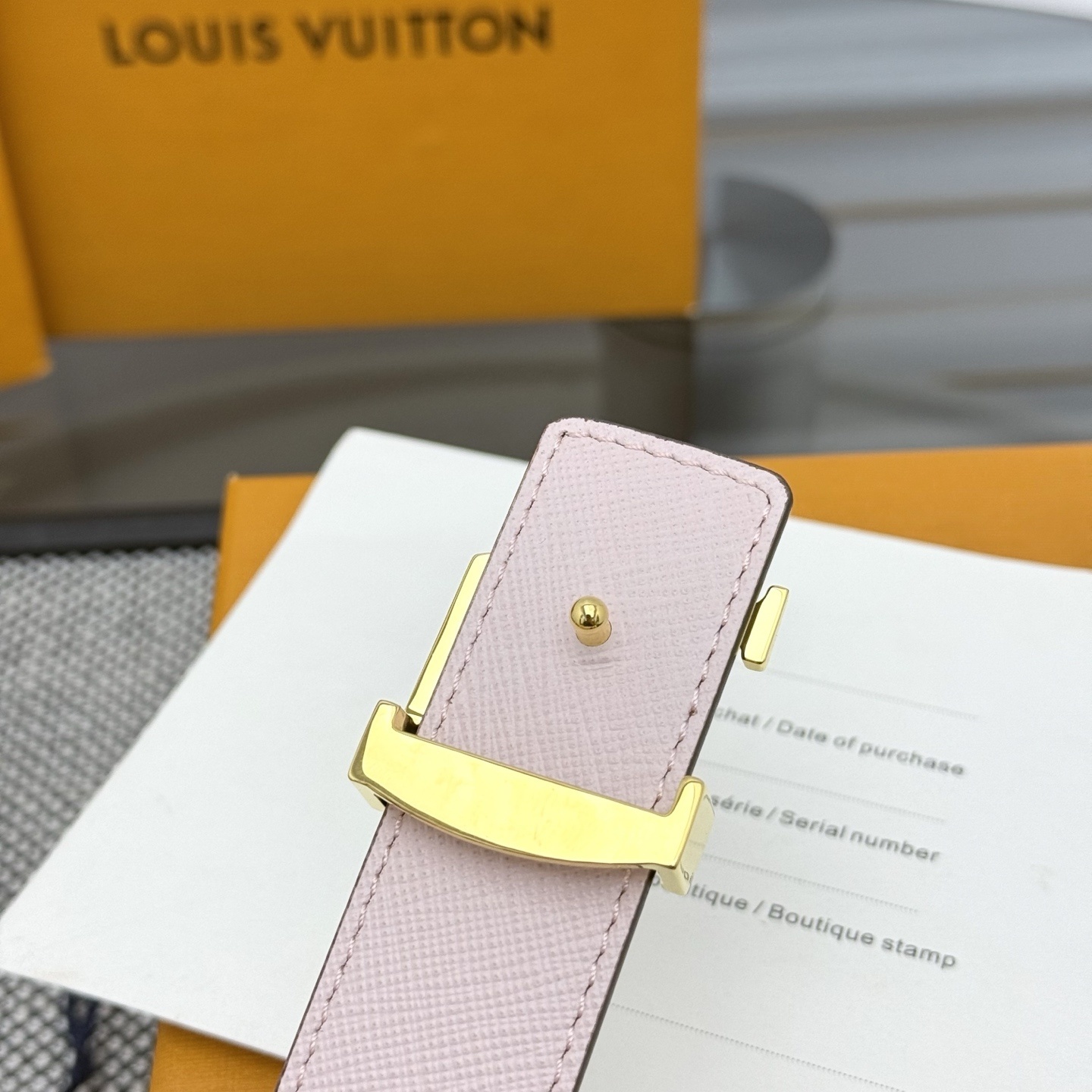 • Buckle: Signature LV Initial buckle in a stunning polished gold-finish.