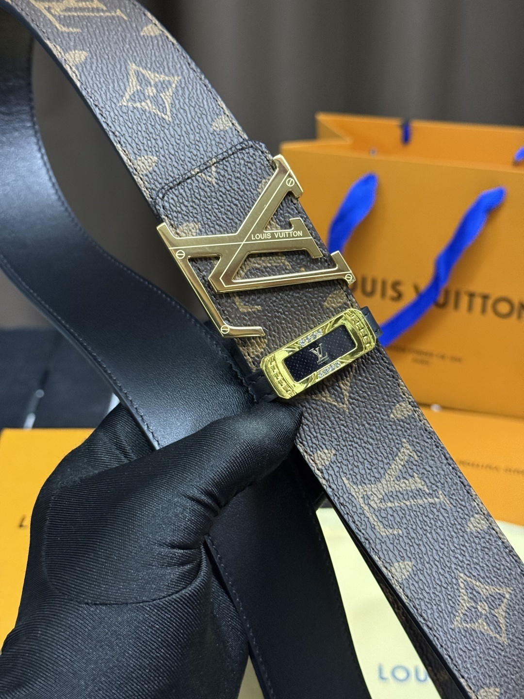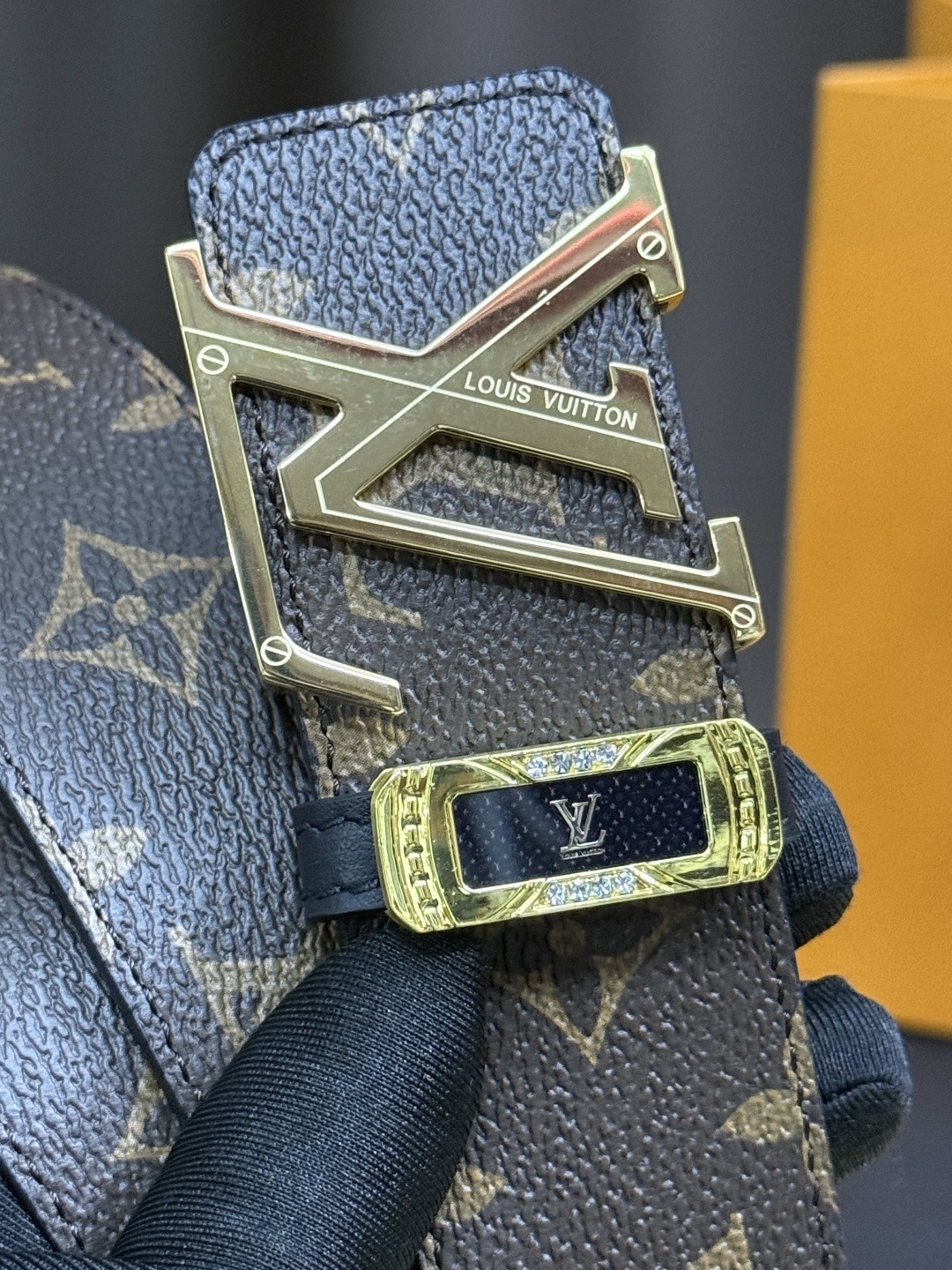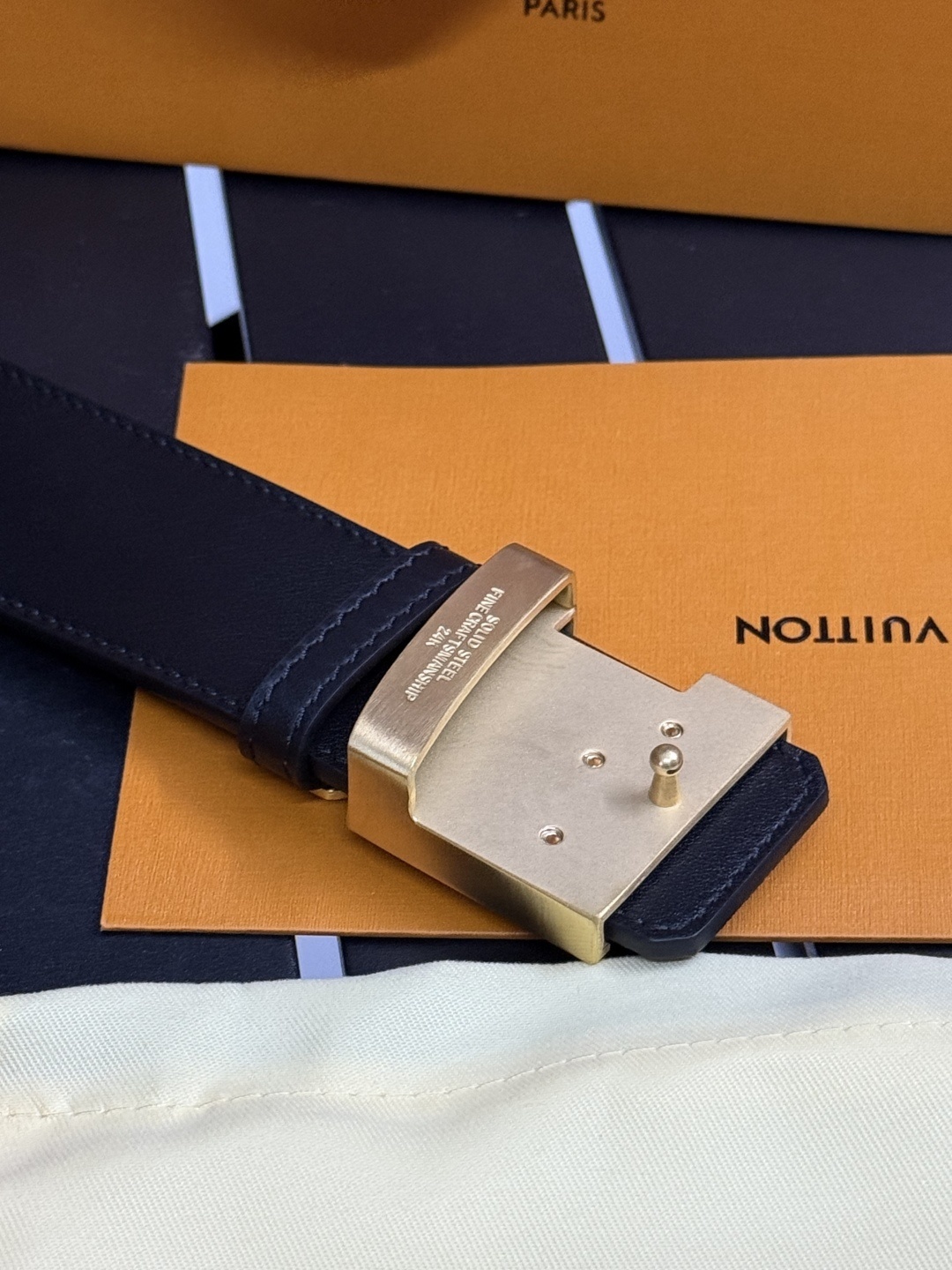 • Exquisite Gold Buckle: The belt is centered by a stunning gold-finish LV Initial buckle, accented with unique detailing on the keeper for an added touch of exclusivity.