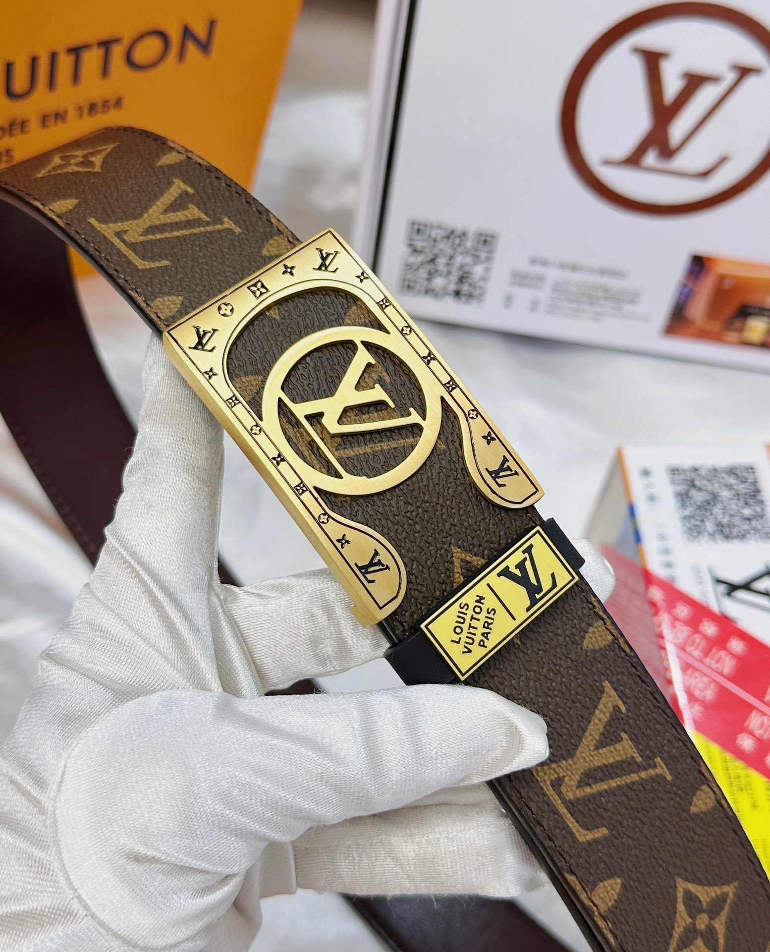 • Exquisite Buckle: Features a striking gold-tone rectangular buckle with a central cutout LV logo and intricate engravings for a sophisticated look.