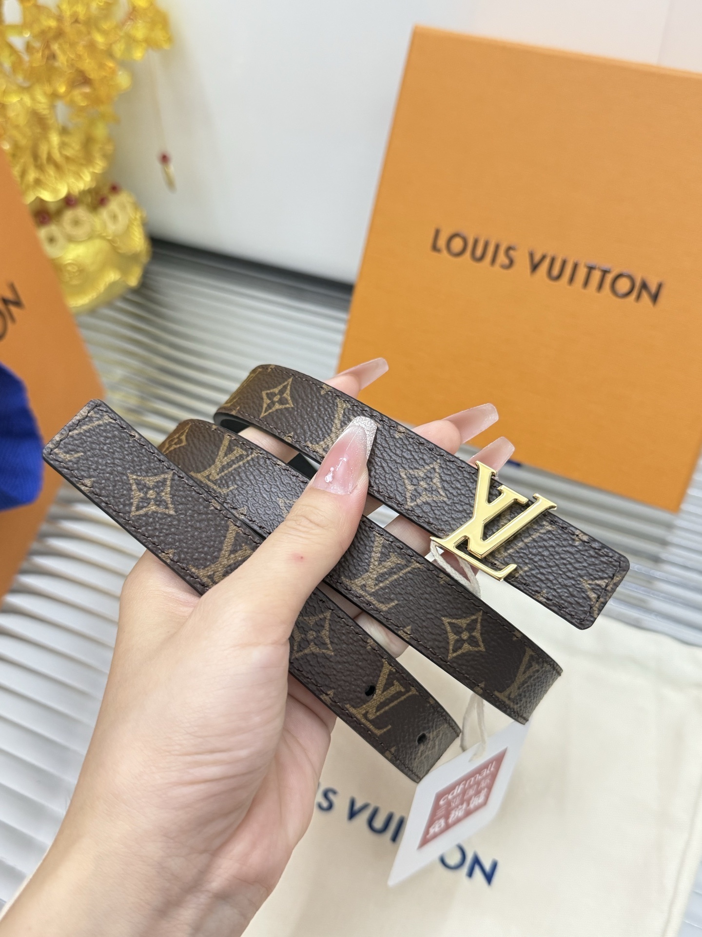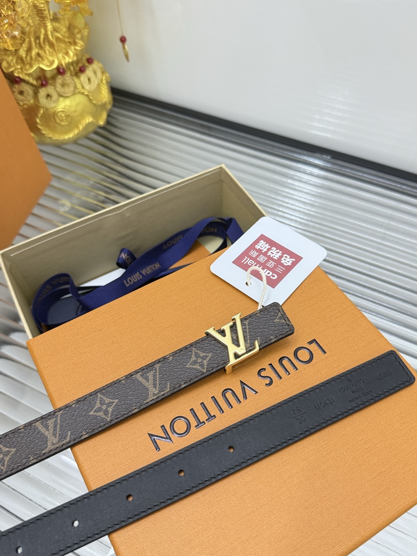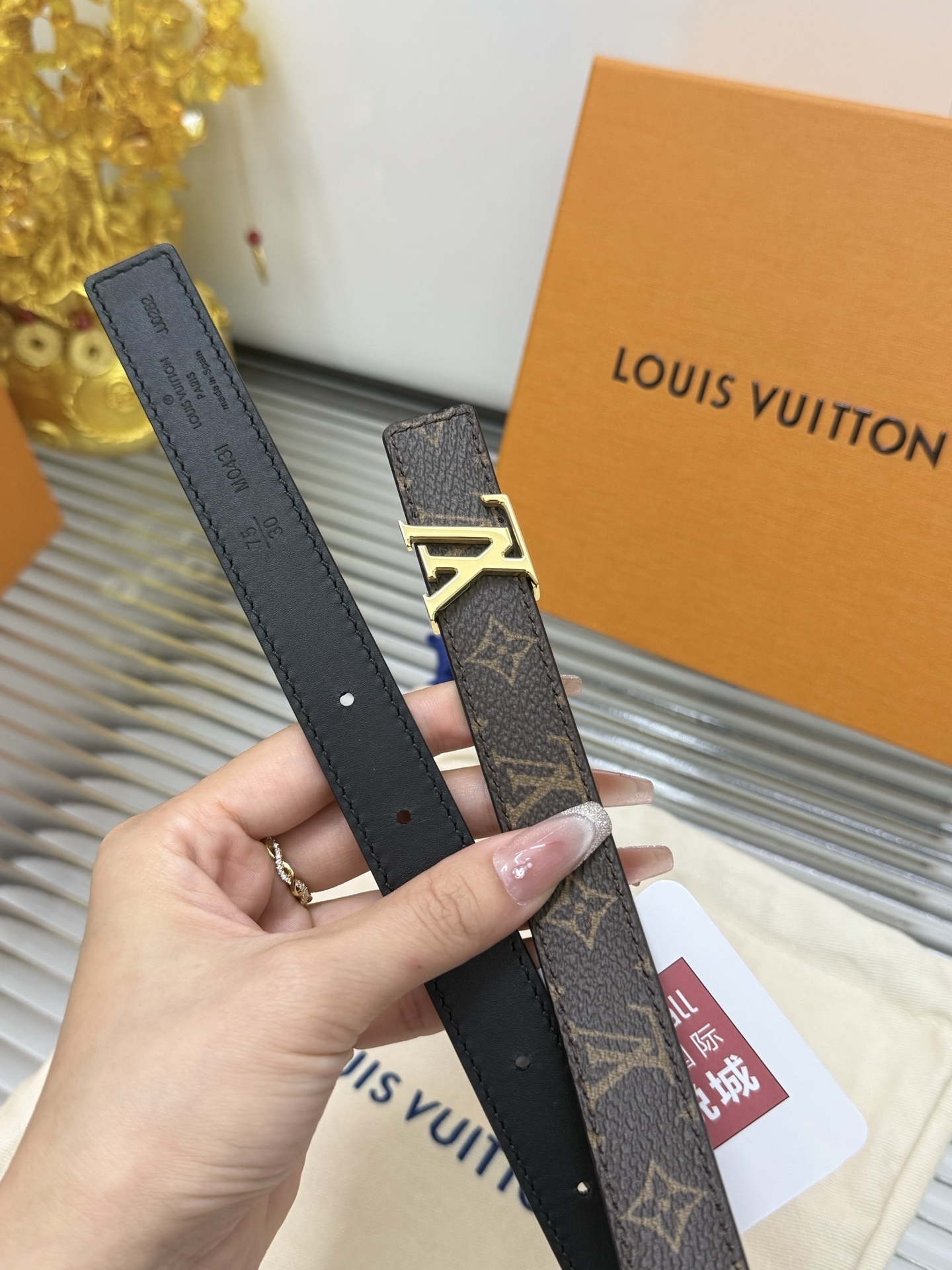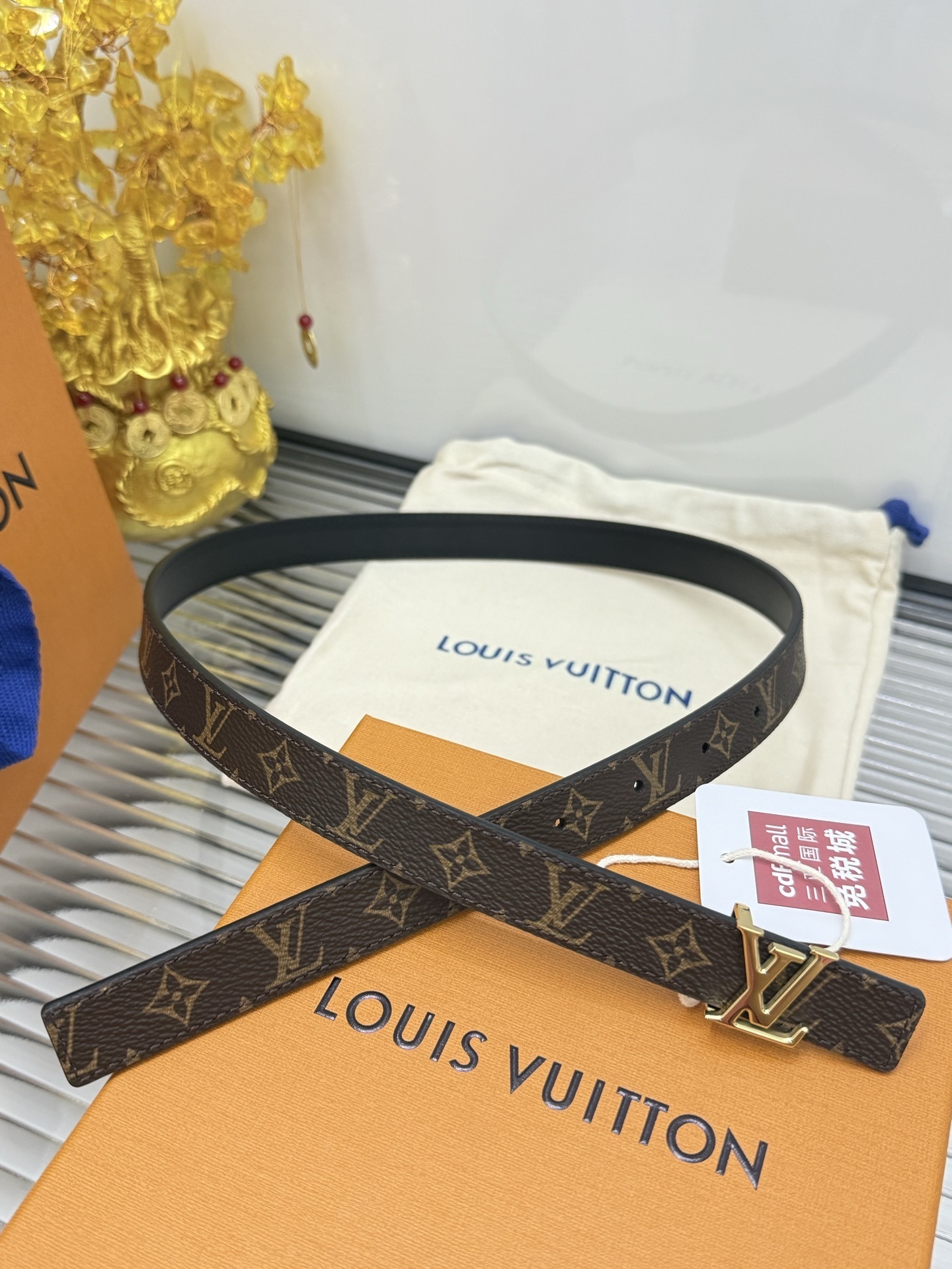 Elegant GG diamond logo buckle belt size 80