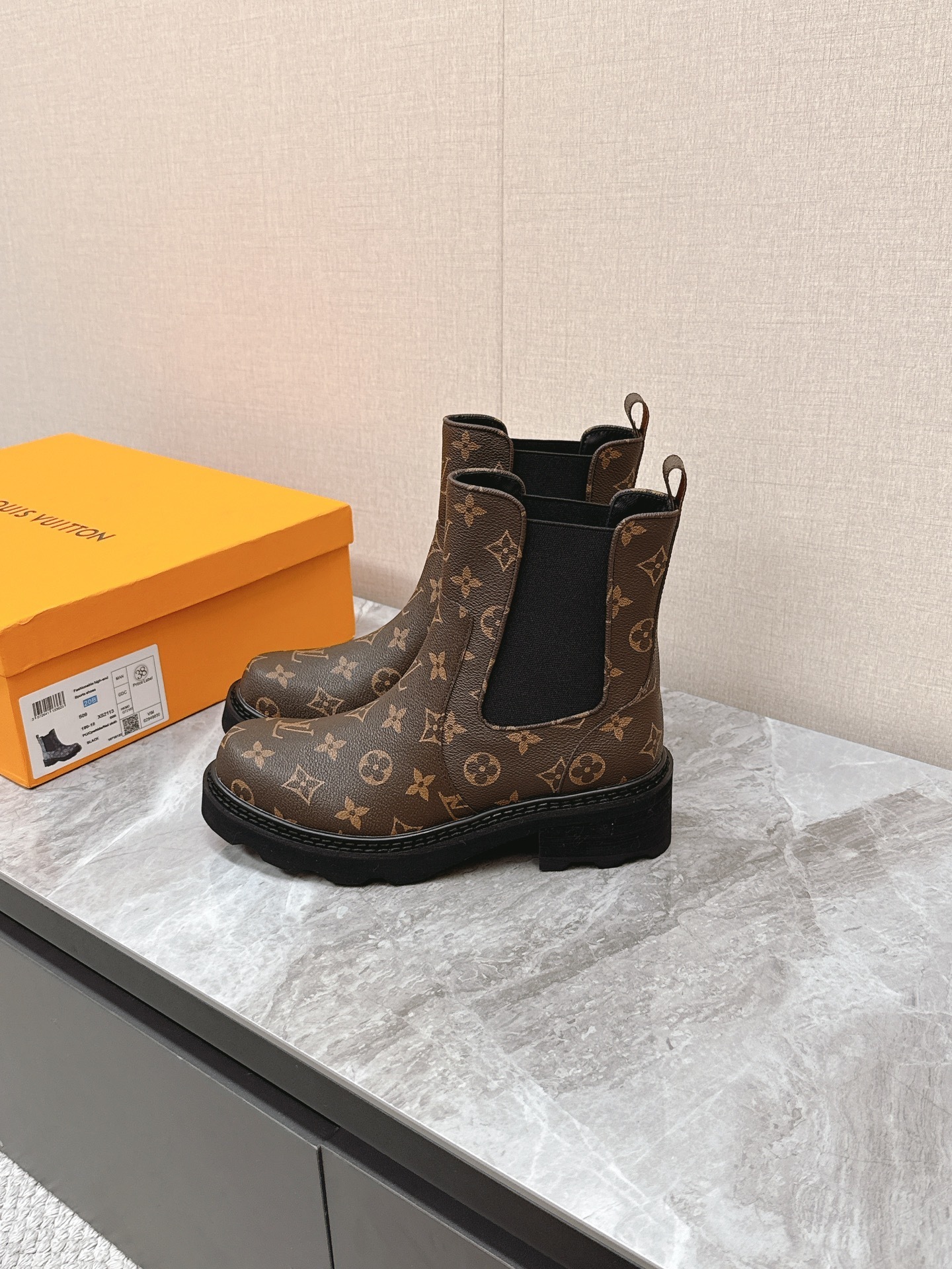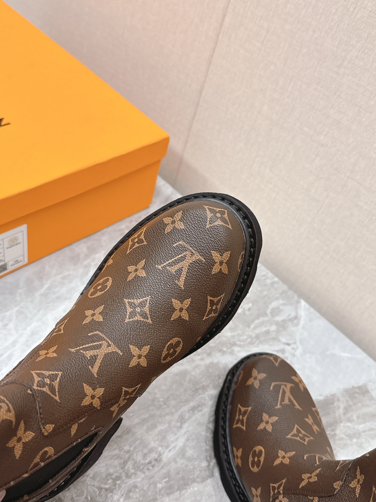 Louis Vuitton Men’s White and Brown Leather Sneakers Monogram Pattern Lace Up Rubber Sole