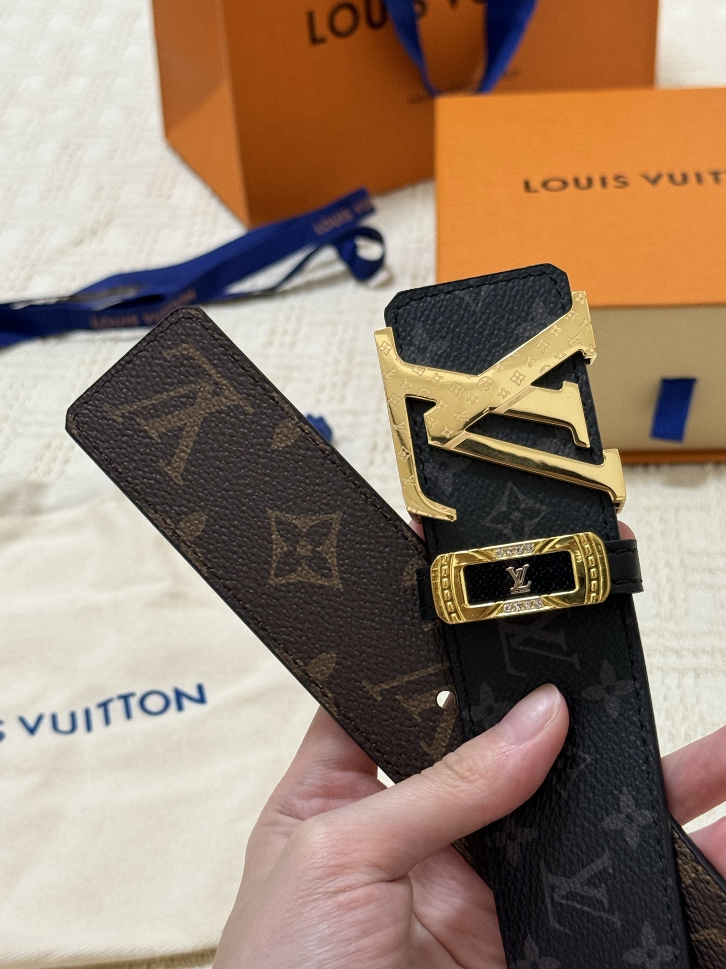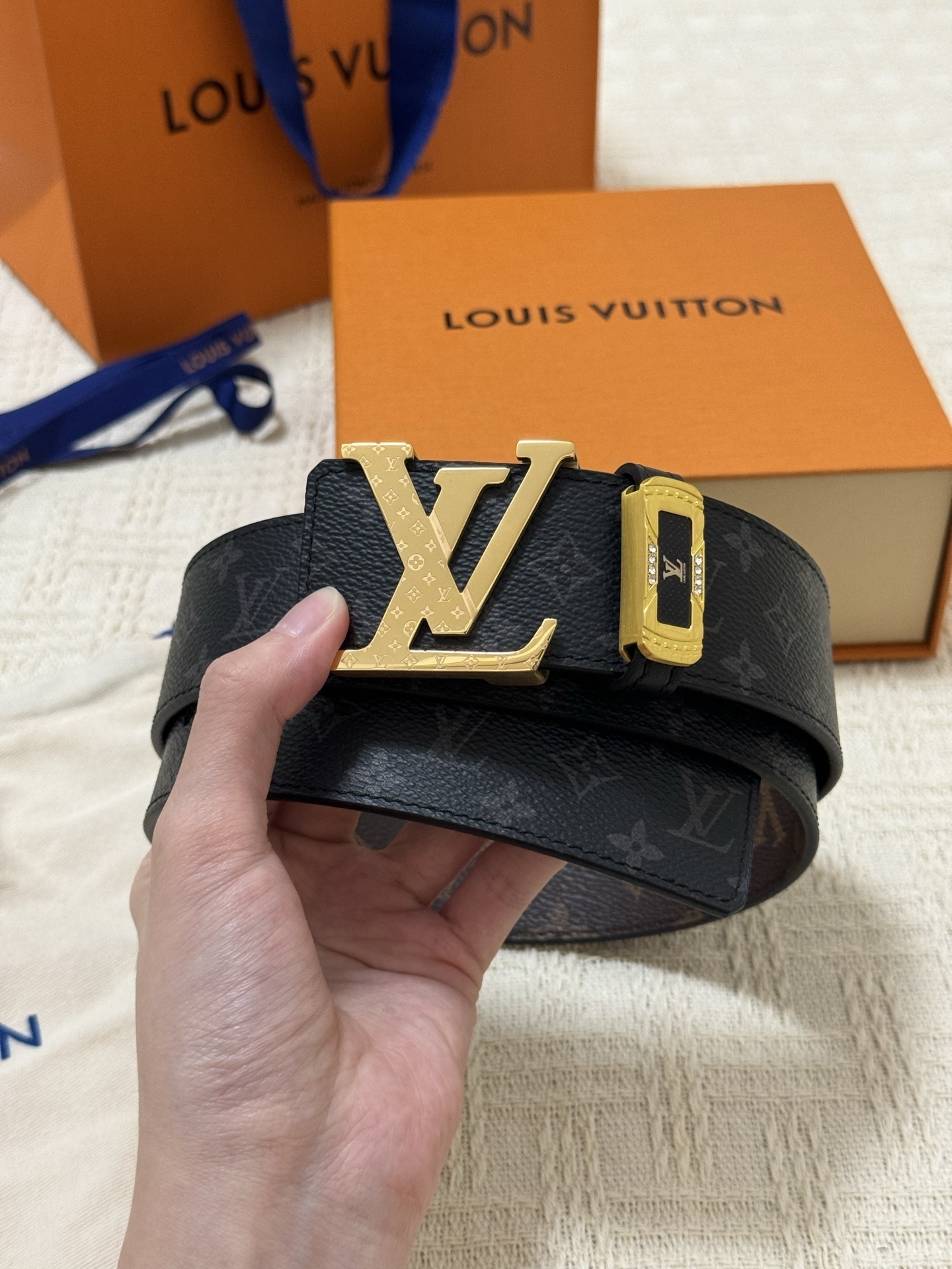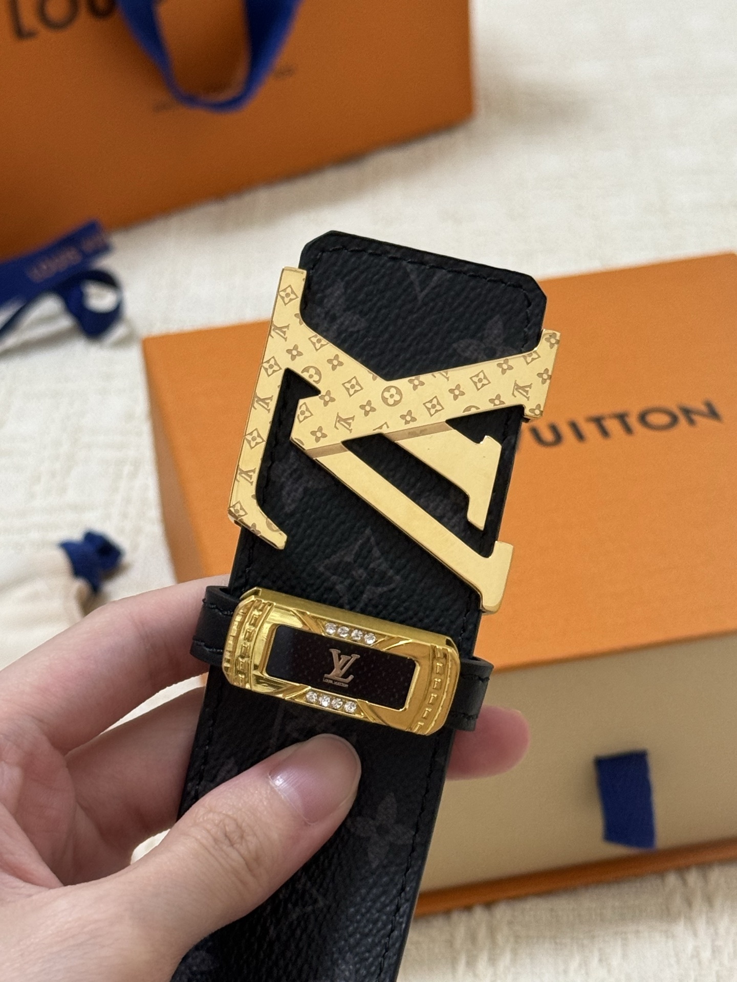 Elegant GG diamond logo buckle belt size 80