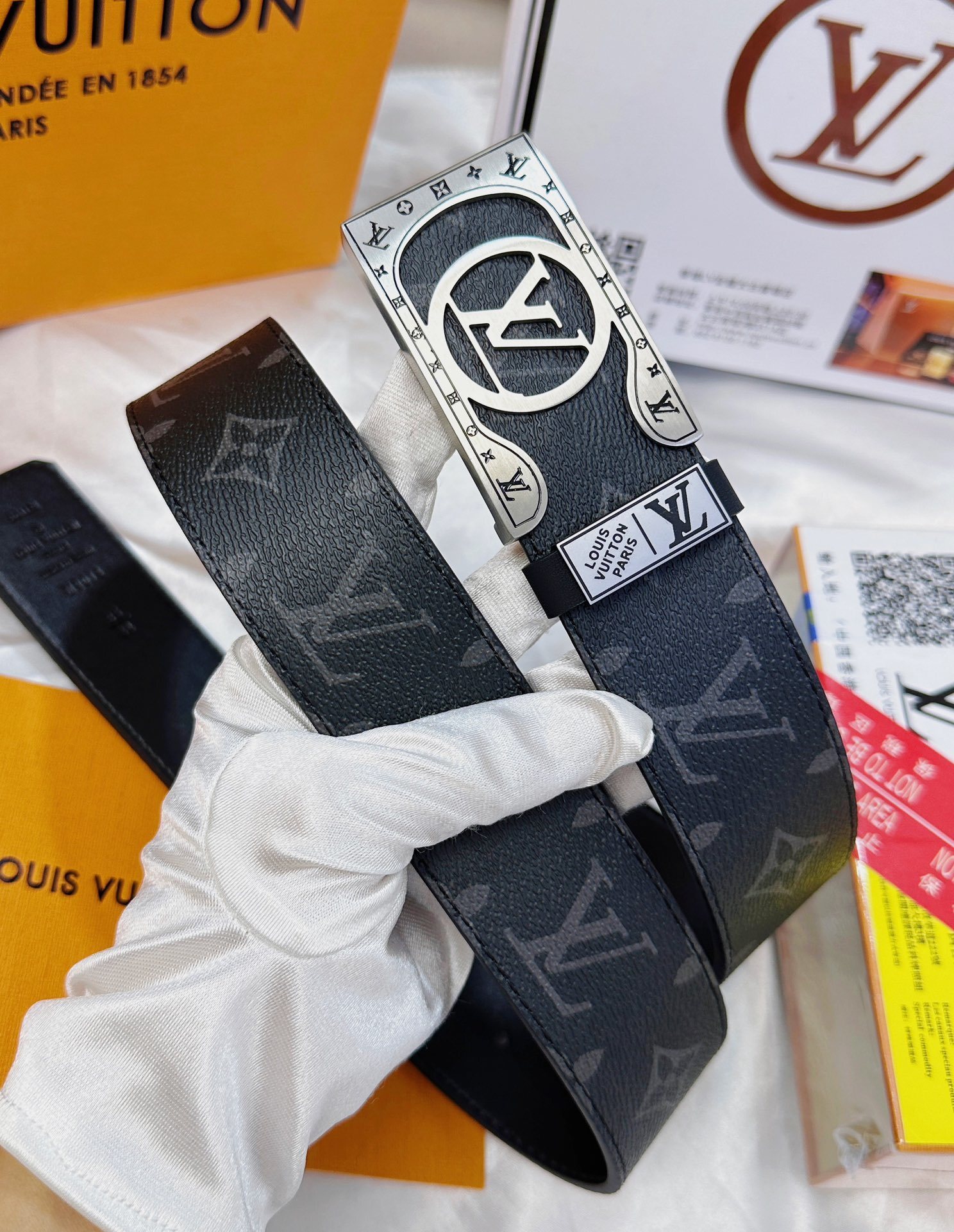 • Premium Details: The belt loop is adorned with a matching metal plate engraved with "Louis Vuitton Paris," showcasing attention to every detail.