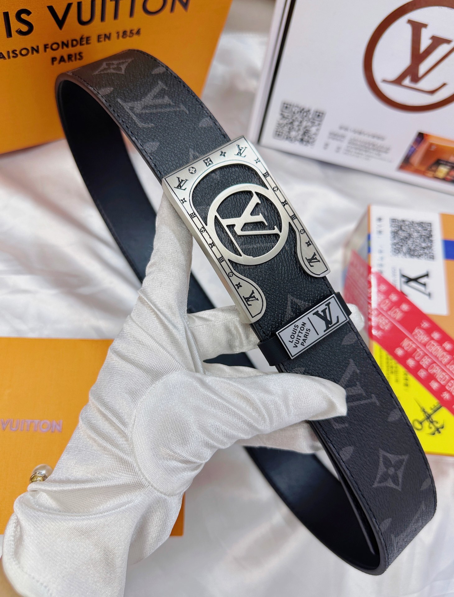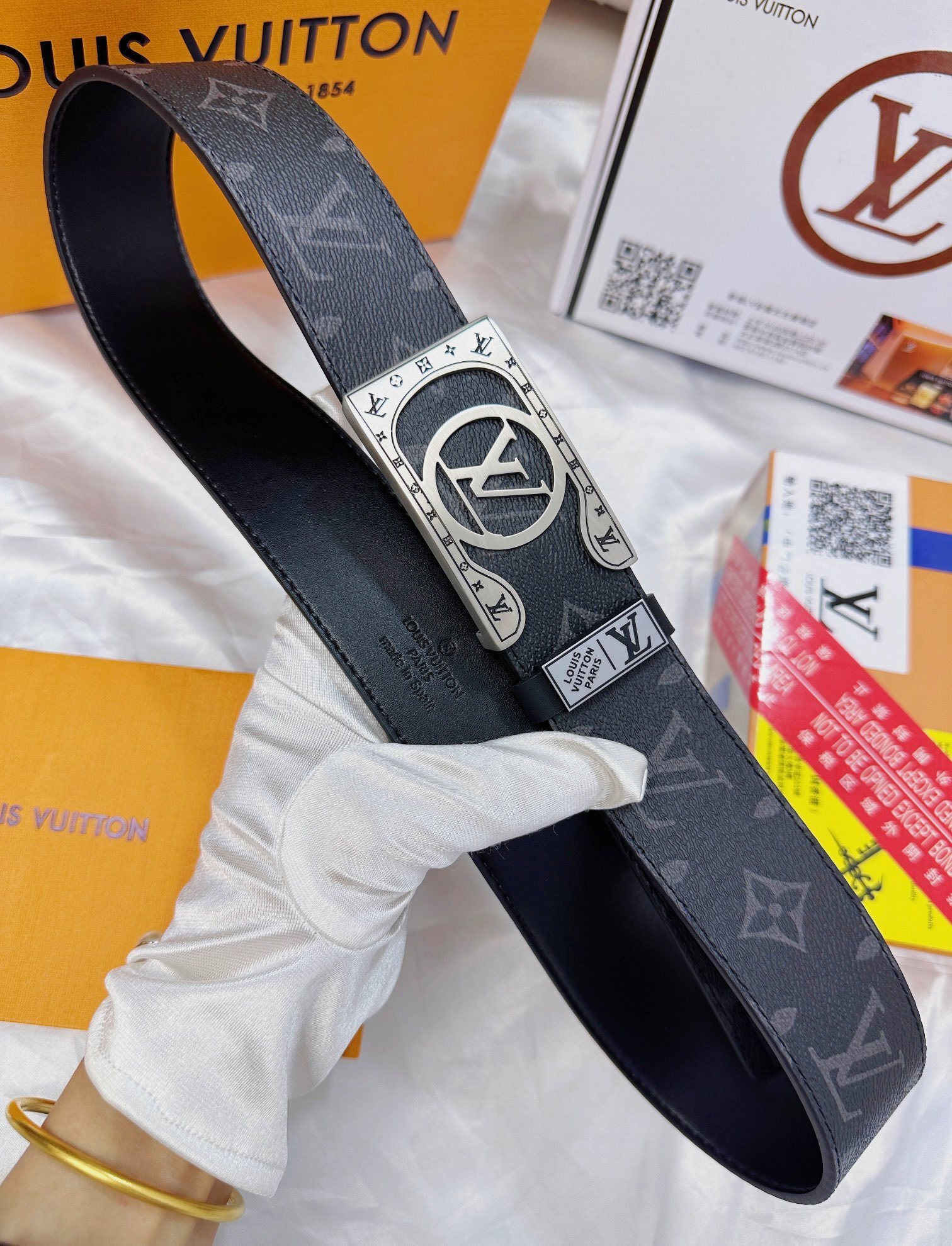 • Signature Silver Buckle: The eye-catching rectangular buckle features a polished silver-tone finish with an intricately designed LV Initial logo, framed by delicate engravings.