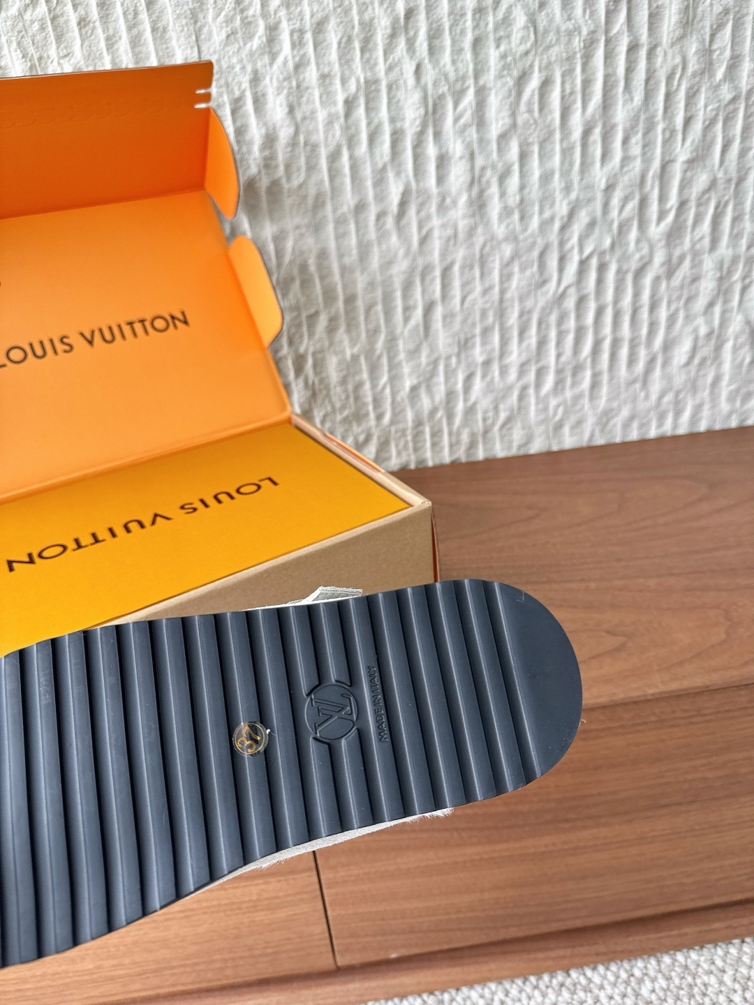 Louis Vuitton Men’s Navy Blue Embossed Monogram Slide Sandals