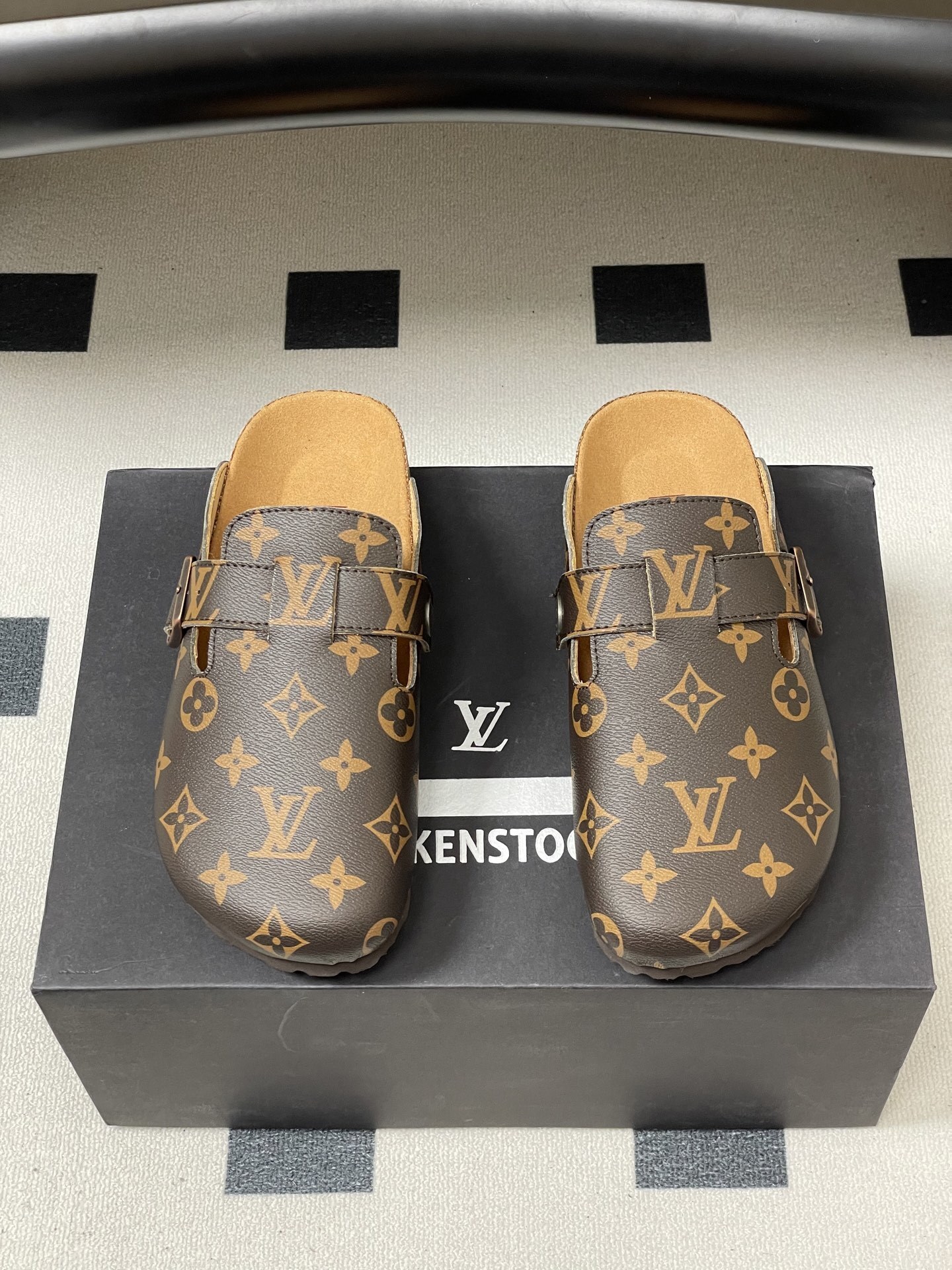 Louis Vuitton Men’s Brown Slide Sandals Damier Pattern Rubber Sole Slip On