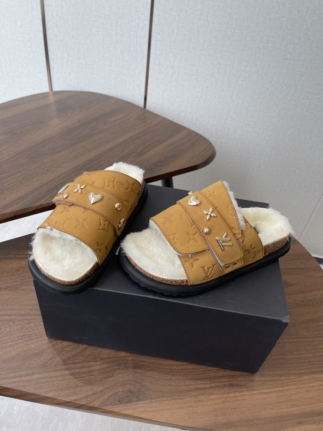 Louis Vuitton Black Monogram Double Strap Sandals