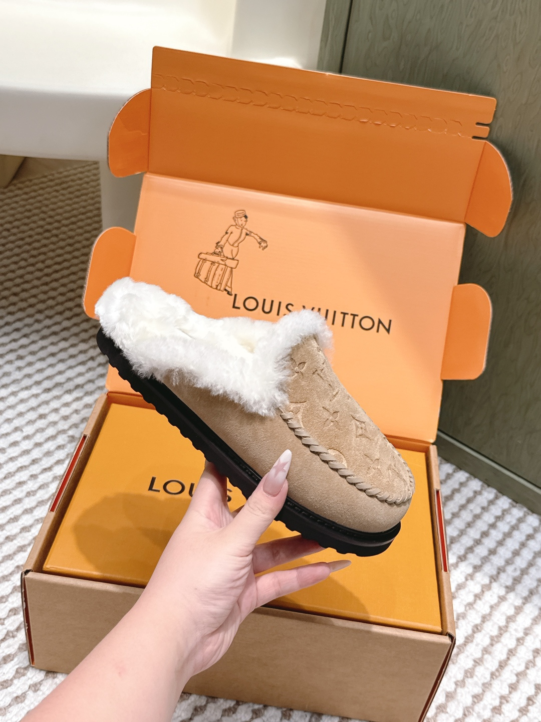 Louis Vuitton Men’s Navy Blue Embossed Monogram Slide Sandals