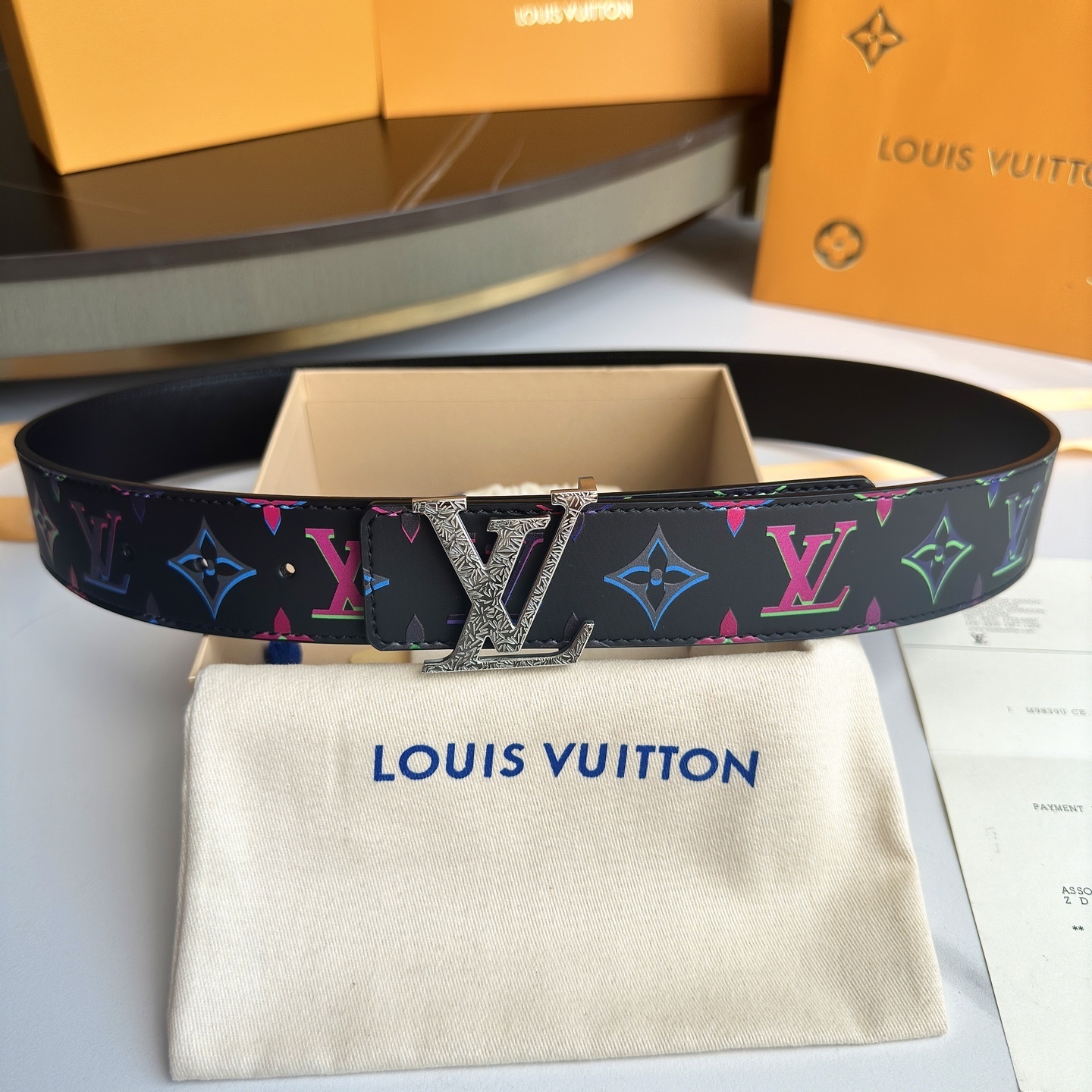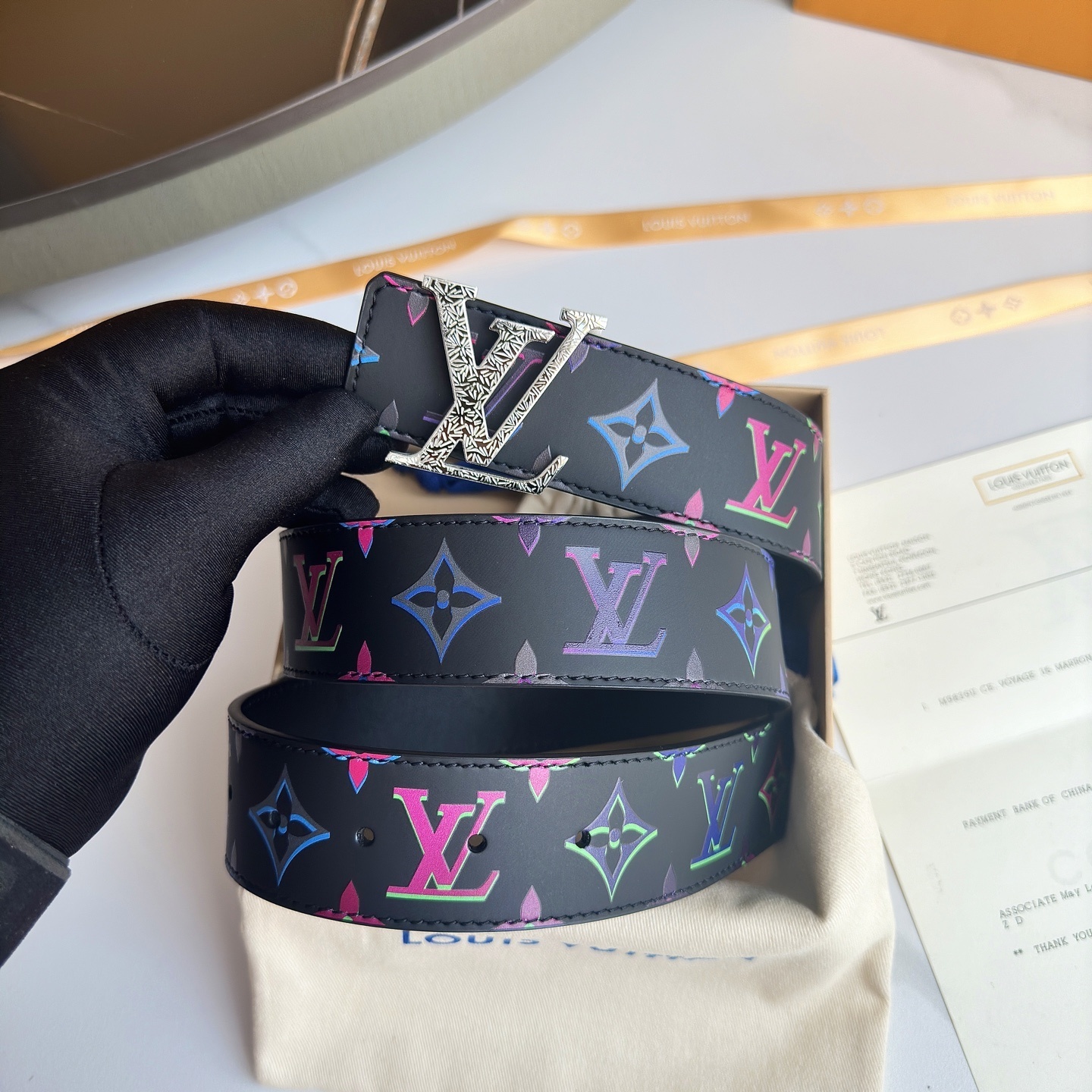 Brown leather belt with gold metal buckle engraved with Miu Miu