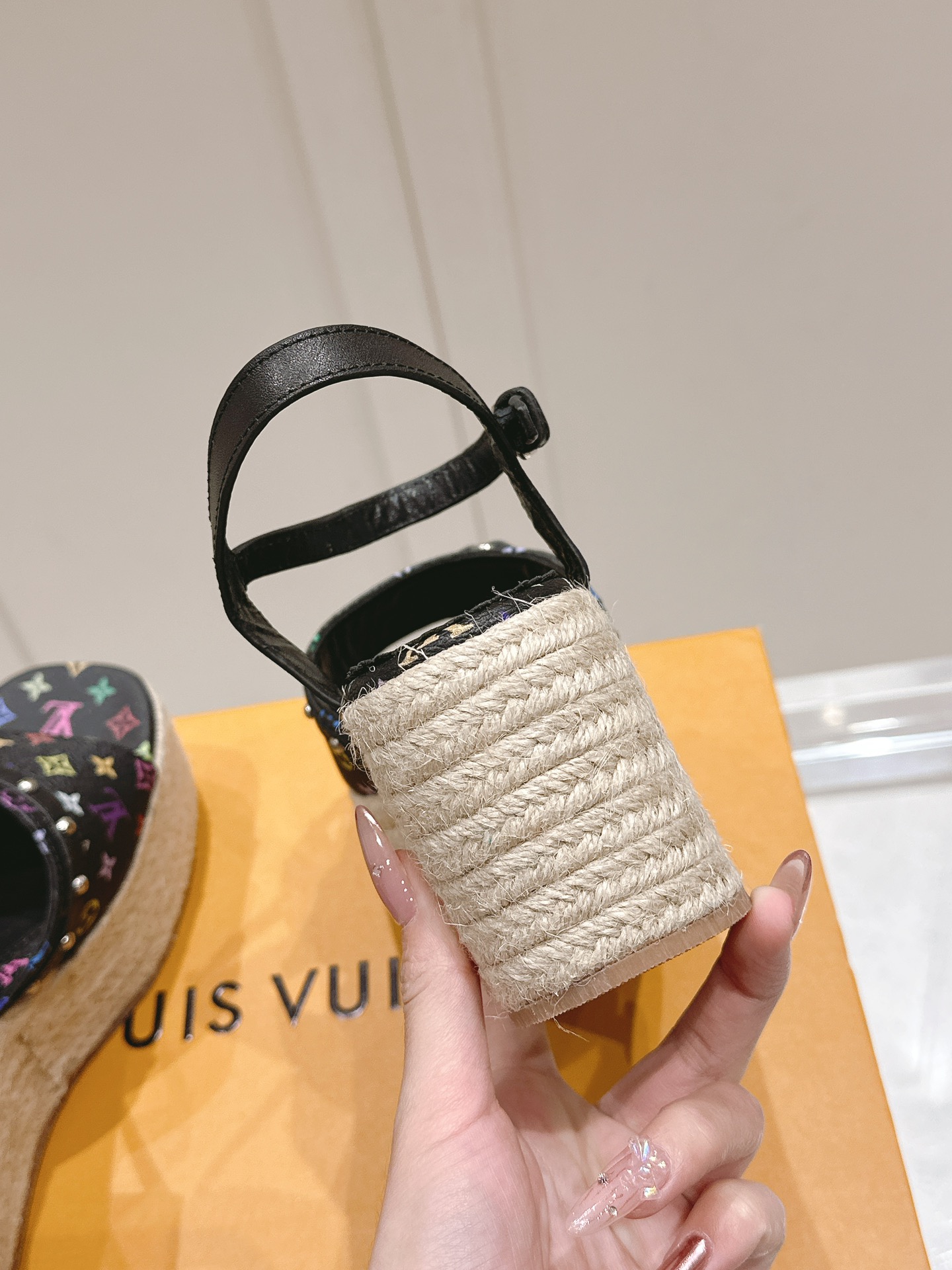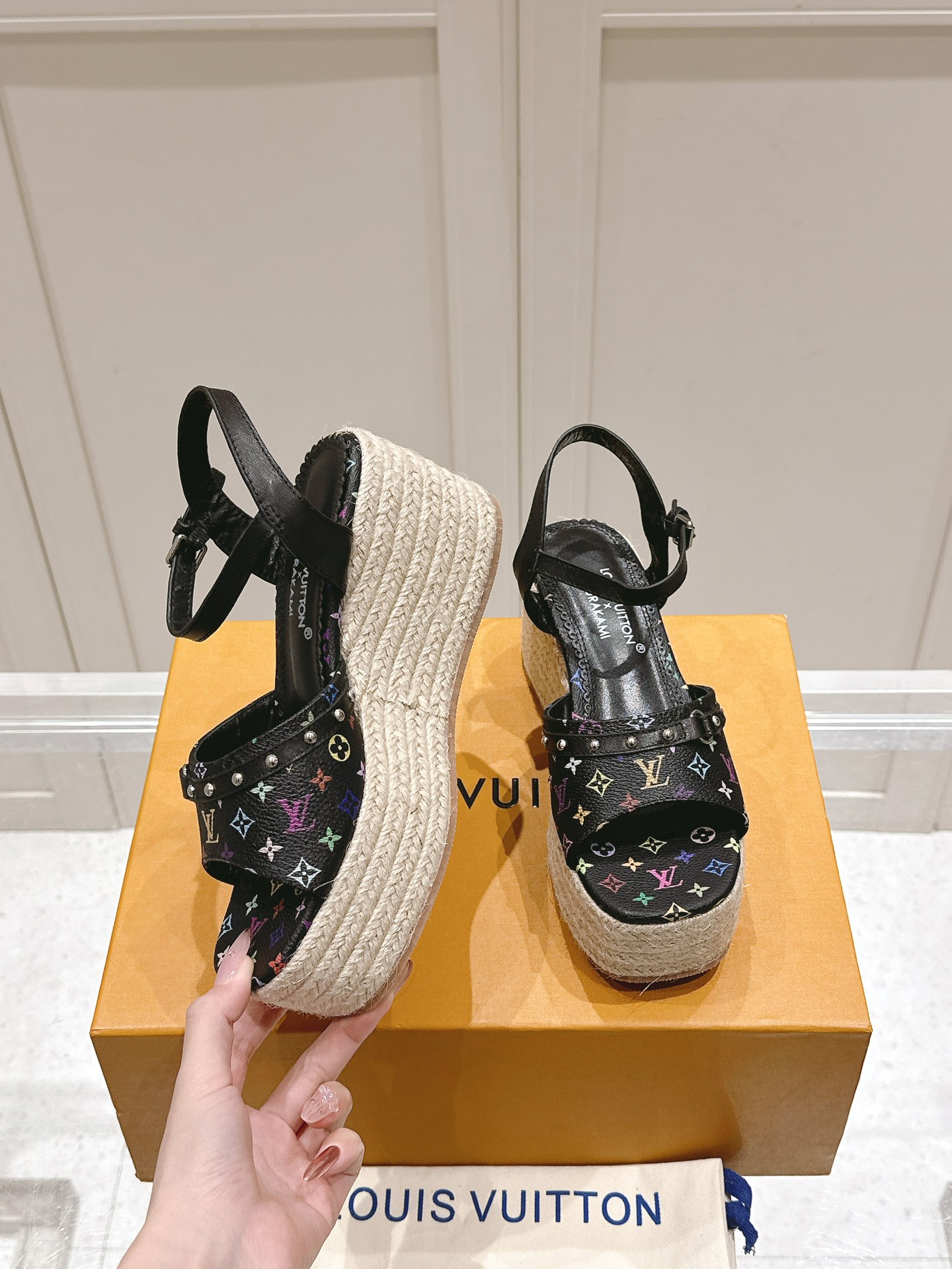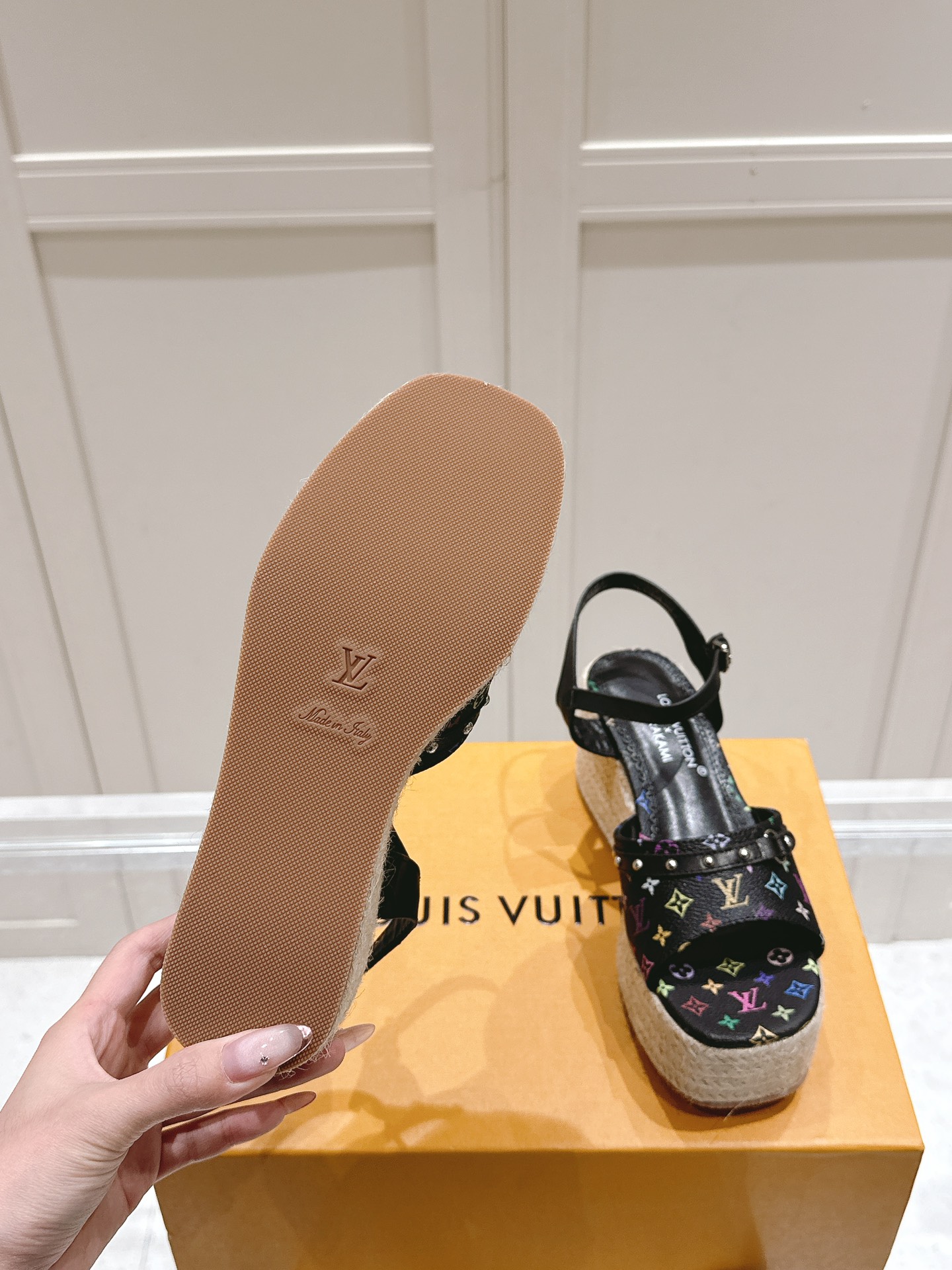 Louis Vuitton Black Leather Sandals with Adjustable Straps