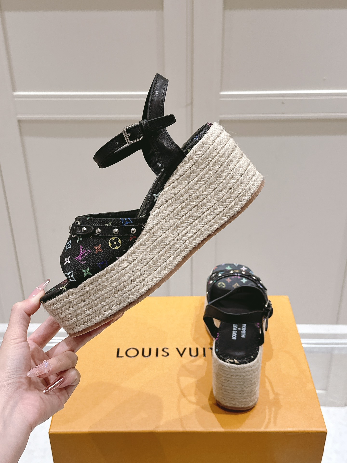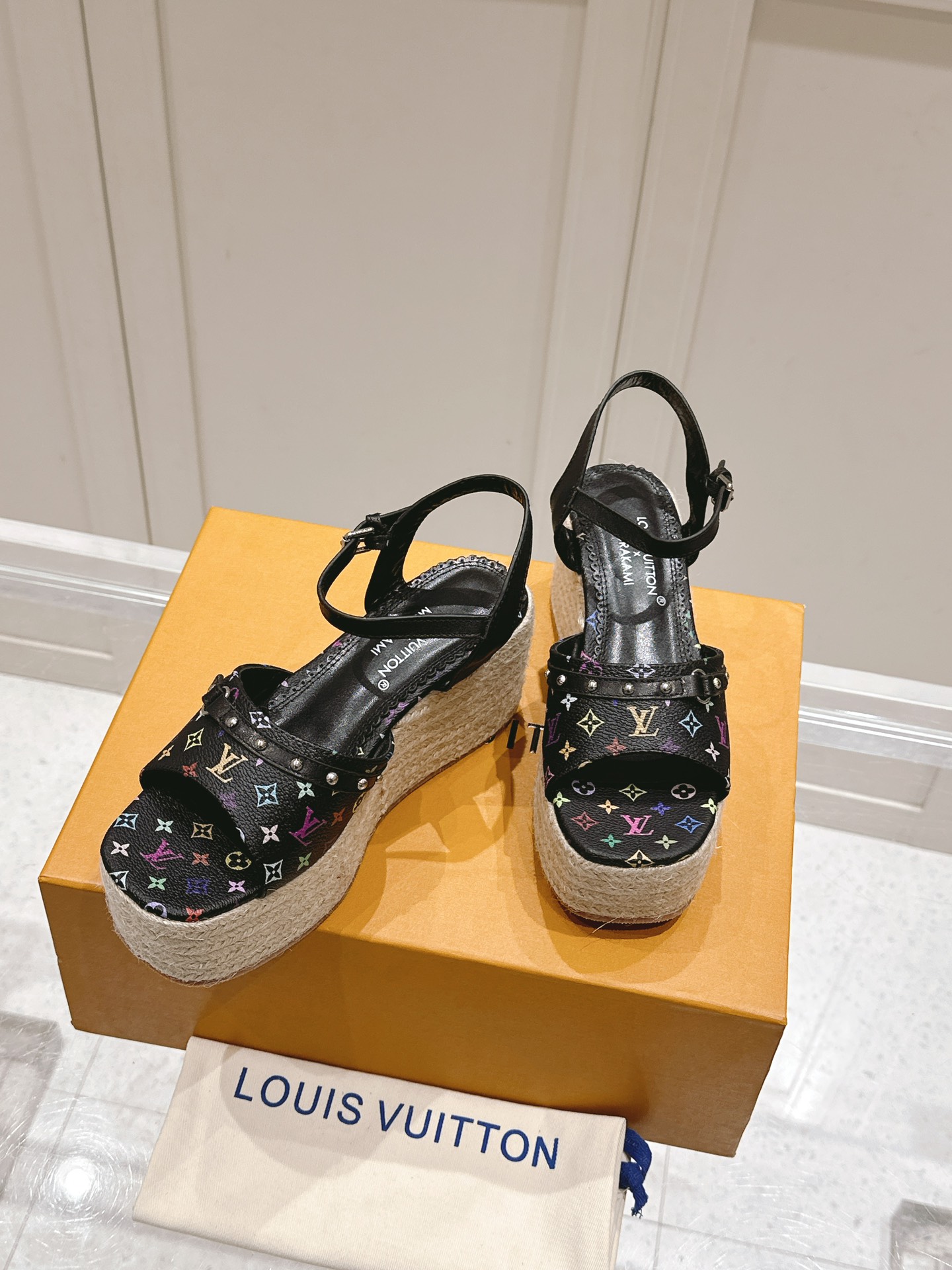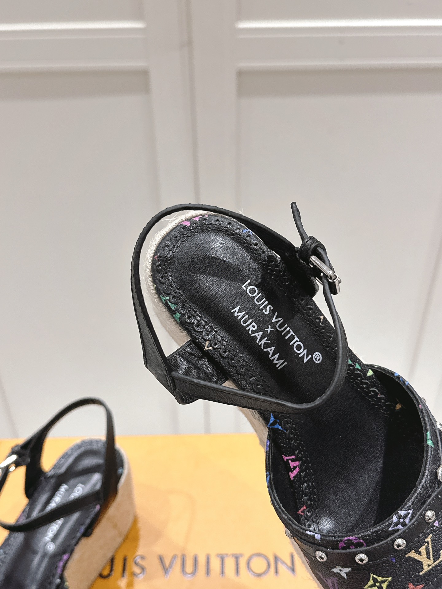 Louis Vuitton Black Leather Sandals with Adjustable Straps