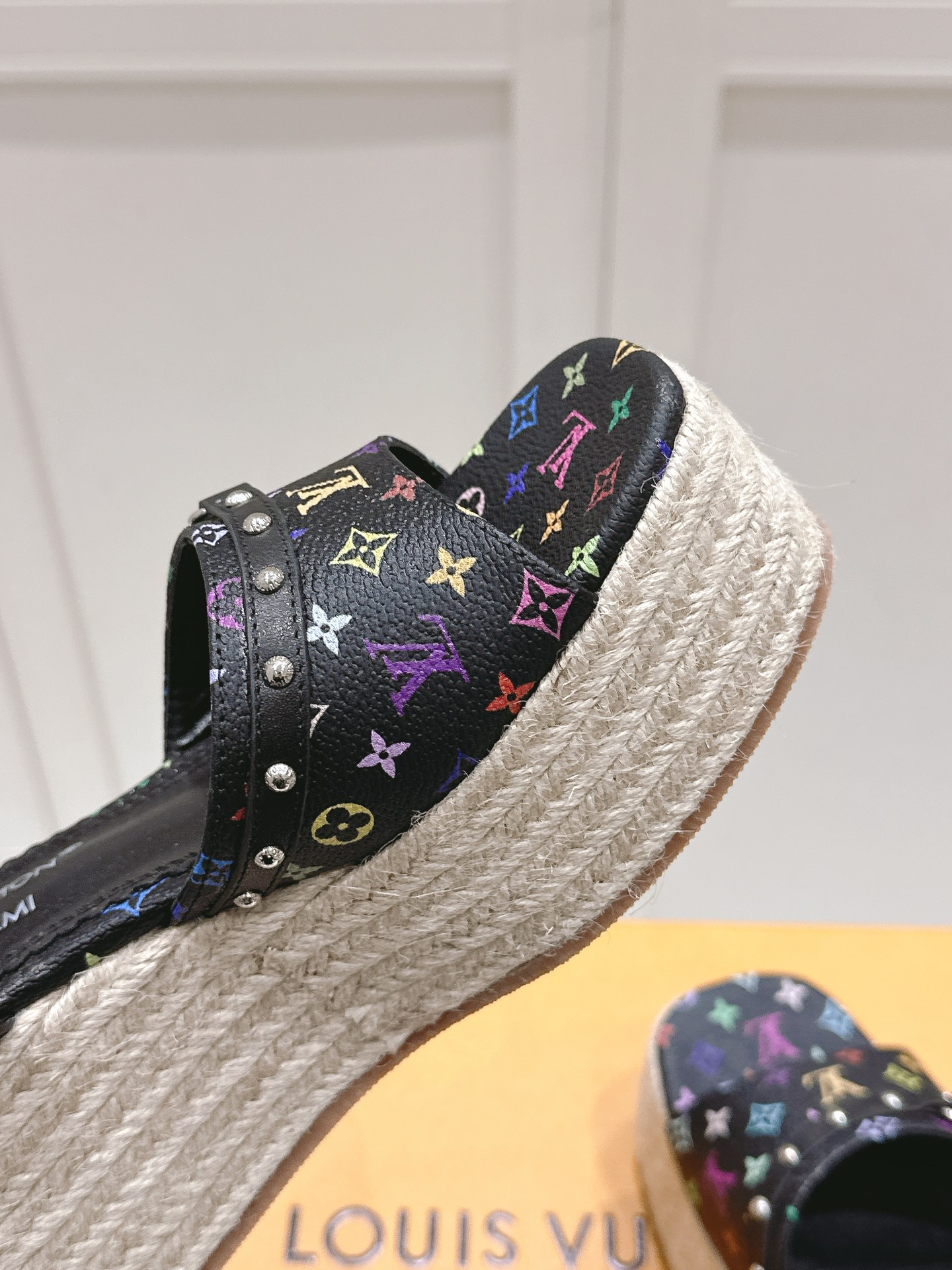 Louis Vuitton Monogram Black Canvas Slide Sandals