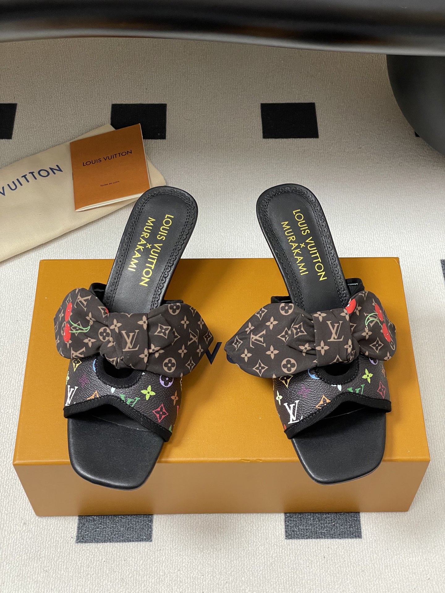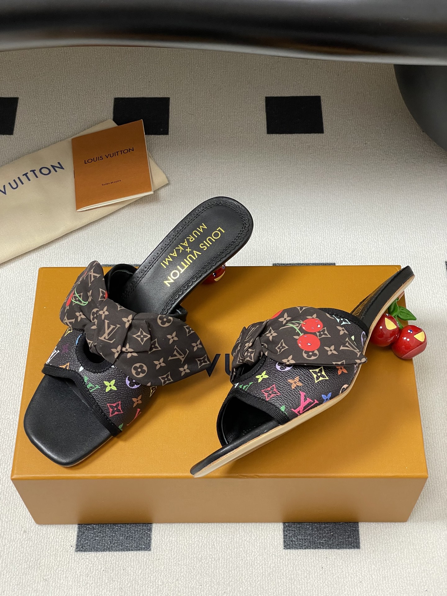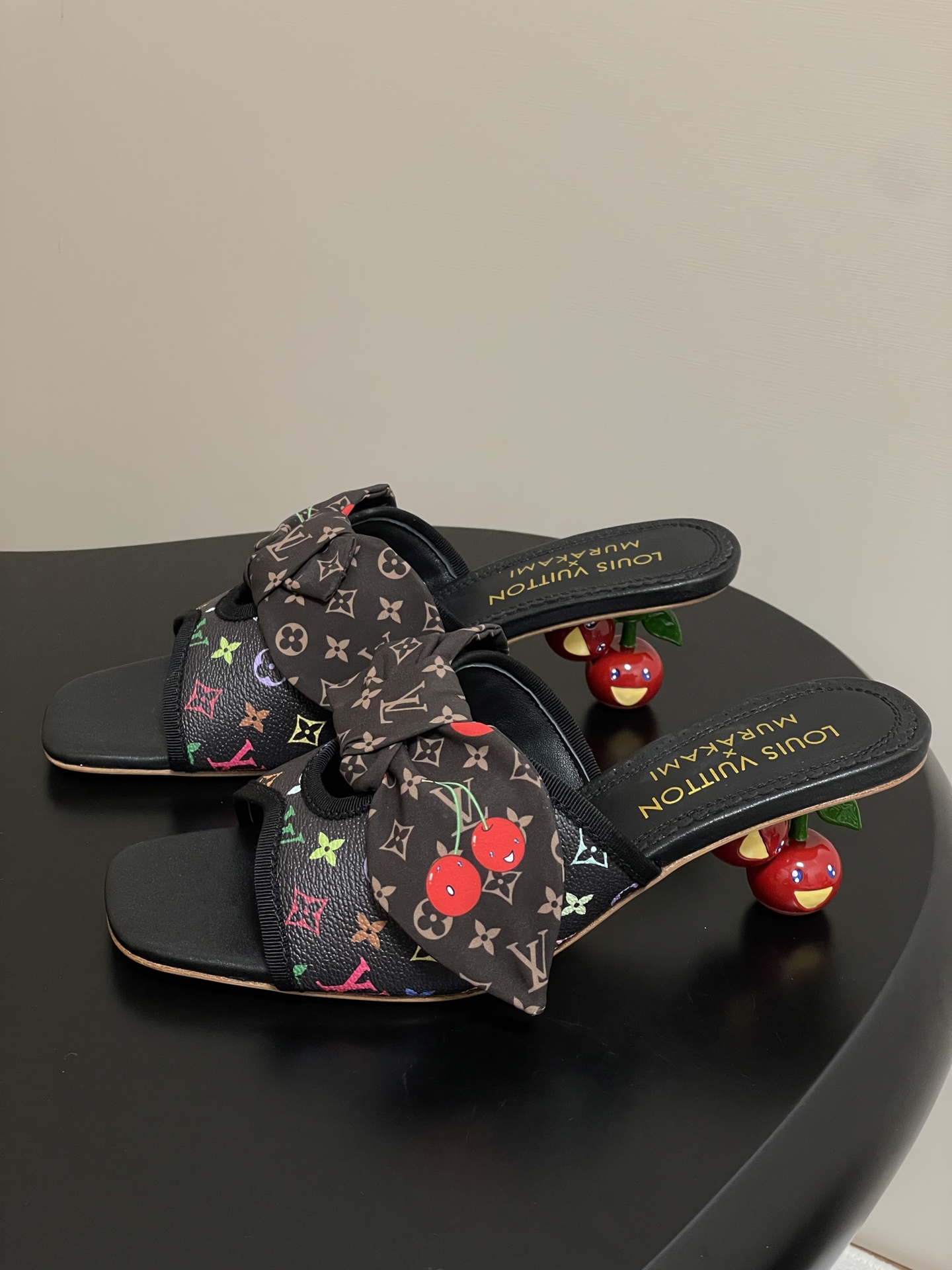 Louis Vuitton Black Monogram Cherry Bow Heel Sandals for Women