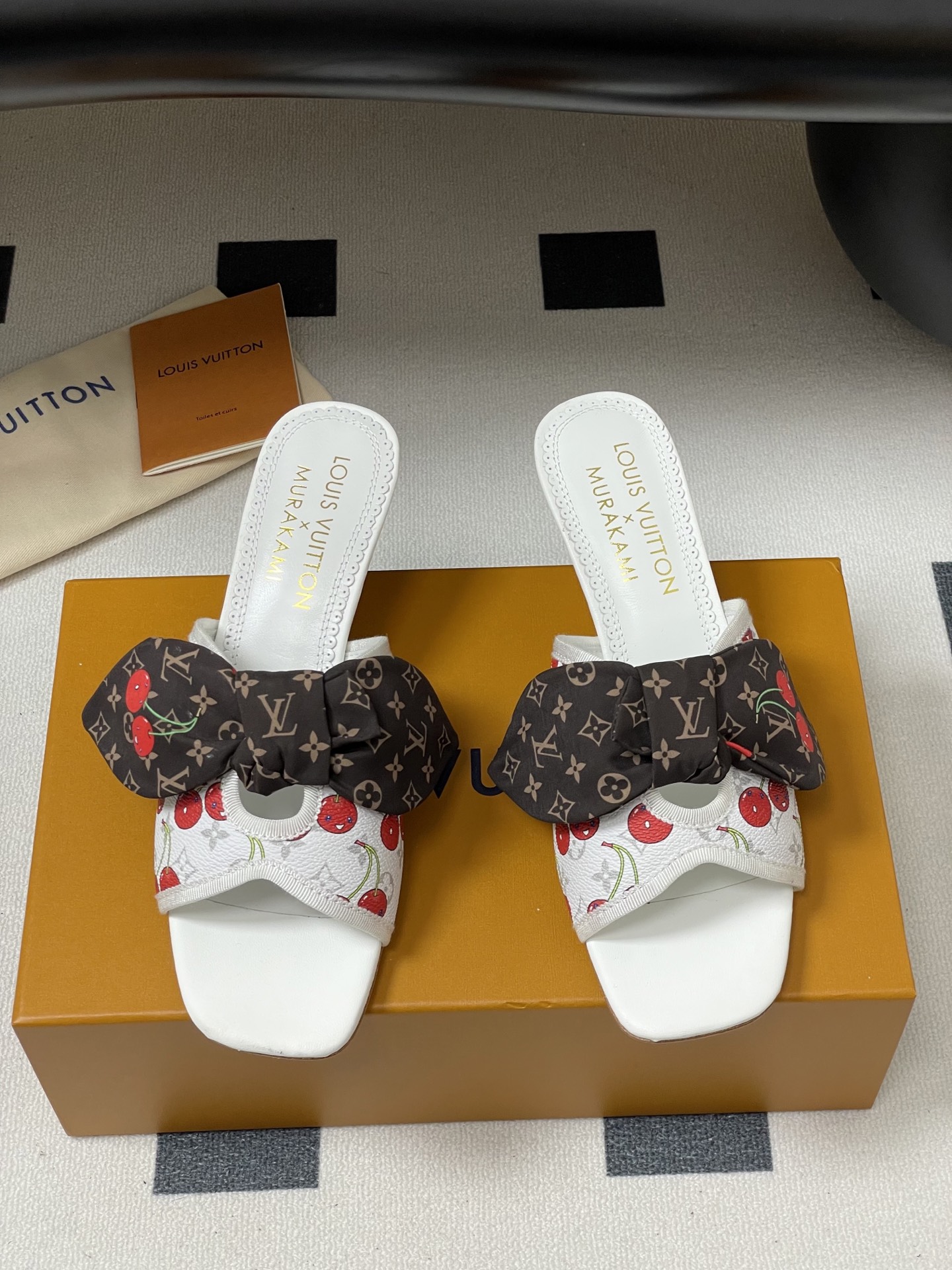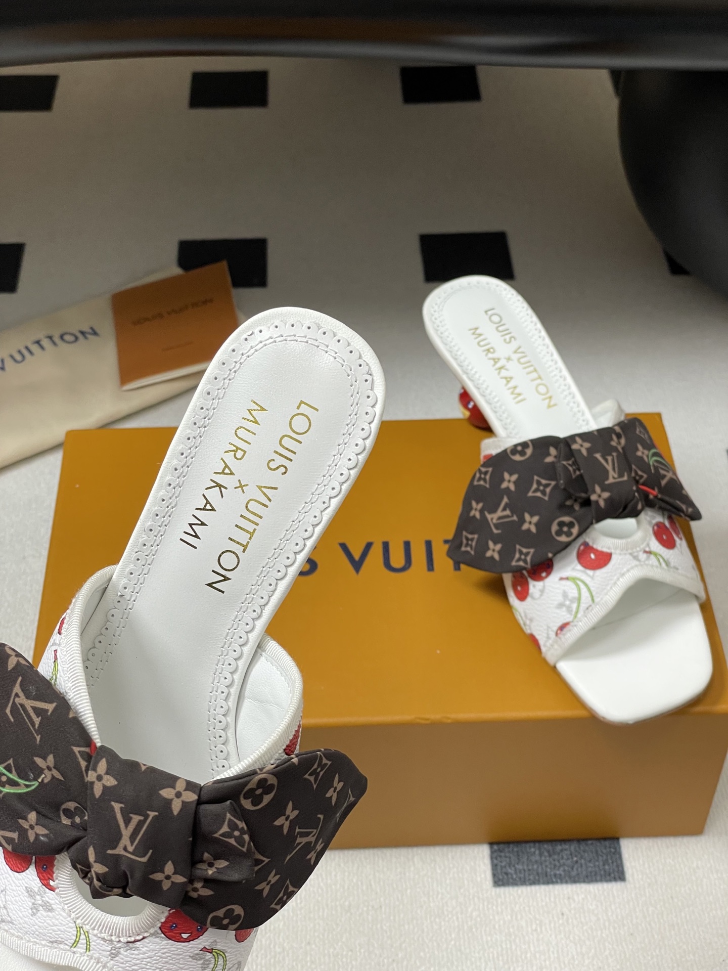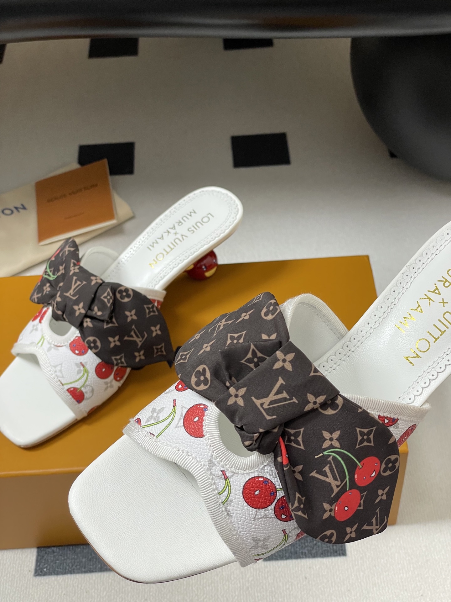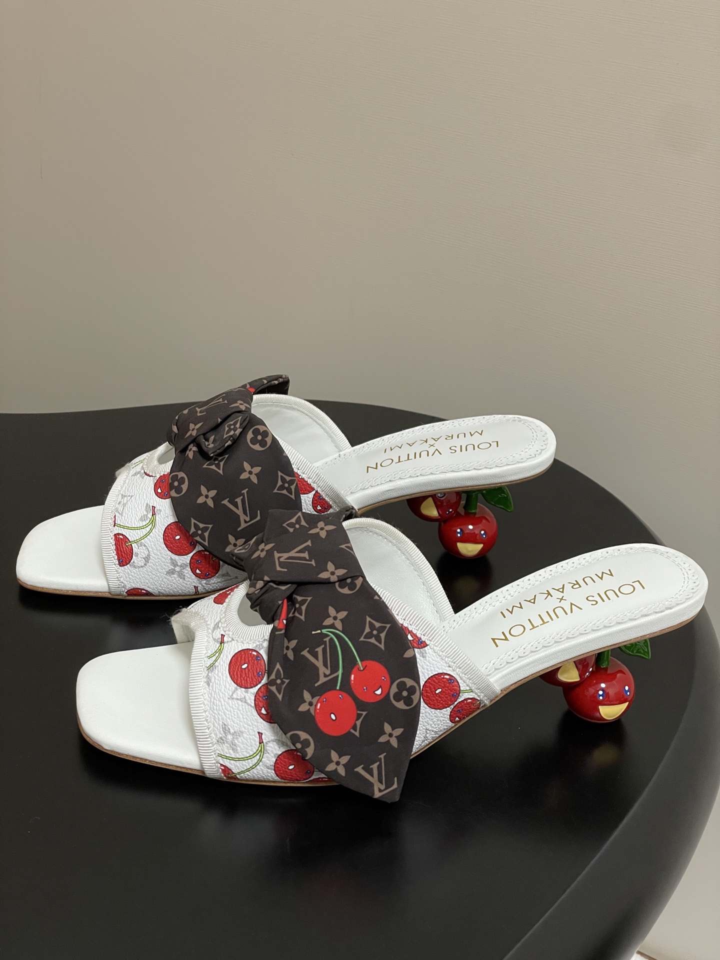 Louis Vuitton Murakami Cherry White and Brown Bow Heeled Sandals for Women
