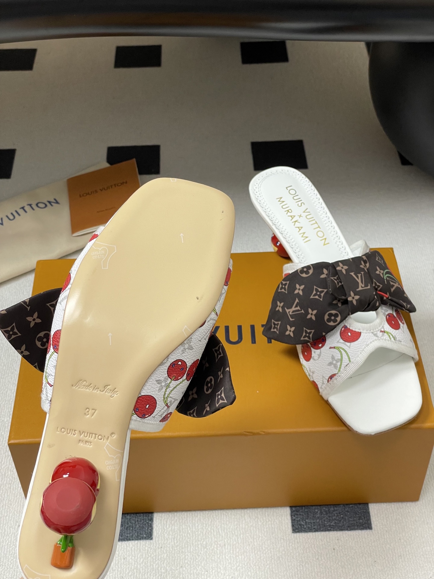 • Material: Premium leather upper with printed monogram and cherry motifs