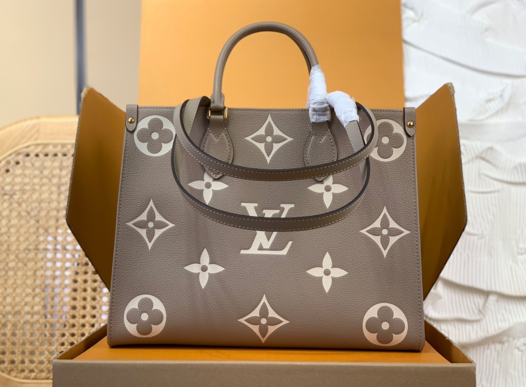 Louis Vuitton OnTheGo MM Bag Bicolor Monogram Empreinte Leather Gray