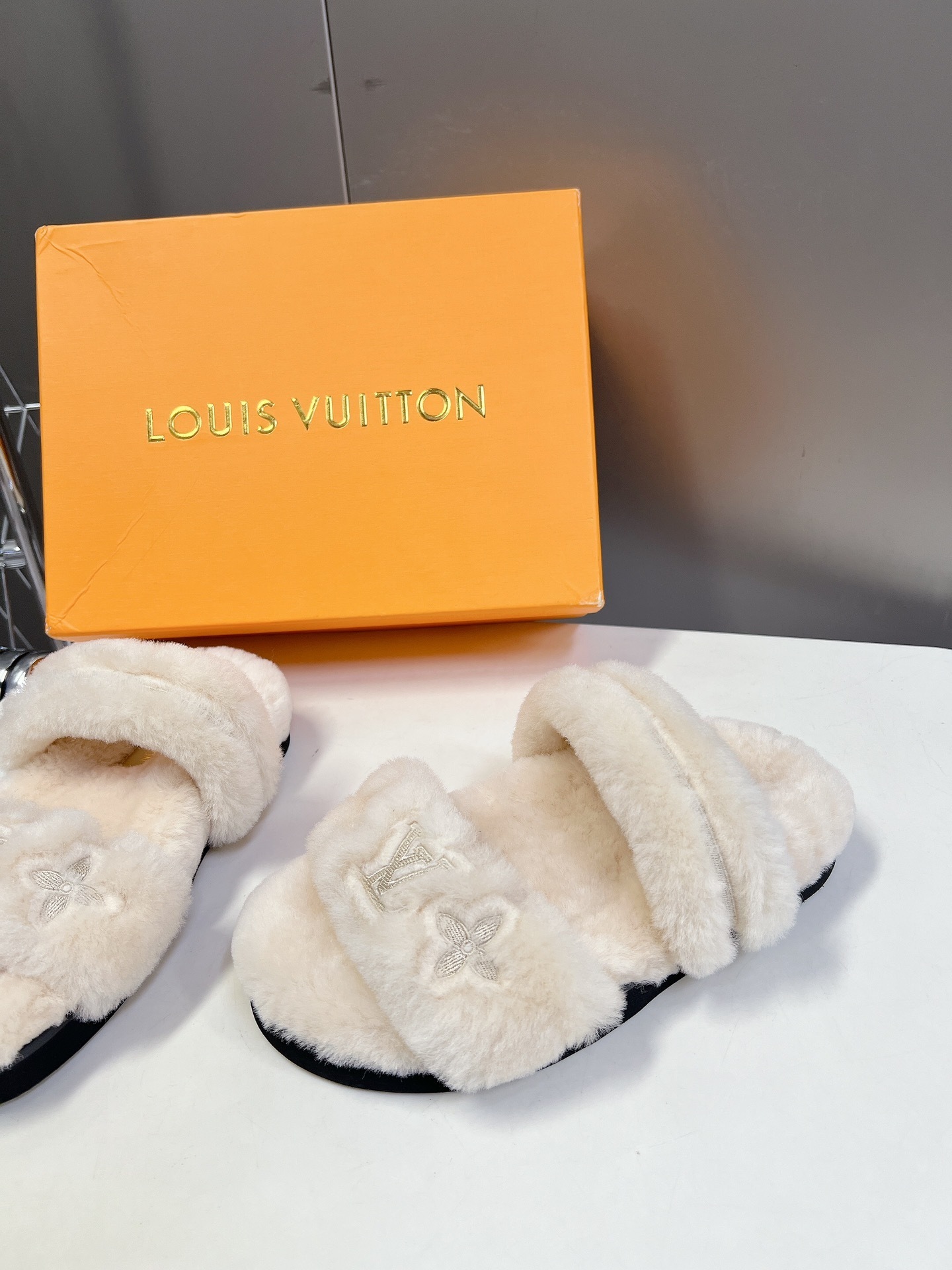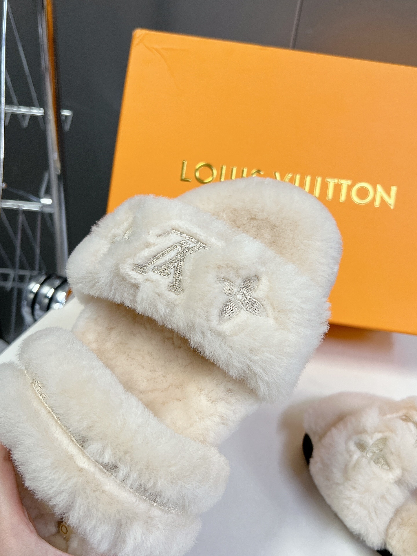 Louis Vuitton Paseo Flat Comfort Sandal Shearling White Monogram