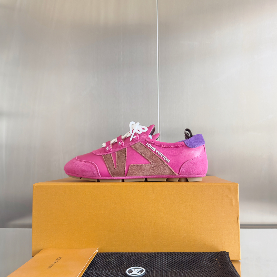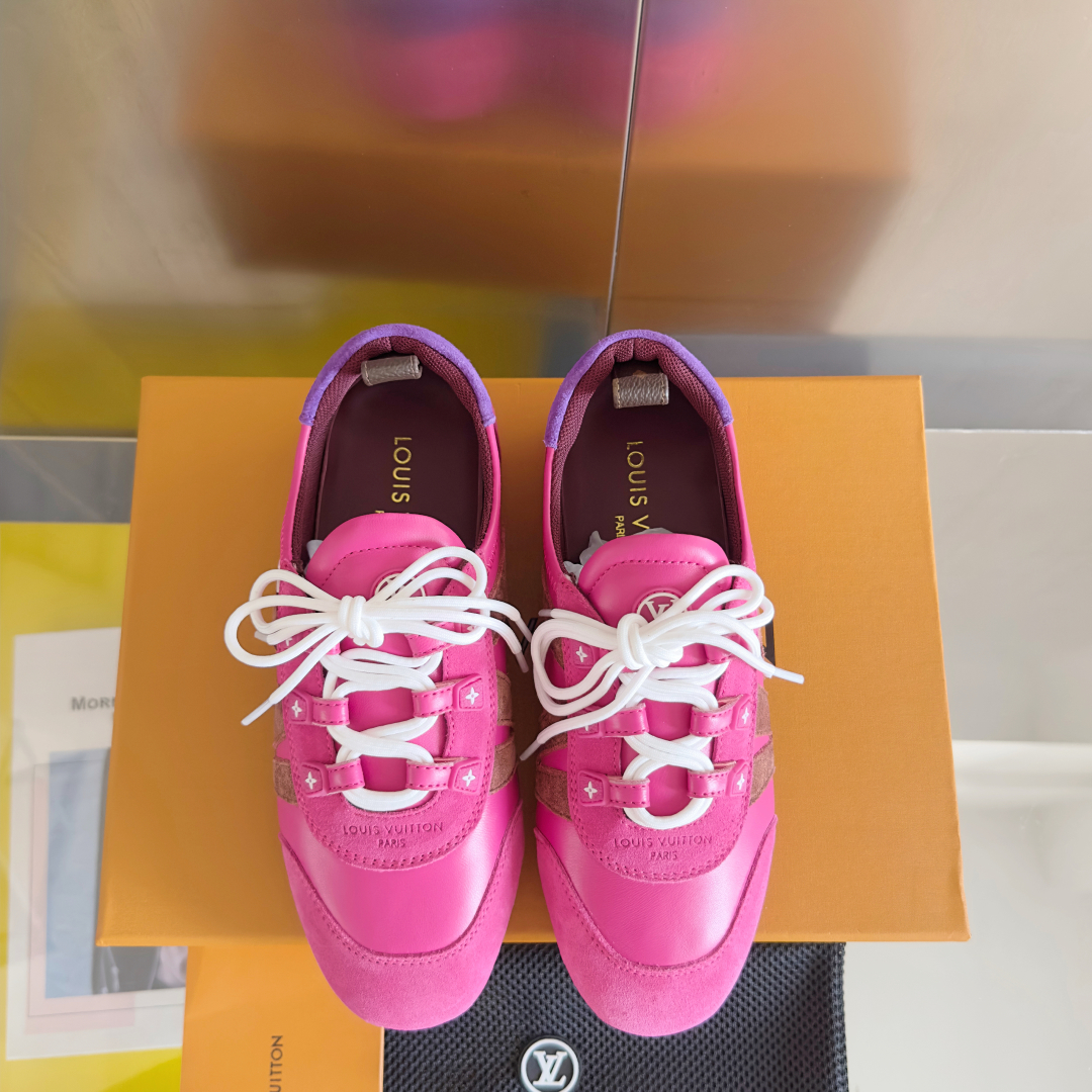 Louis Vuitton Pink Monogram Sneakers Women Casual Leather Shoes
