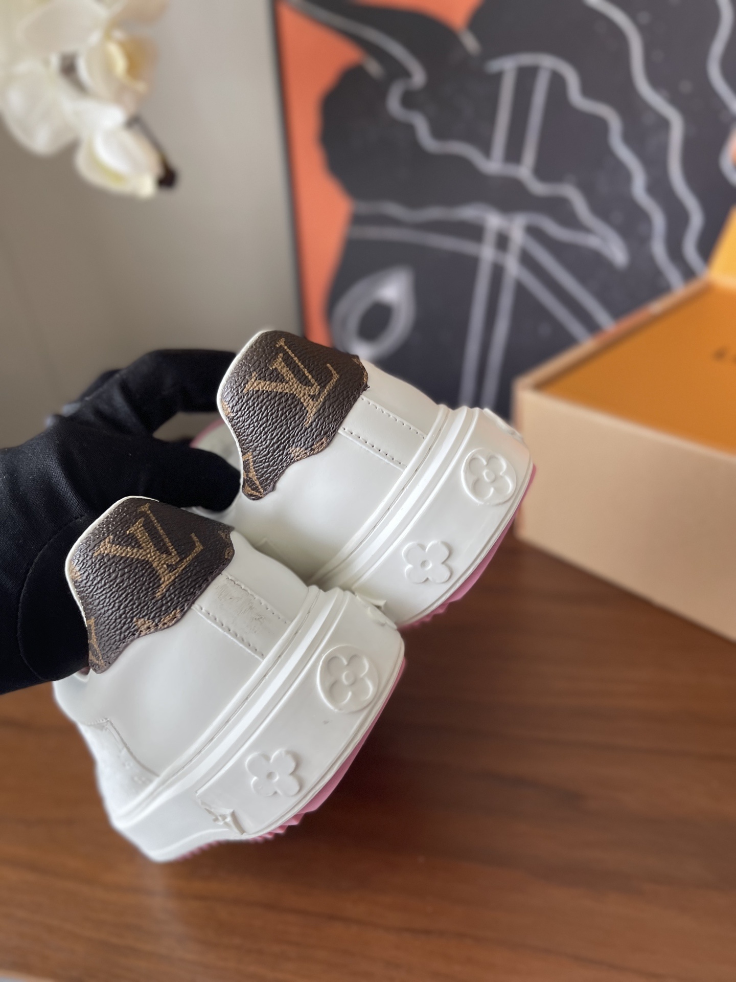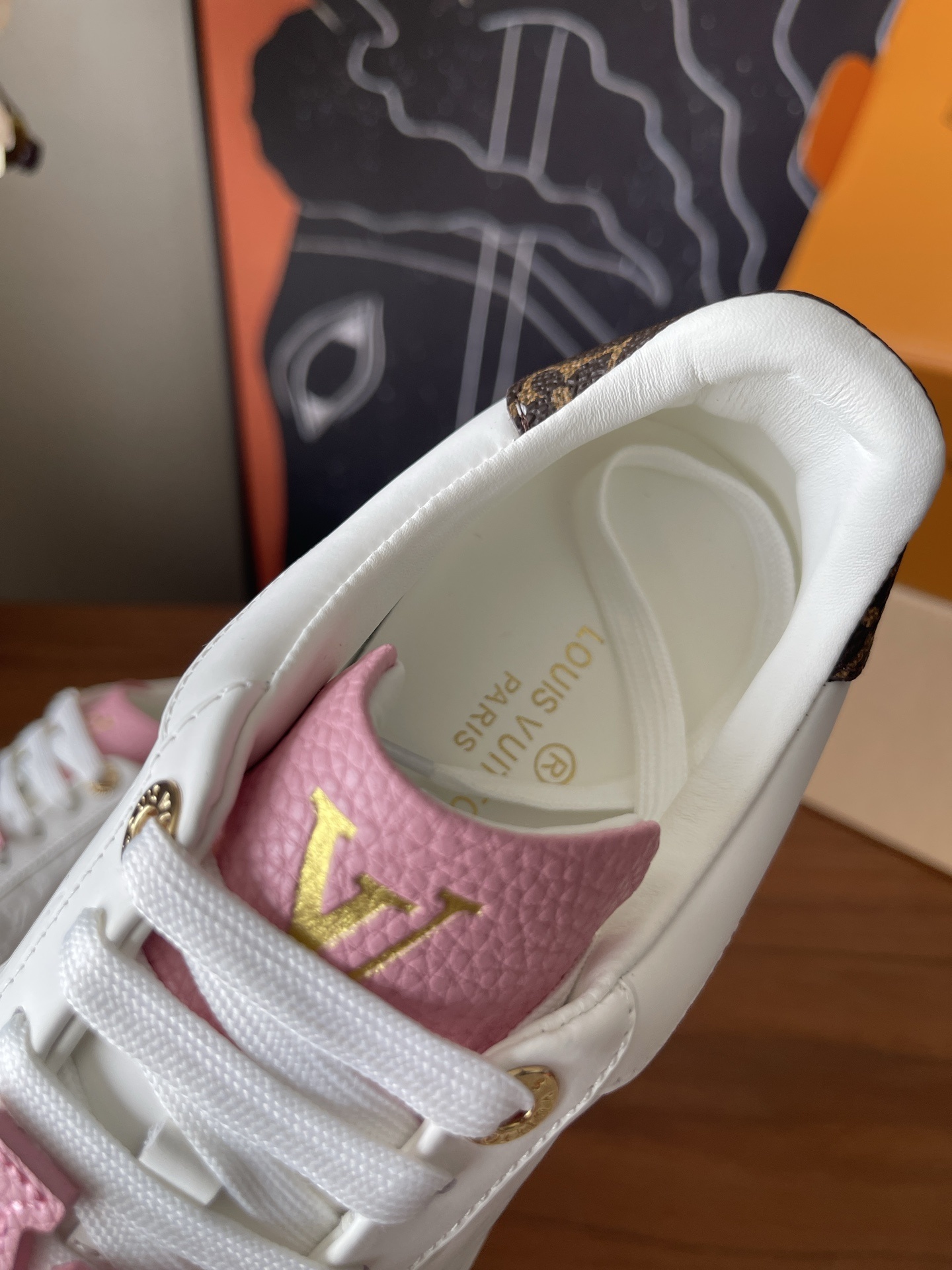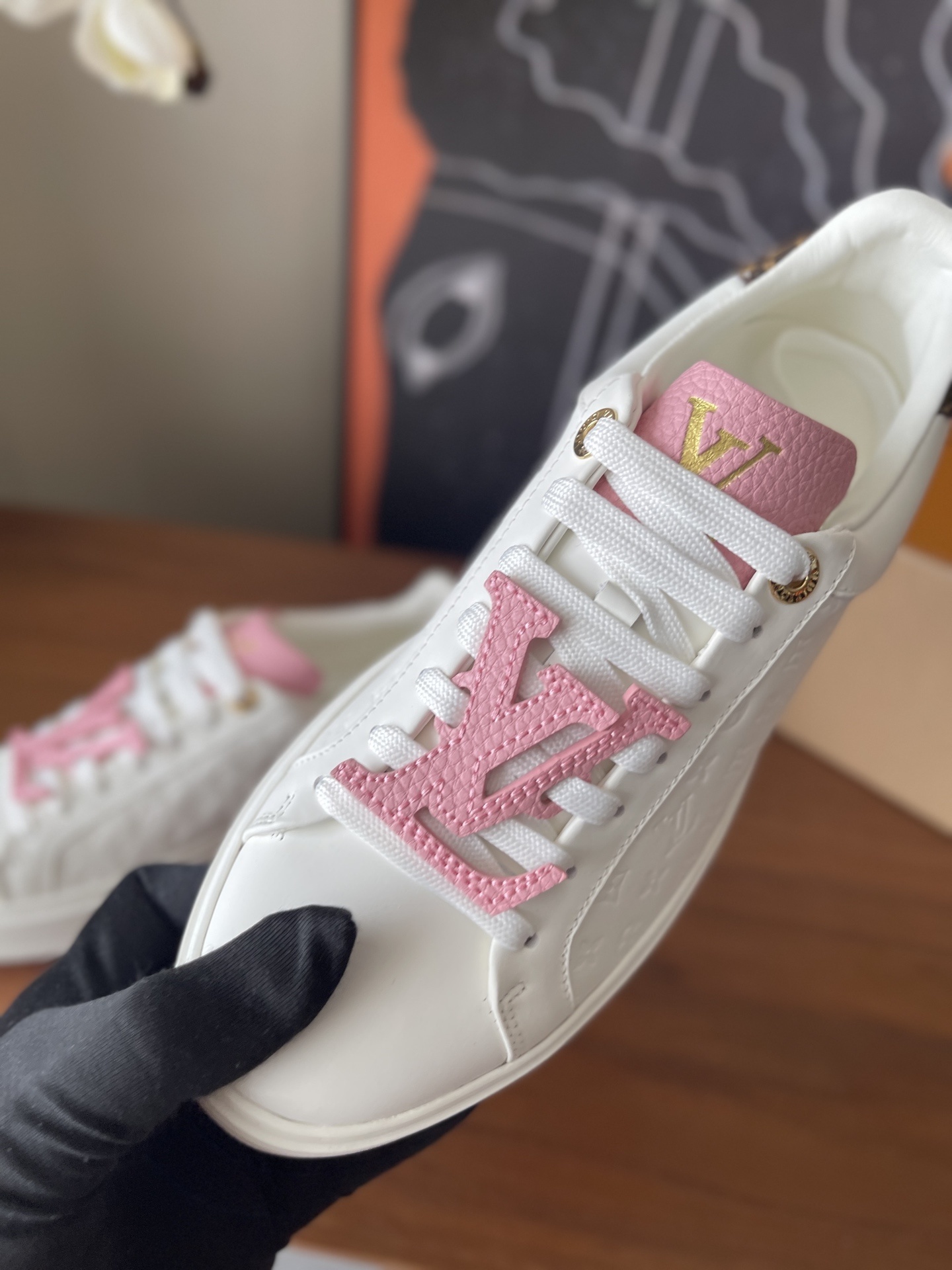 • Signature LV Charms: Bold pink LV logo charms adorn the laces for an unmistakable luxury look.
