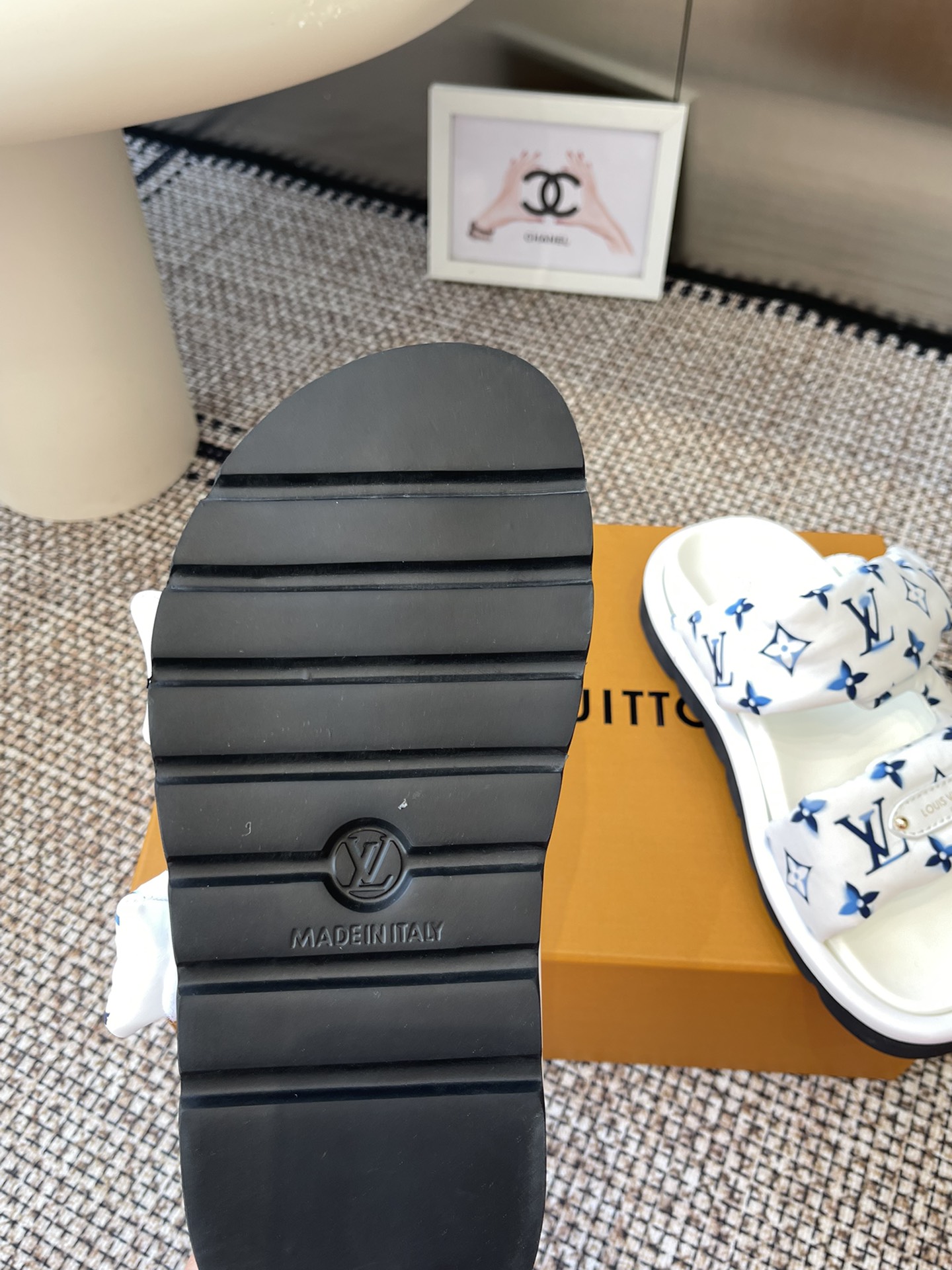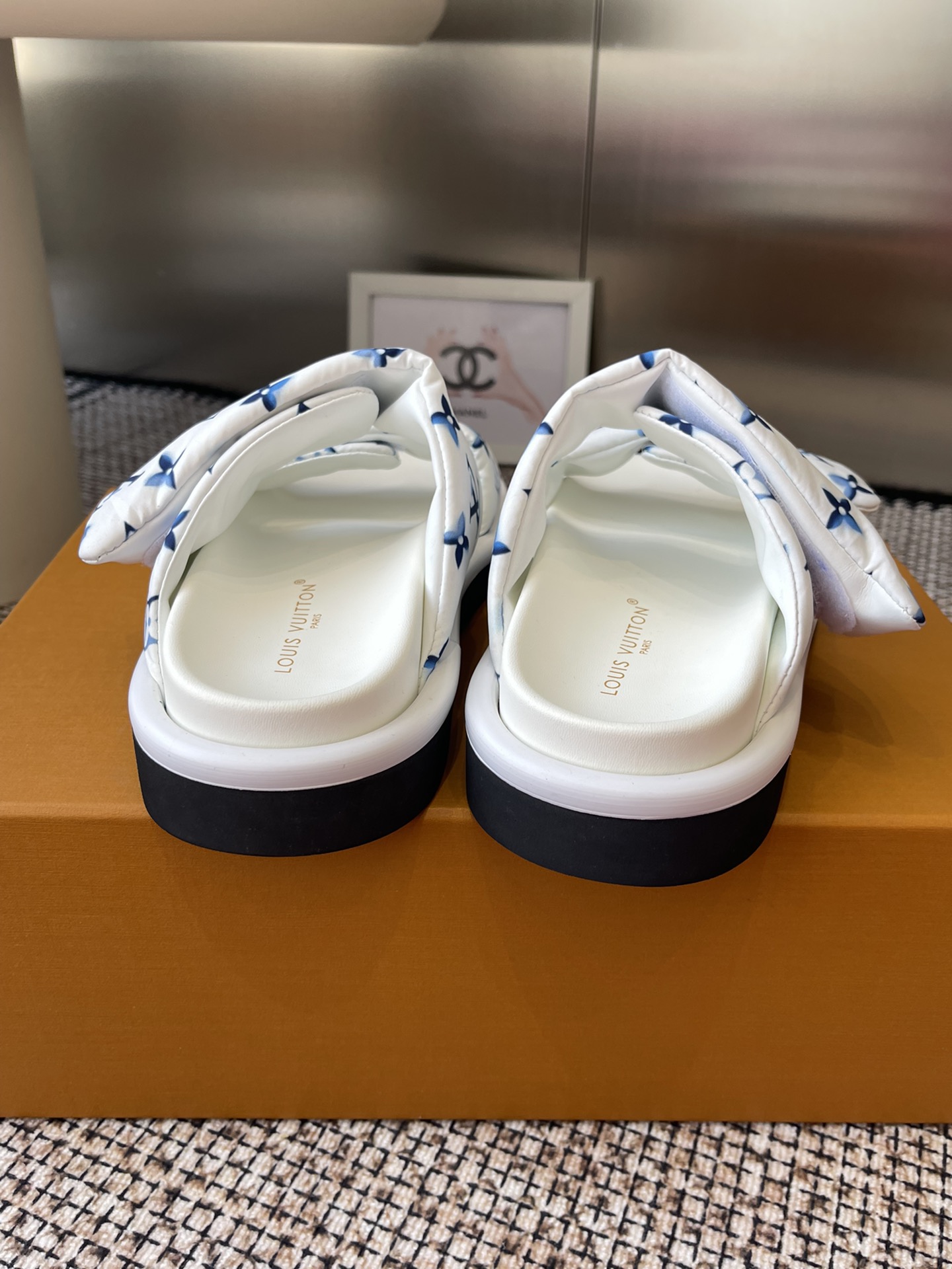 Louis Vuitton Men’s Navy Blue Embossed Monogram Slide Sandals