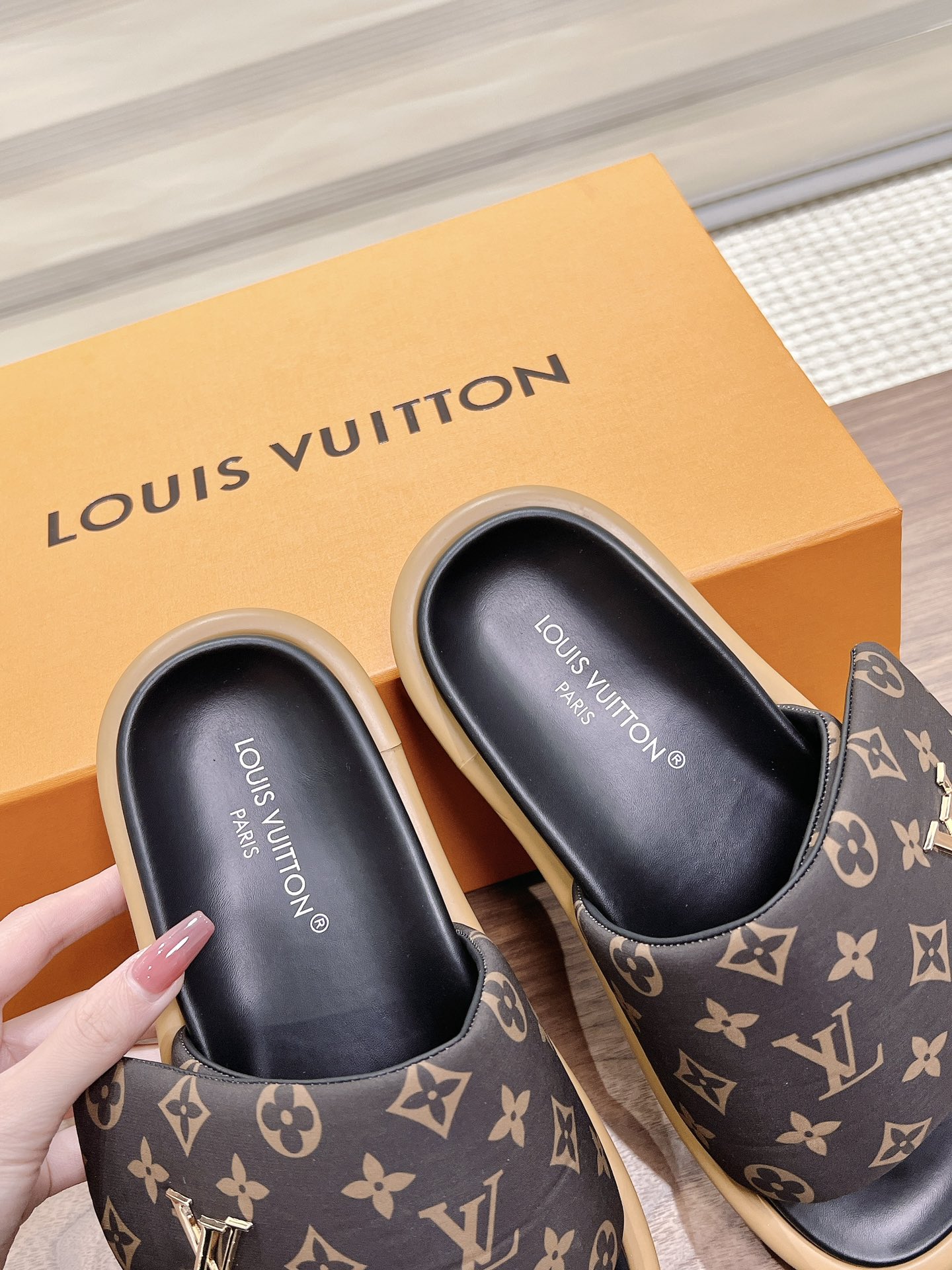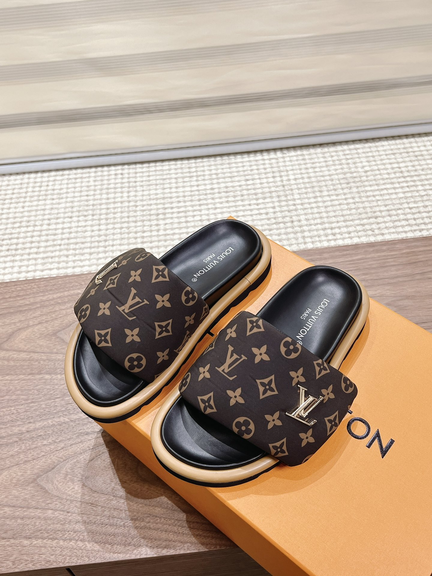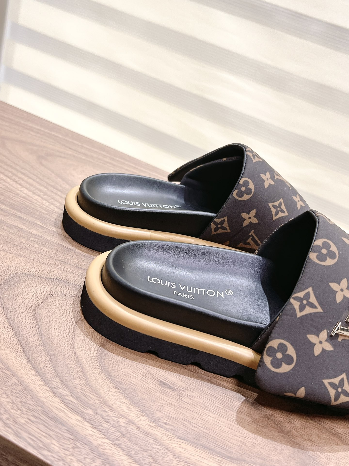 Louis Vuitton Black Monogram Canvas Slide Sandals – Comfortable Rubber Sole