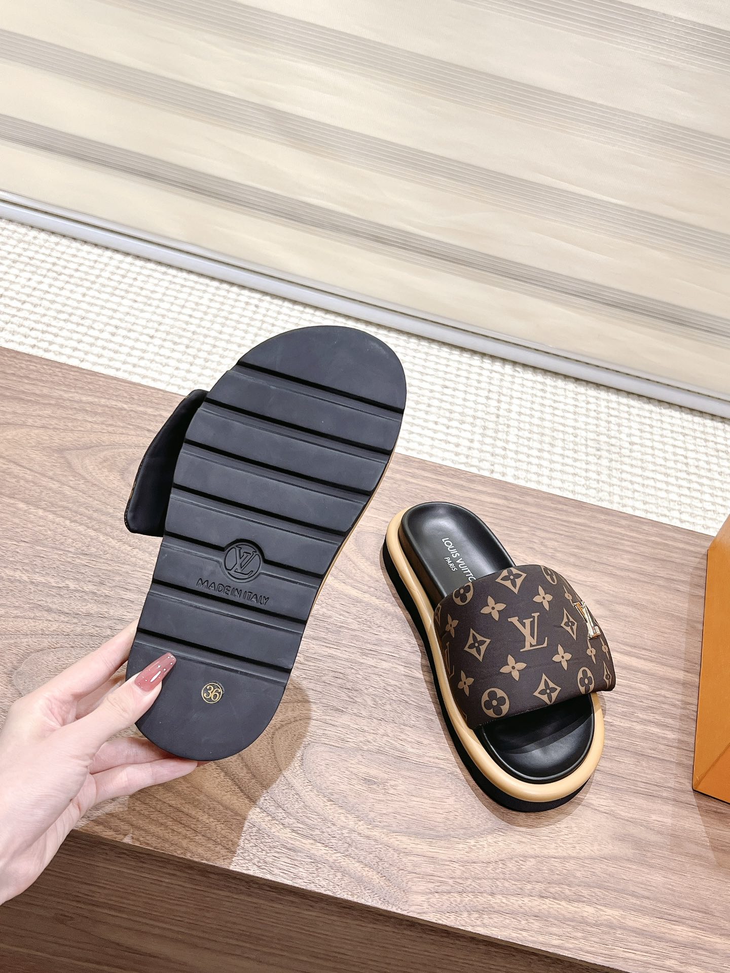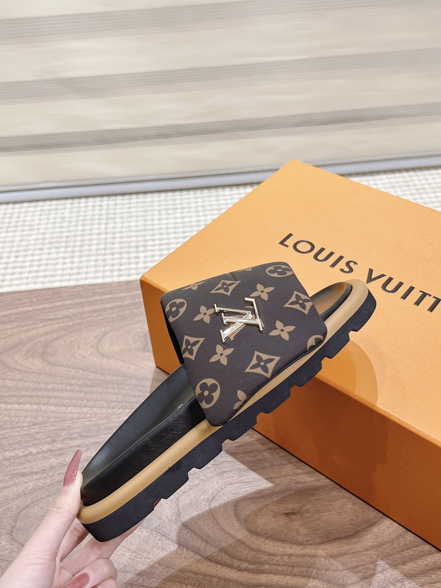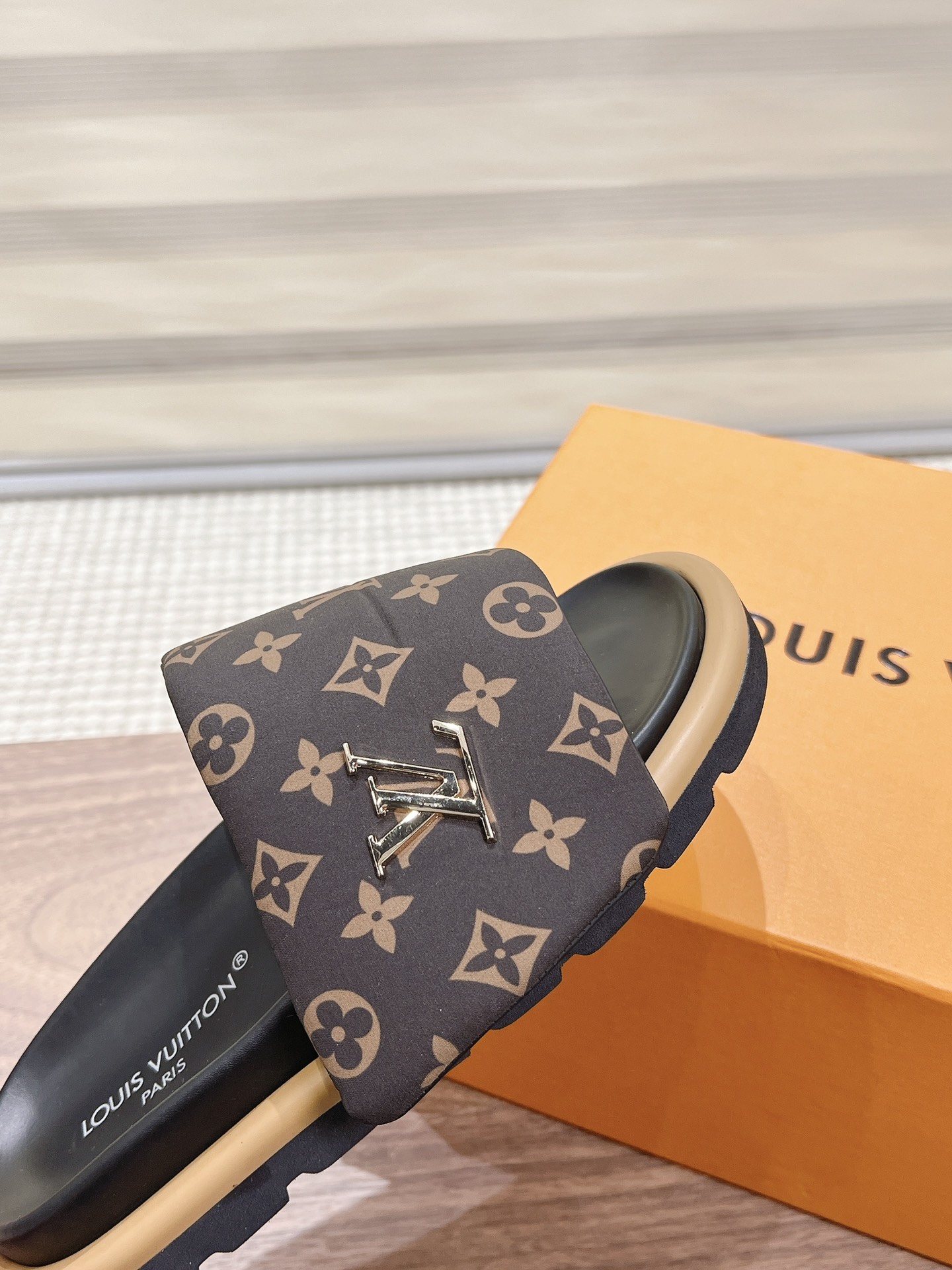 Louis Vuitton Black Monogram Canvas Slide Sandals – Comfortable Rubber Sole