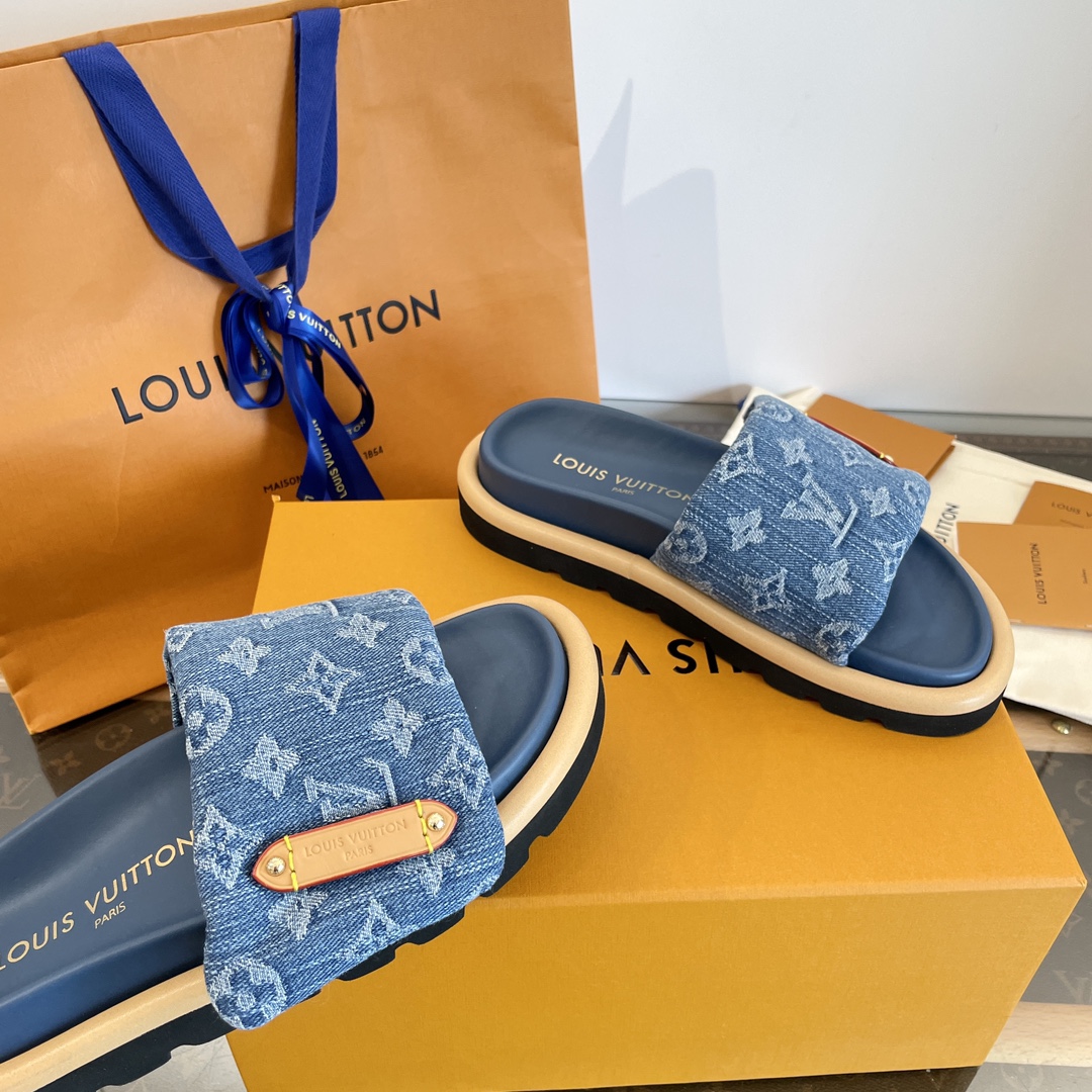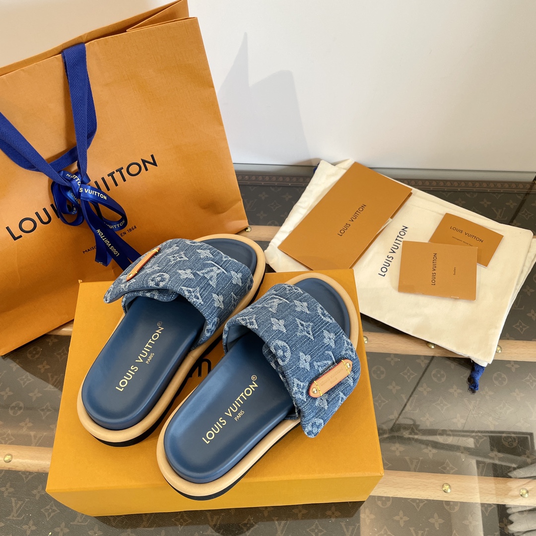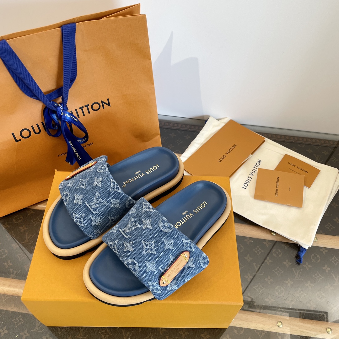 Louis Vuitton Men’s Navy Blue Embossed Monogram Slide Sandals