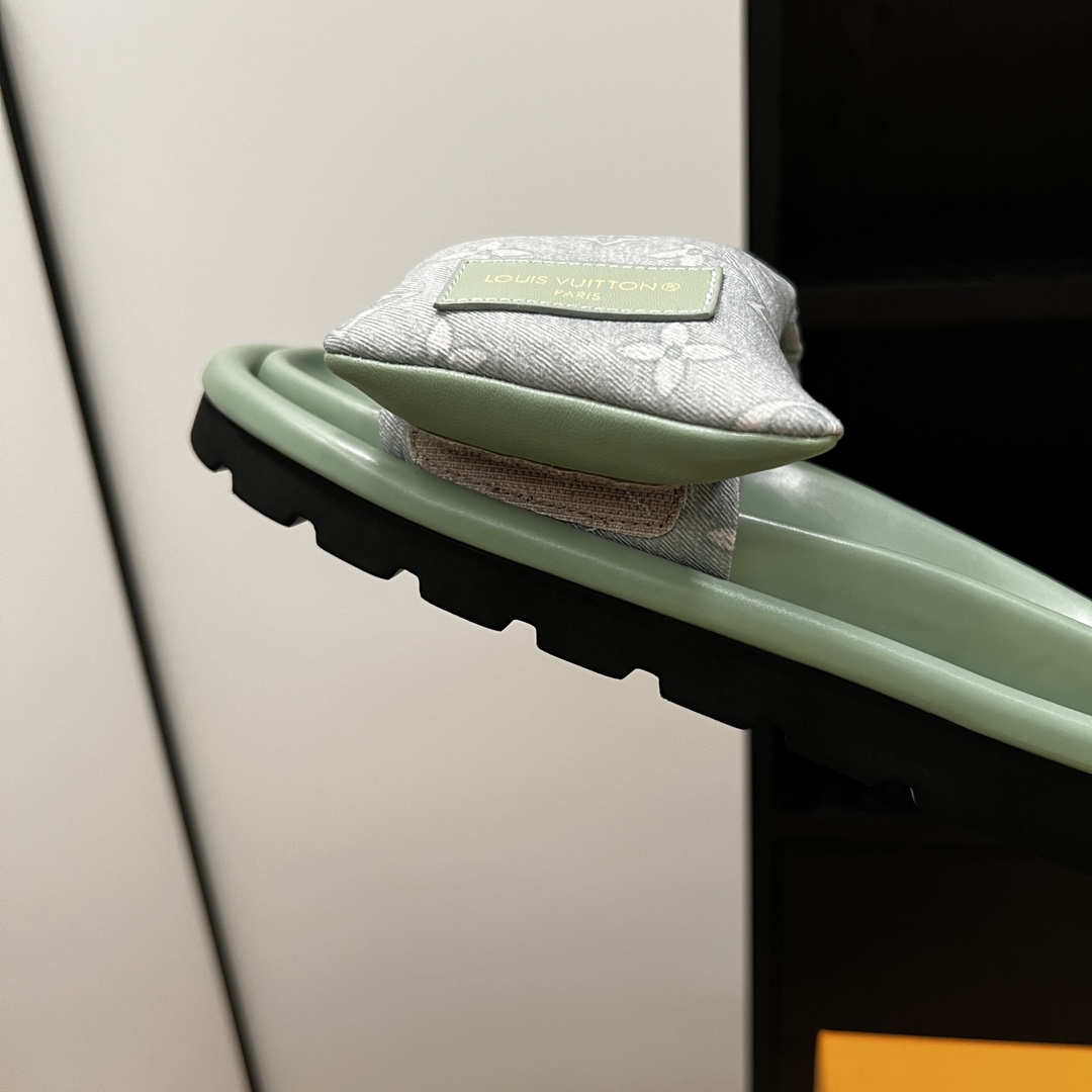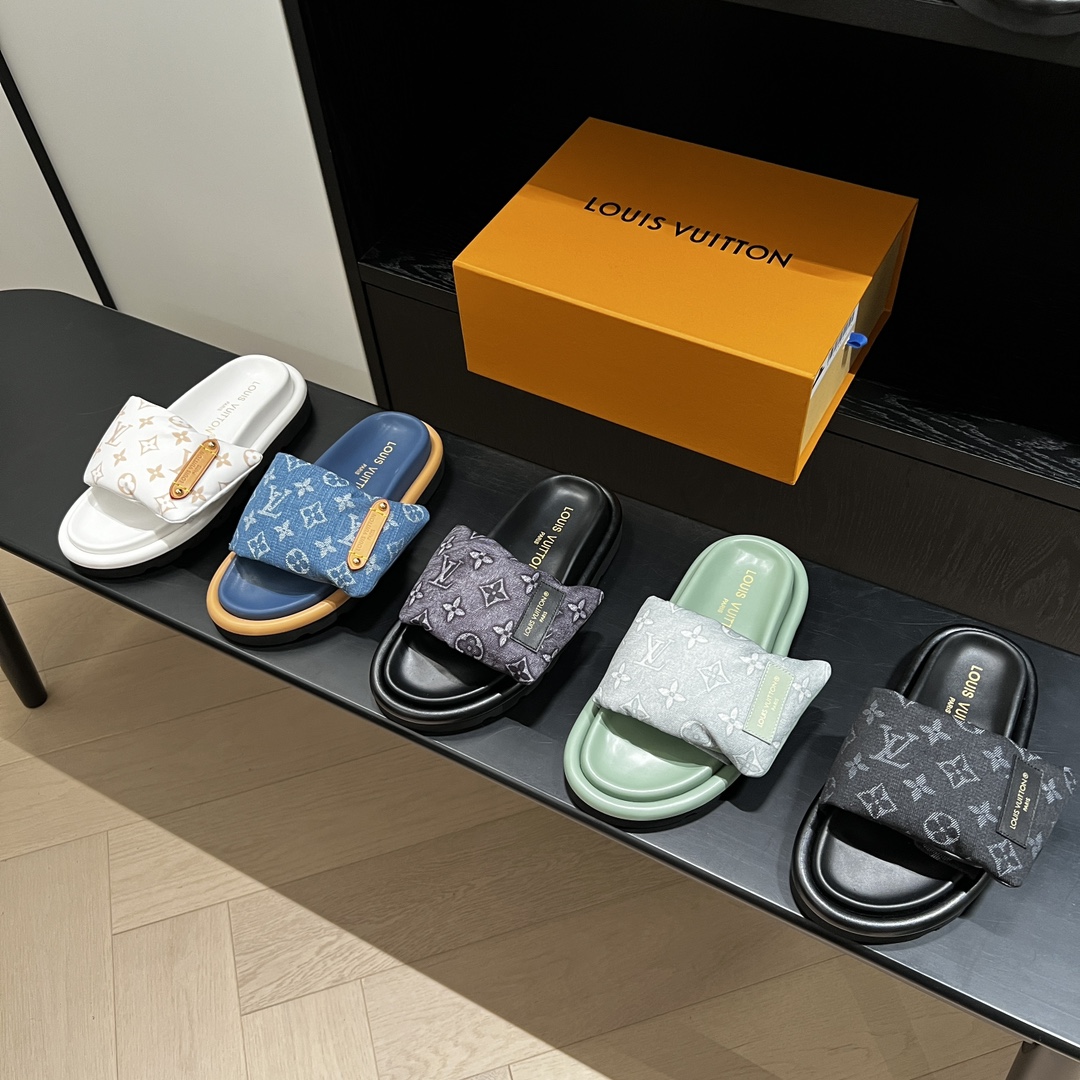 Louis Vuitton Men’s Navy Blue Embossed Monogram Slide Sandals