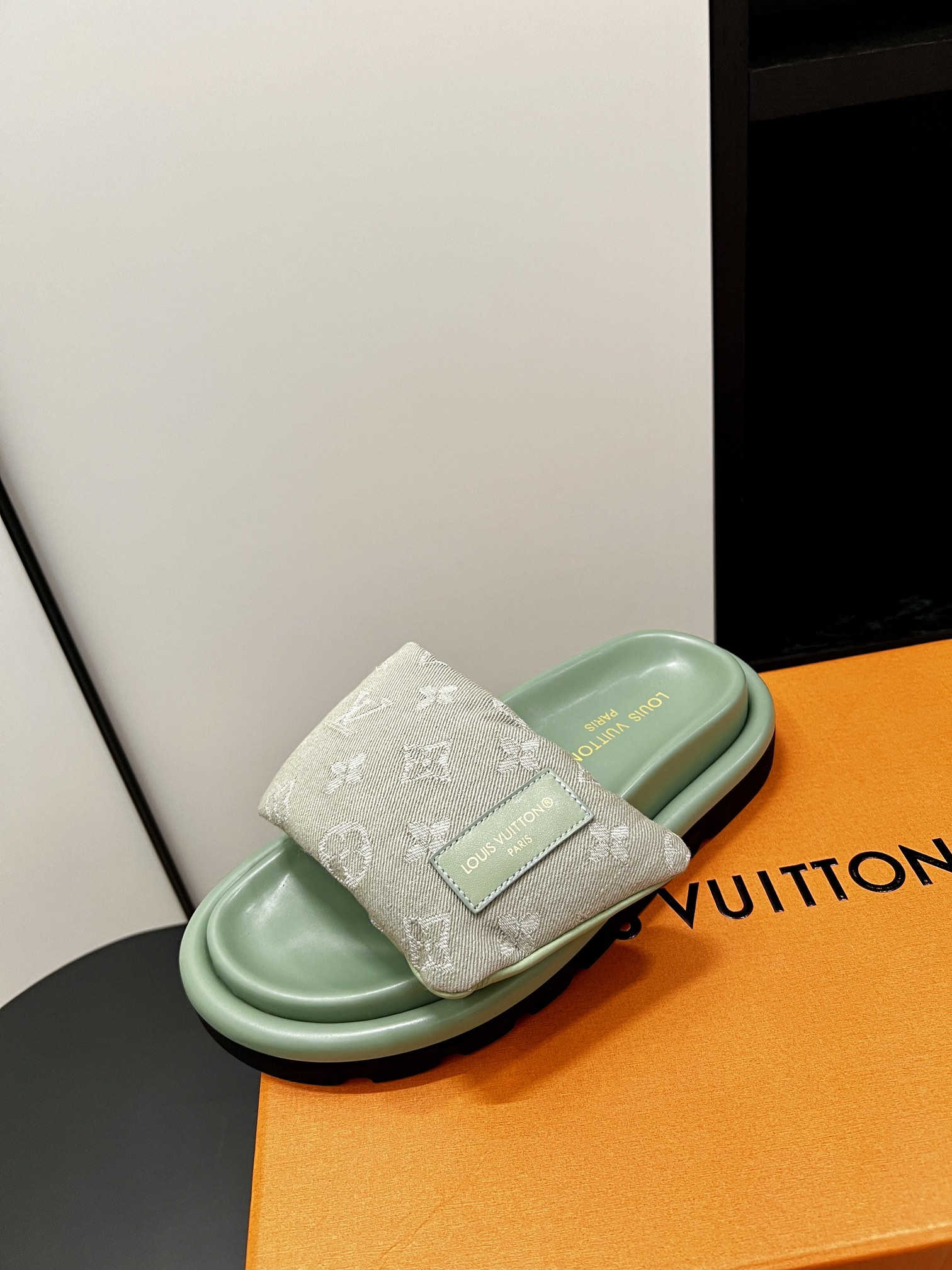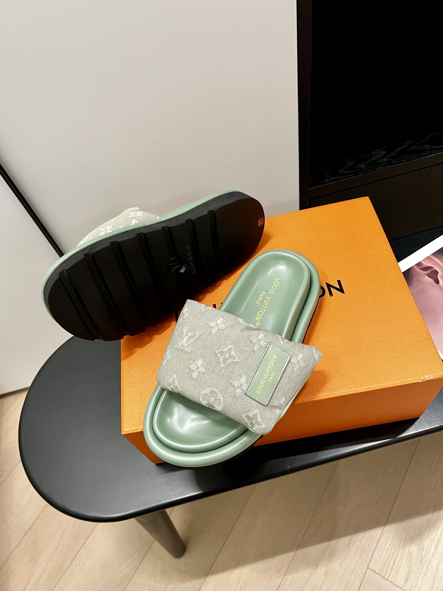 Louis Vuitton Monogram Black Canvas Slide Sandals