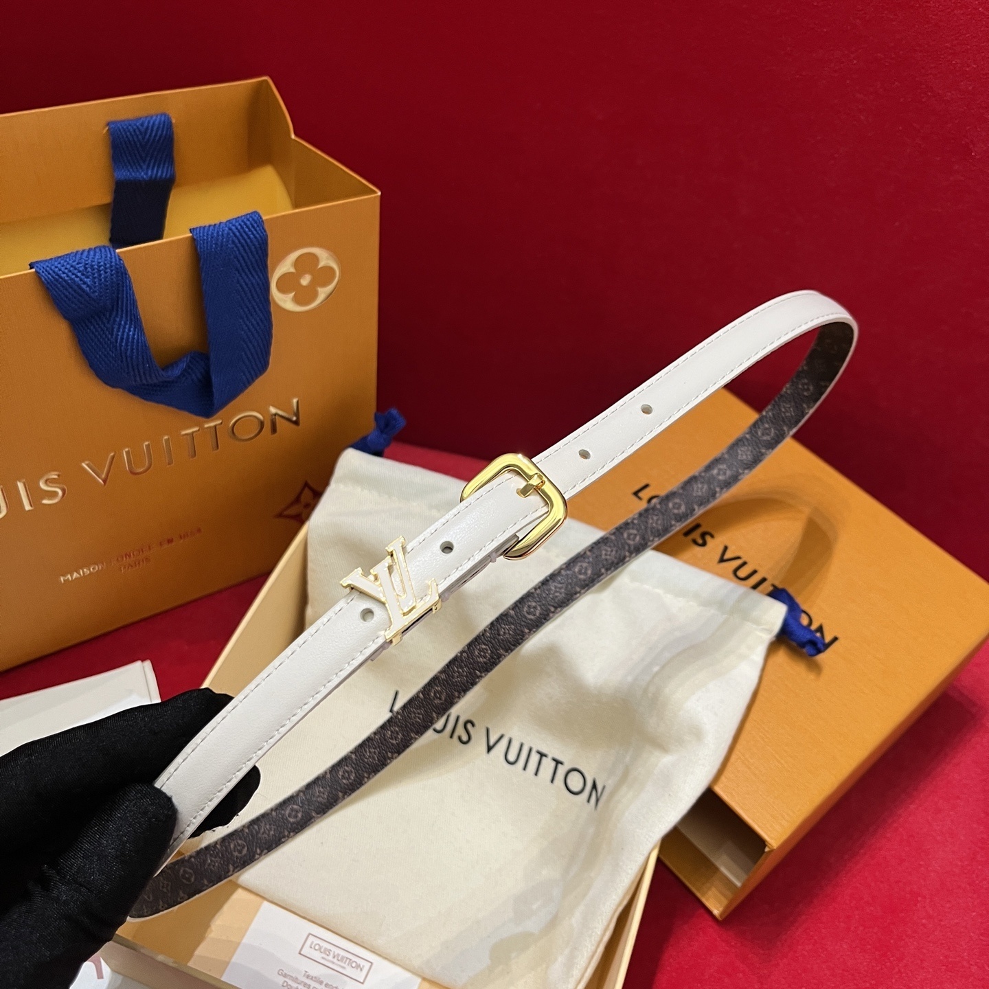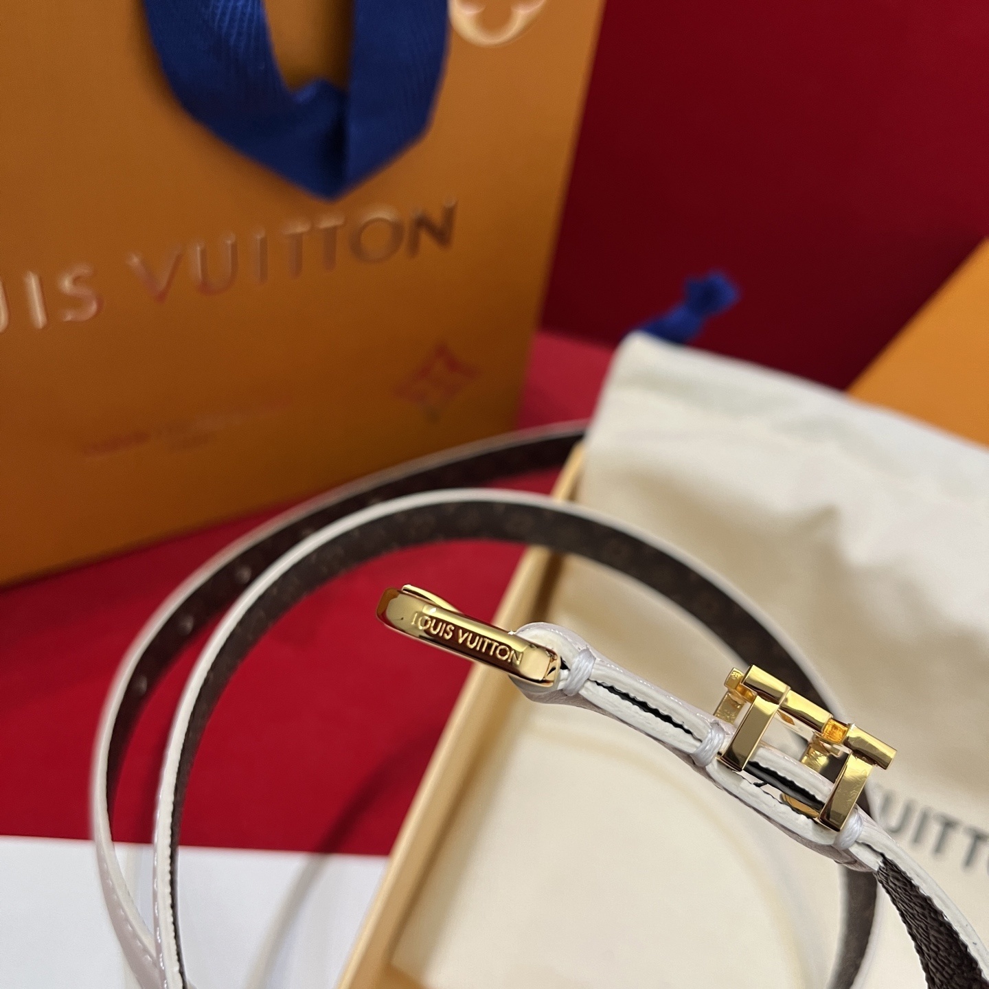 Brown leather belt with gold metal buckle engraved with Miu Miu