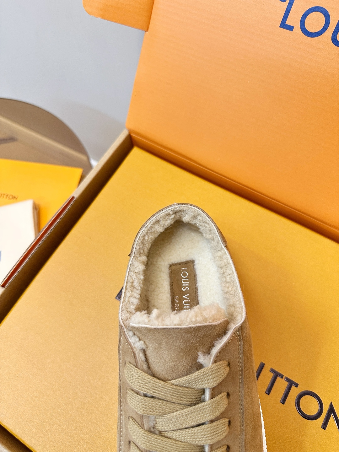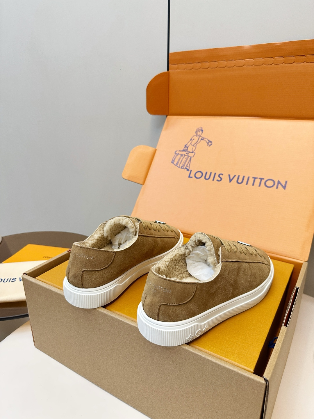 Louis Vuitton Men’s White and Brown Leather Sneakers Monogram Pattern Lace Up Rubber Sole