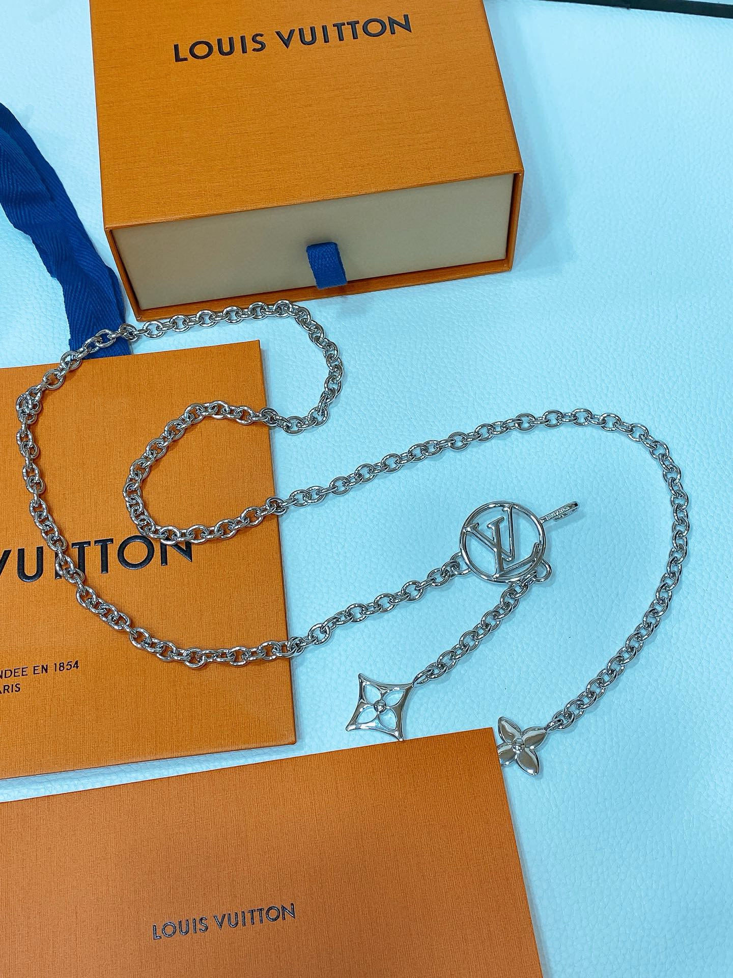 • Delicate Charms: Two dangling chains are adorned with beautifully detailed Monogram flower motifs, creating a graceful movement as you walk.