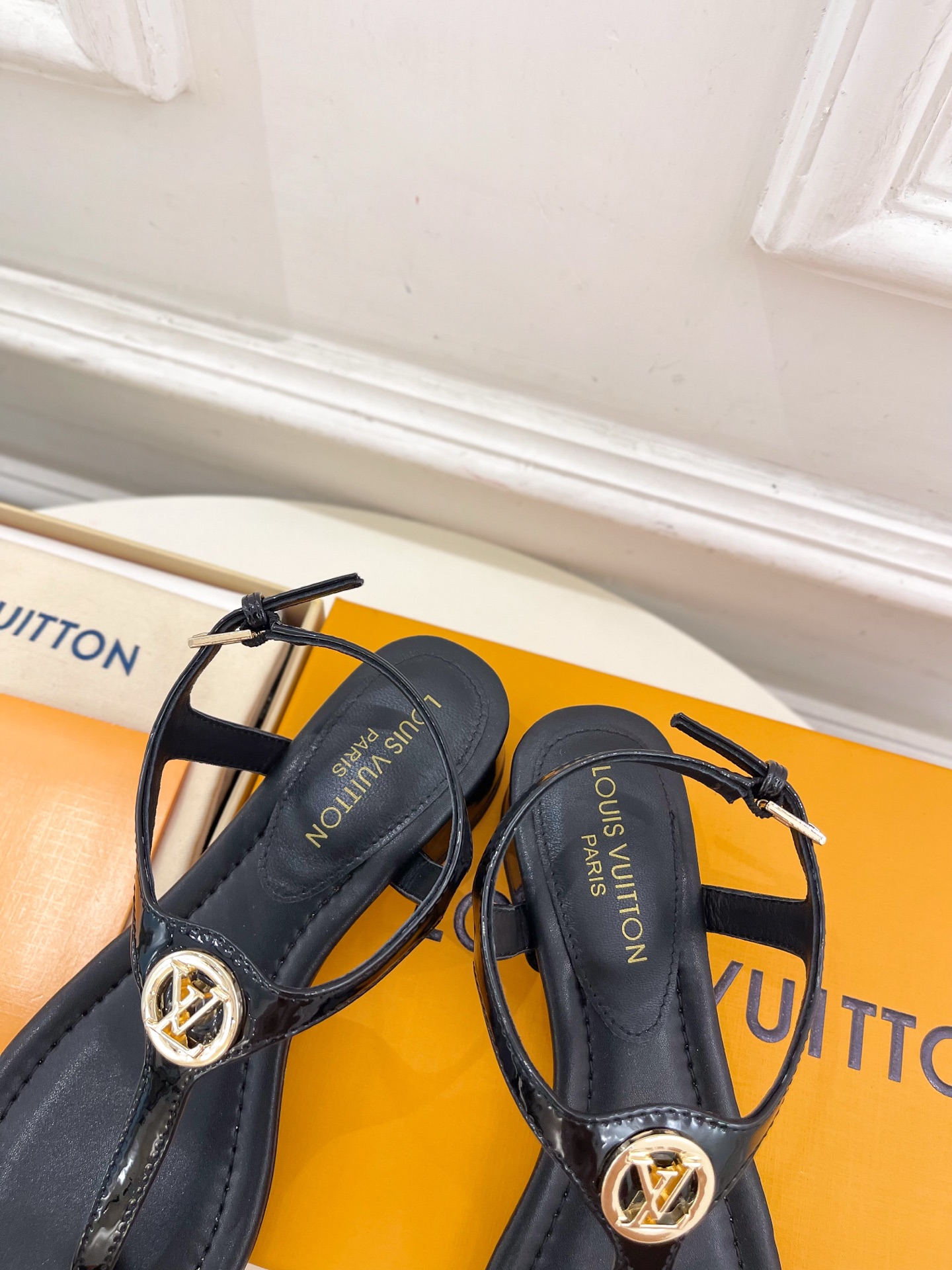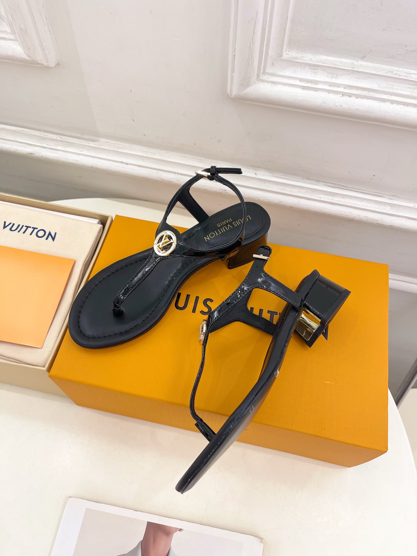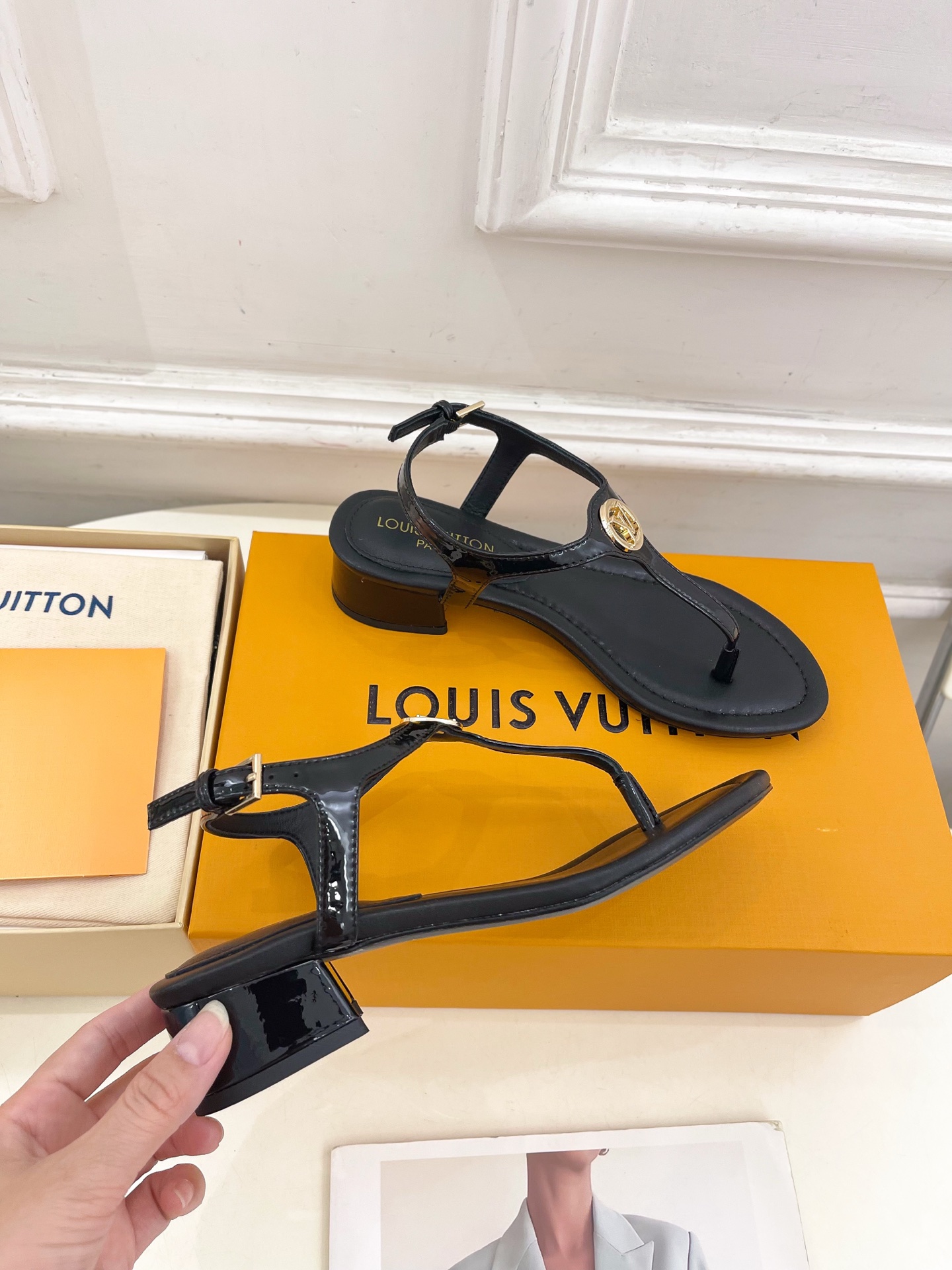 Louis Vuitton Black Leather LV Buckle Sandals